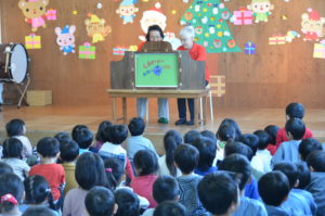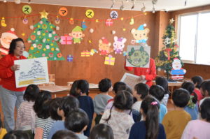みんなで事前に練習した「みんなのちから(税)」という歌やクリスマス音楽会にむけて練習している歌を聞いていただきました。