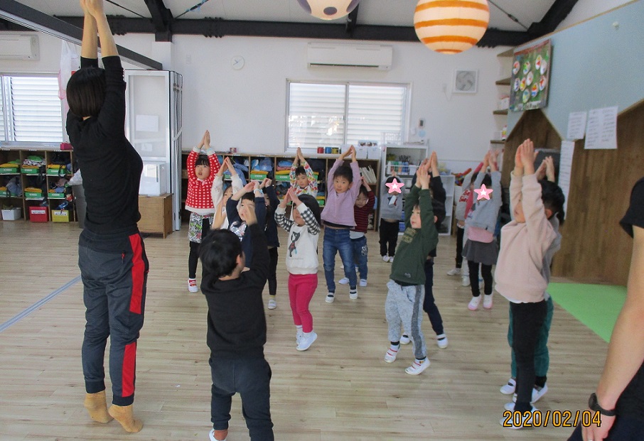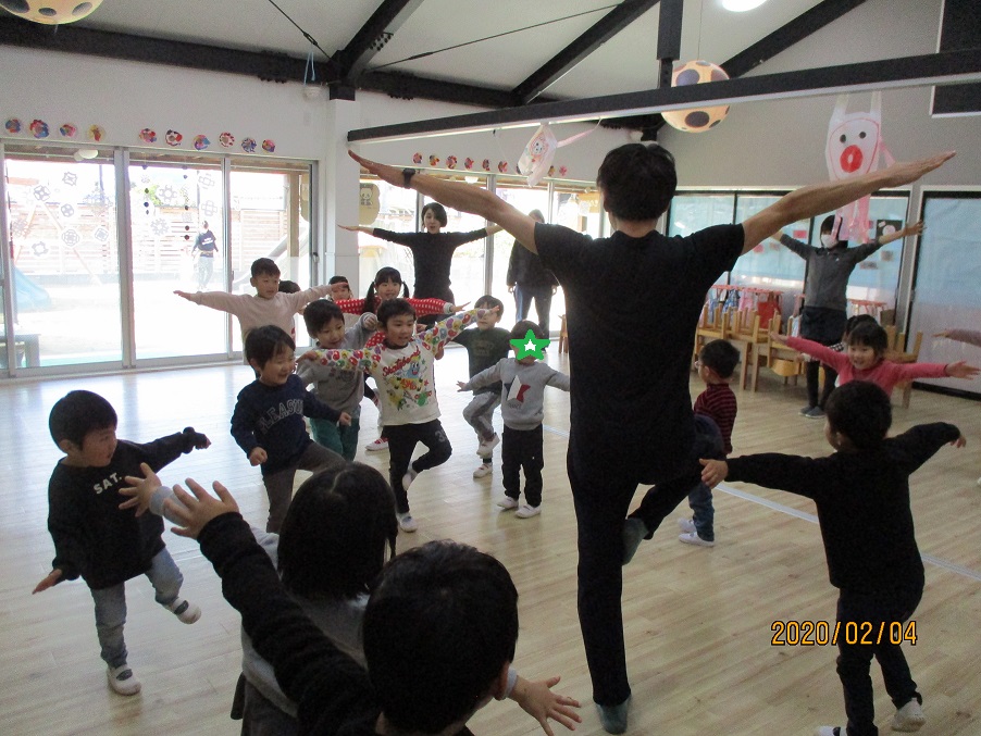 *今日はダンスの先生が来られ、みんなで楽しくいっぱい体を動かしました。