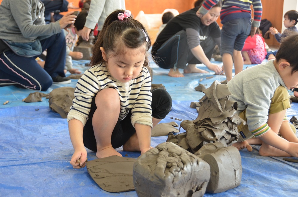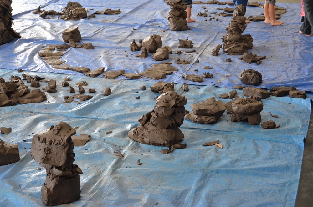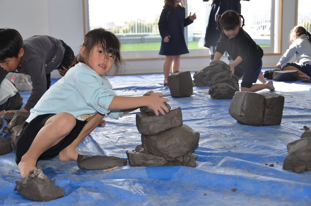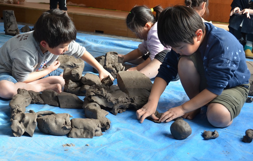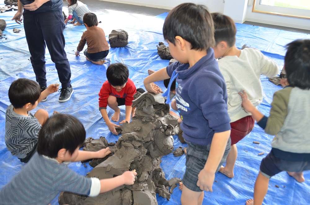 1人20kgの粘土を使って自由に制作をしました。