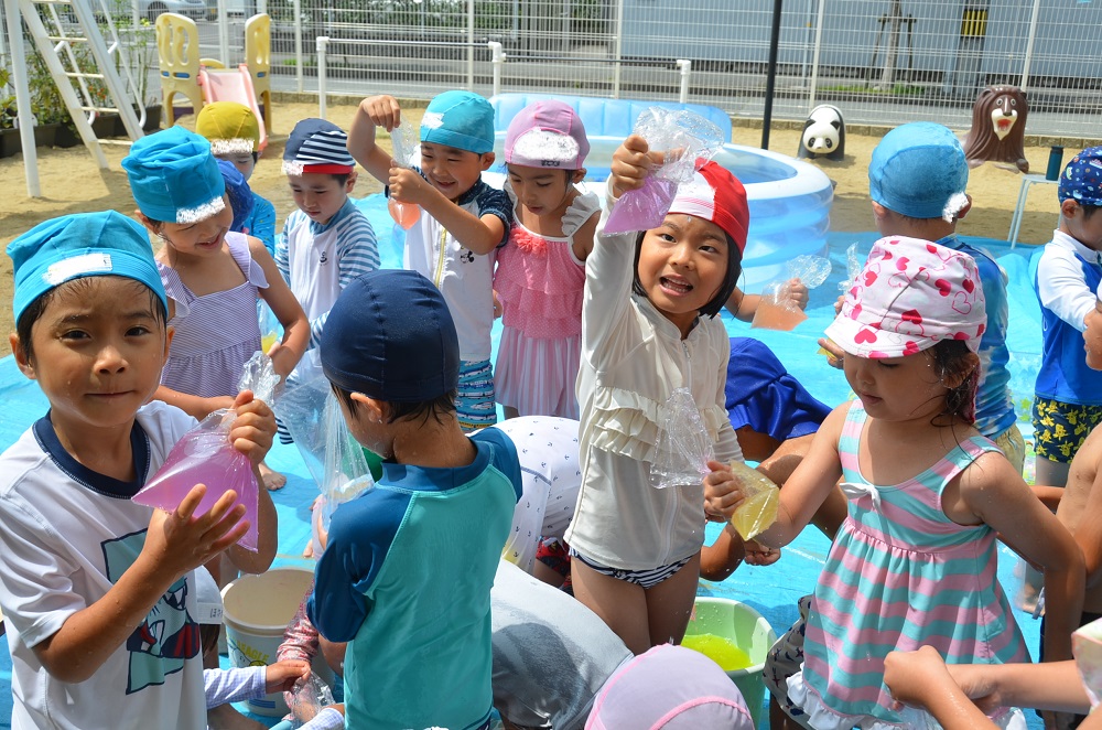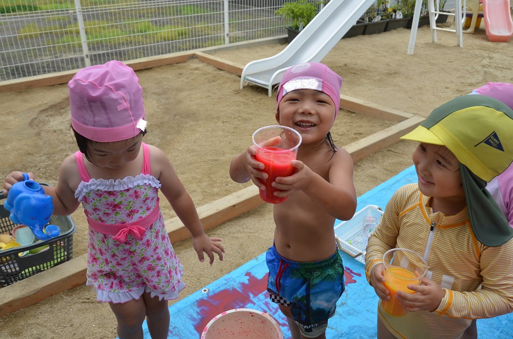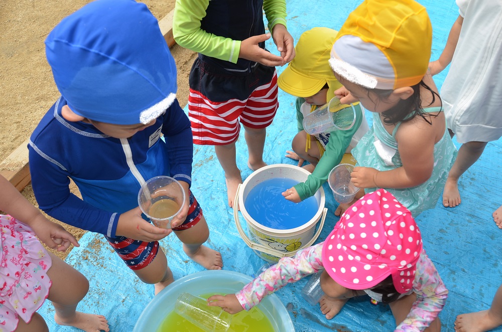 たいようぐみは牛乳パックで船を作って色水を乗せて遊びました。