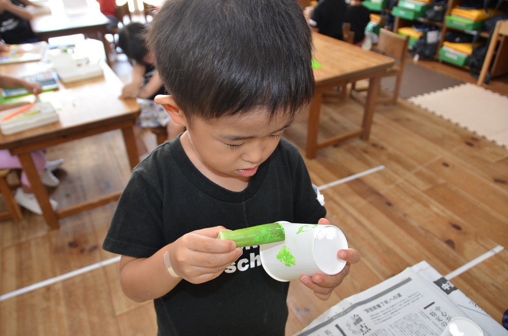 できあがった風鈴を園庭に飾ると風になびいて鈴のいい音が聞こえてました♬