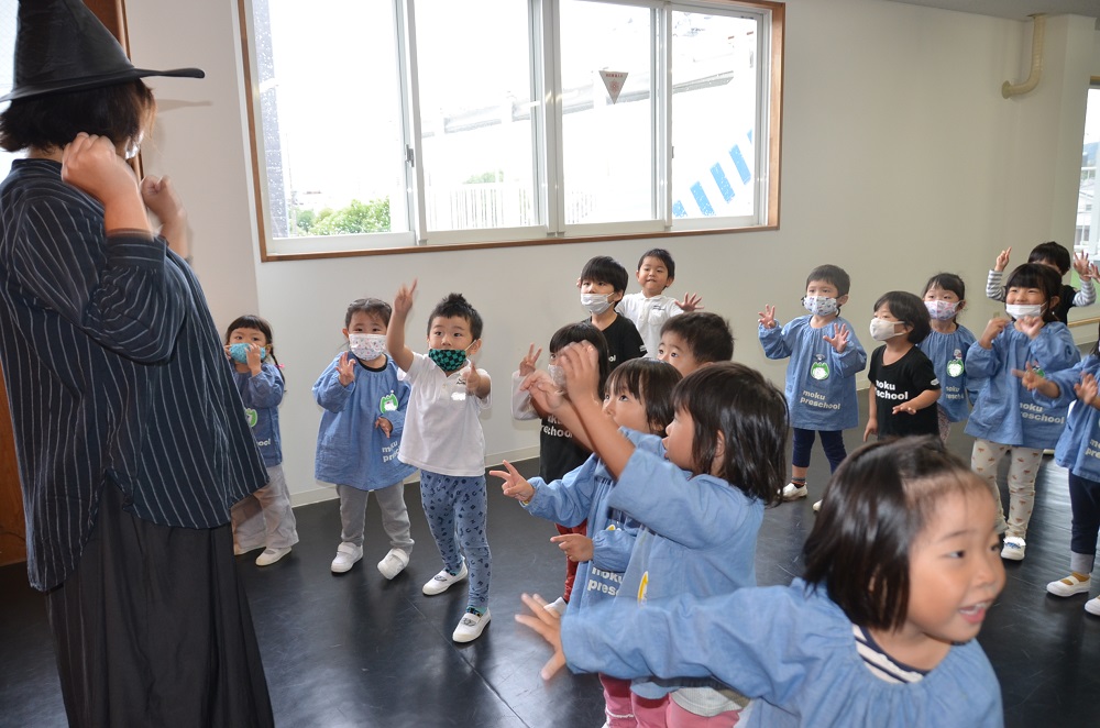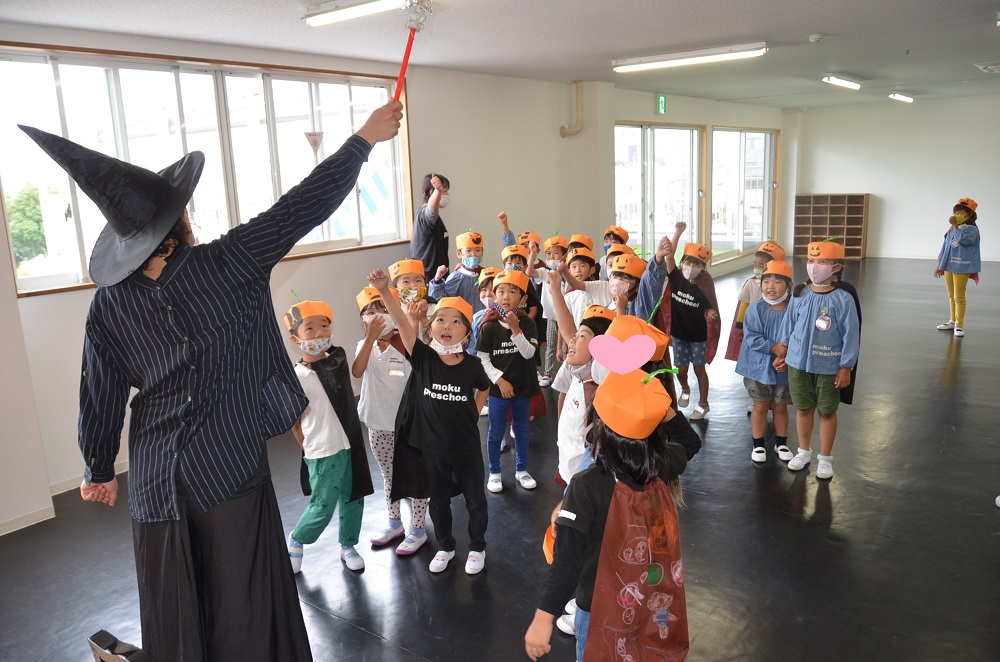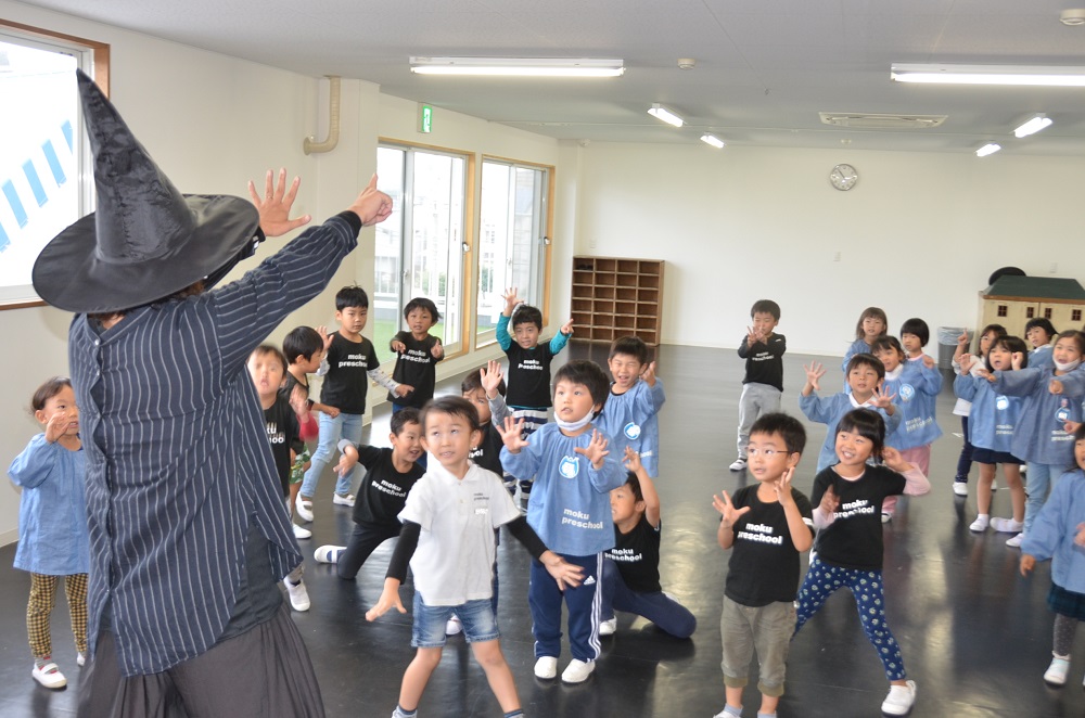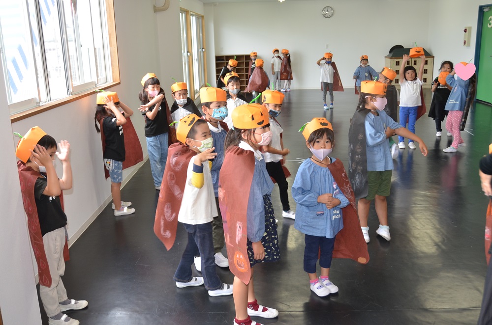 たいようぐみのお友だちは手作りの帽子🎩とマント👻を付けて英語教室を楽しみました🥰
