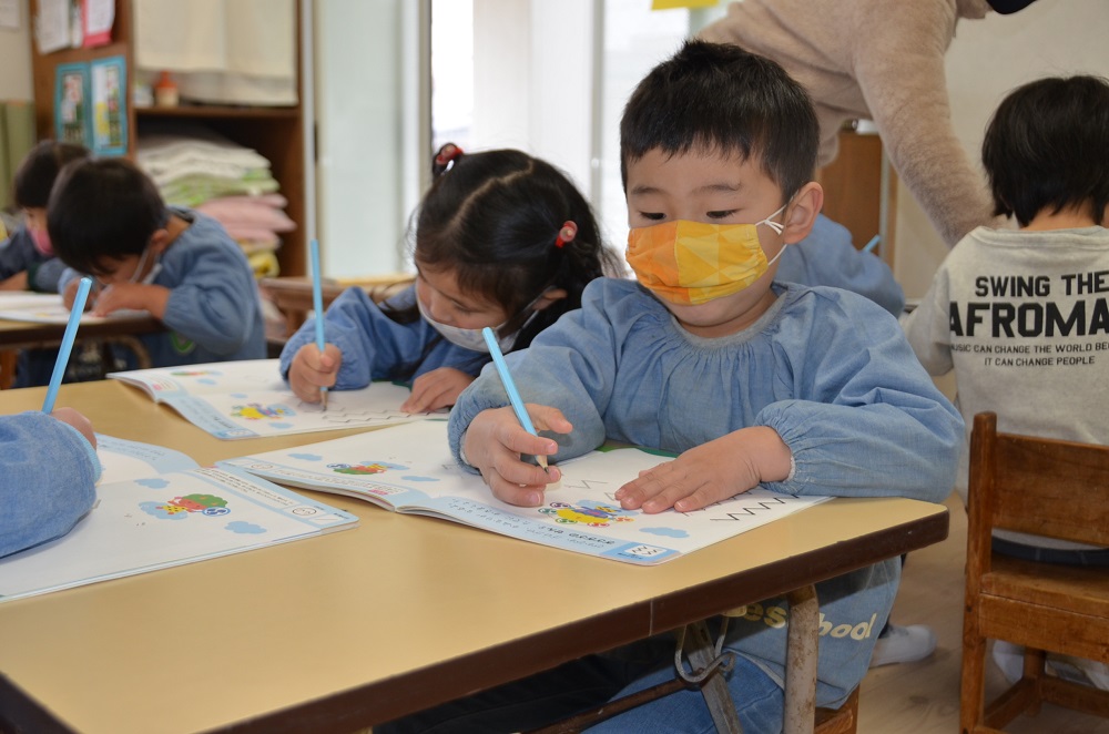 3歳児から少しずつ取り組むことによって集中して物事に取り組めるようになりますよ(^▽^)/