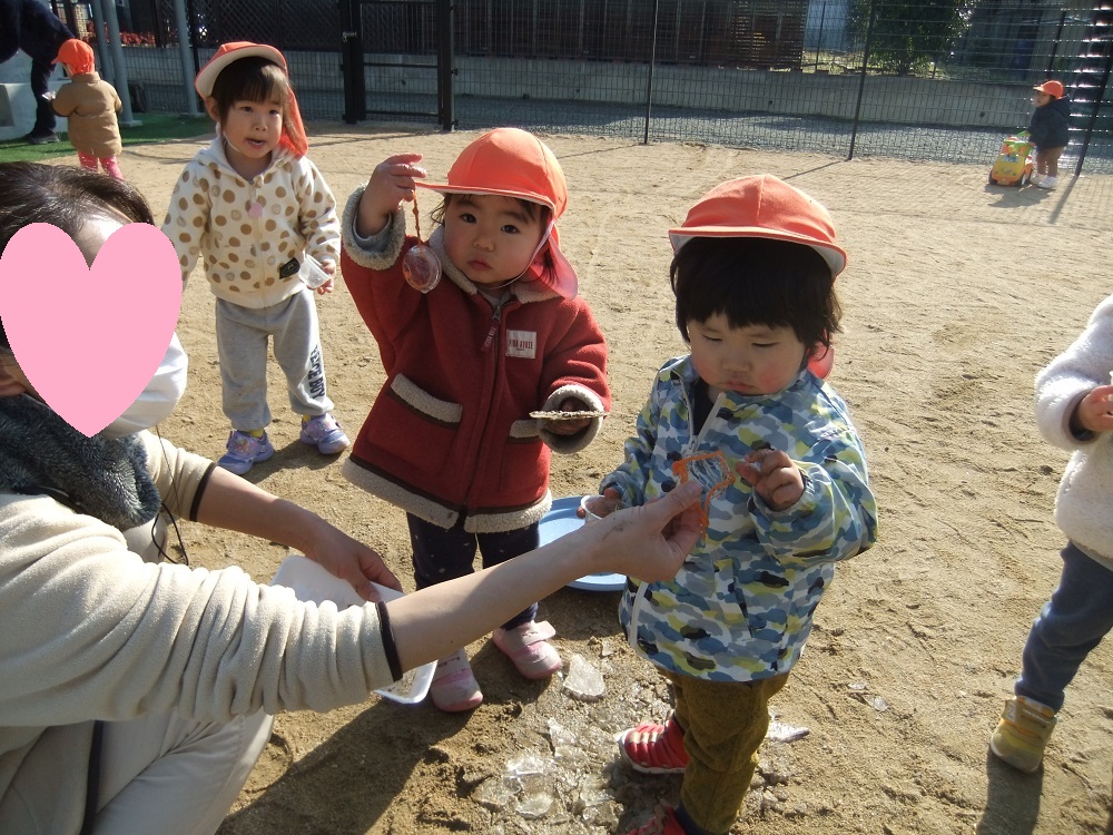 寒い日には氷が張っていて、みんなで✨氷遊び✨をしました😍