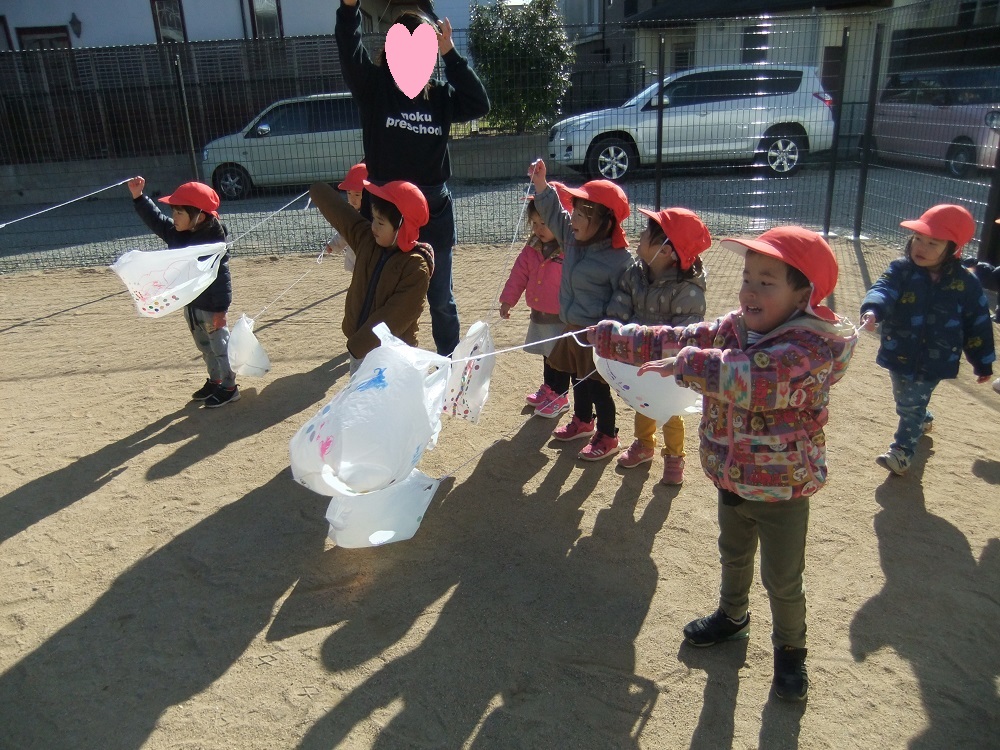 凧あげではみんなで追いかけっこをしたり、飛ばしていましたよ😁