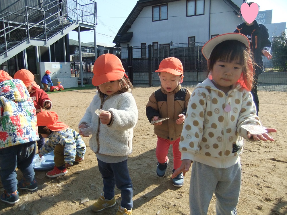 寒い日には氷が張っていて、みんなで✨氷遊び✨をしました😍