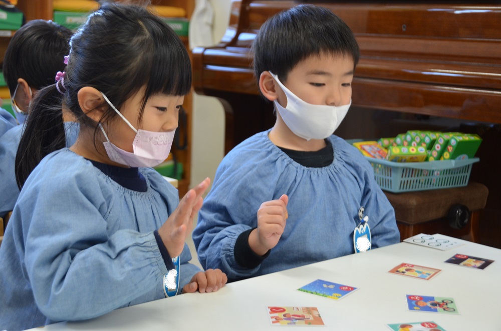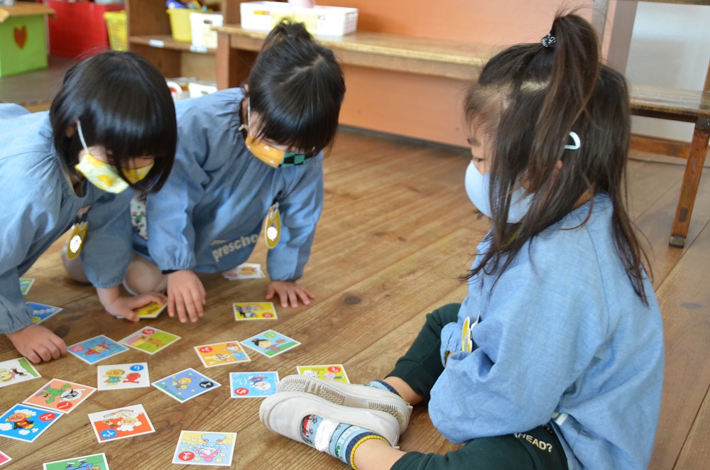 分園のお友だちは果物🍎や乗り物🚗などのカード遊びをしましたよ😃