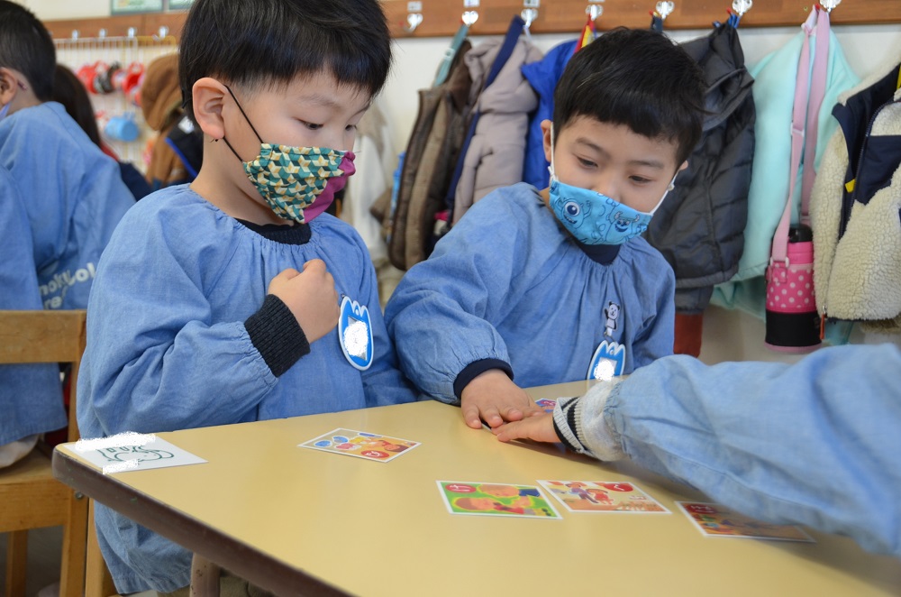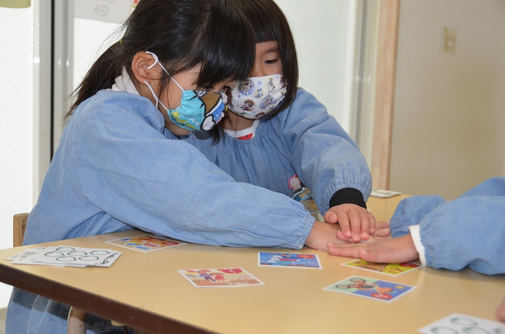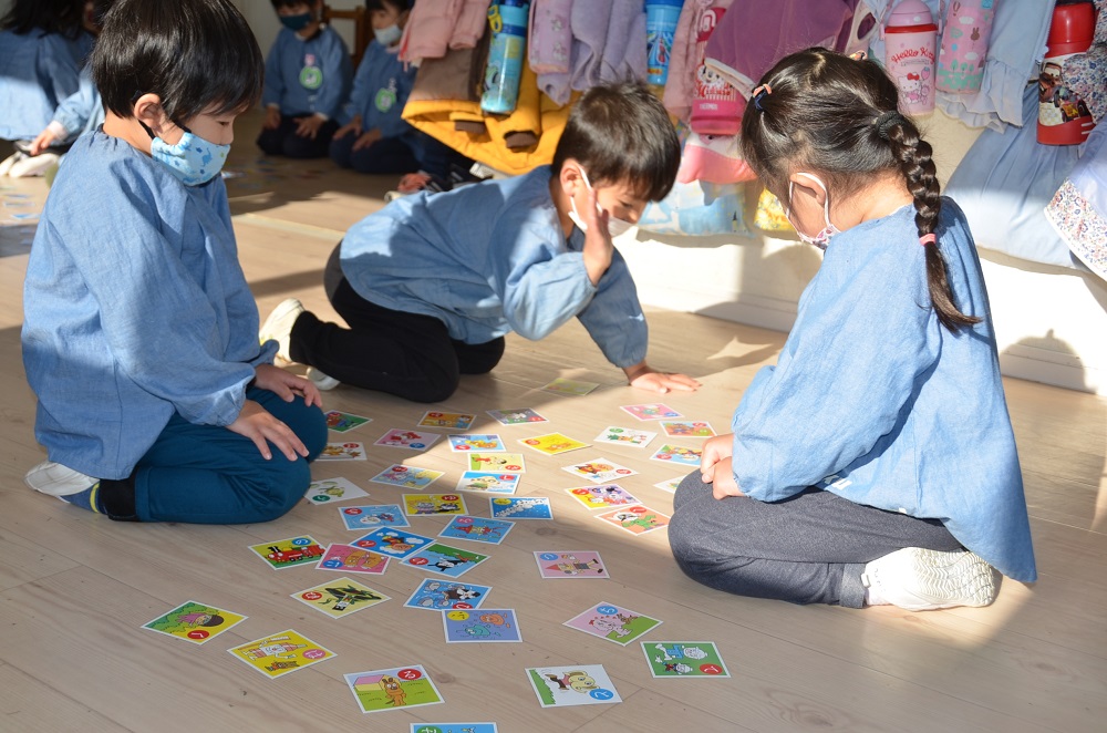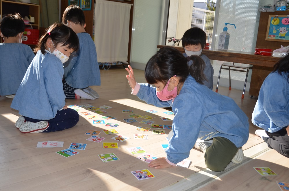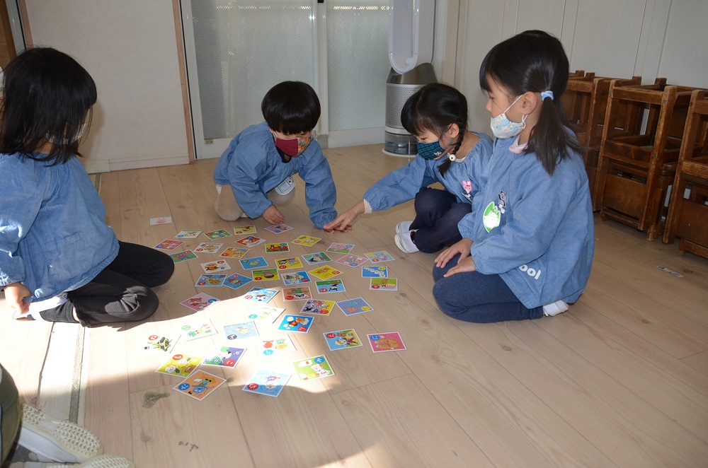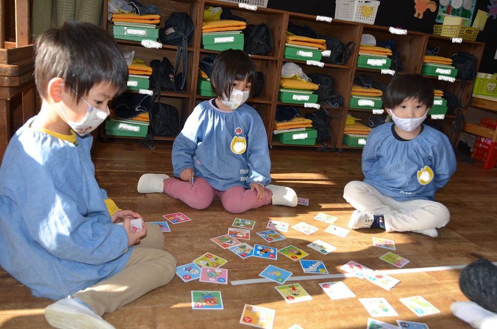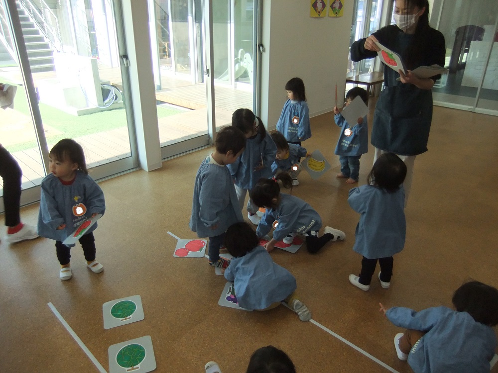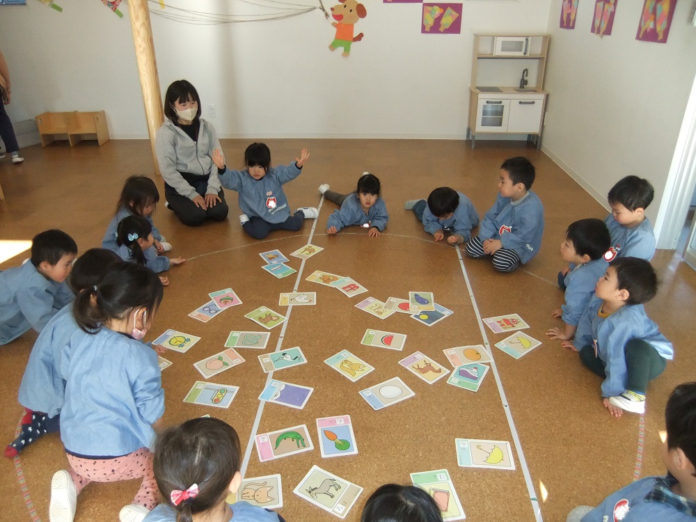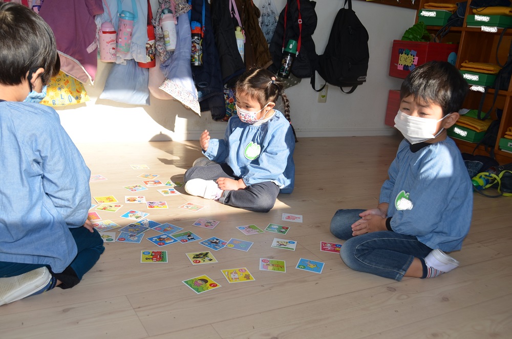 分園のお友だちは果物🍎や乗り物🚗などのカード遊びをしましたよ😃