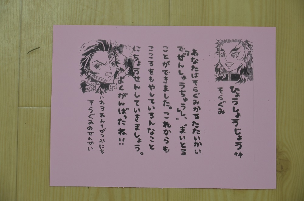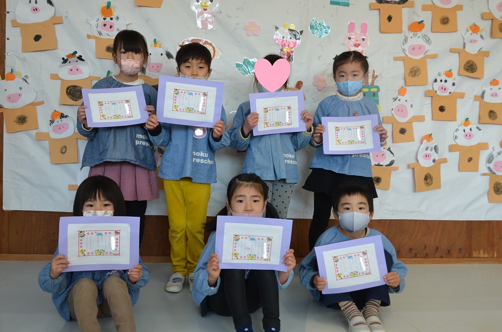 各クラスの先生が✨表彰状を準備してくれましたよ(o^―^o)ニコ