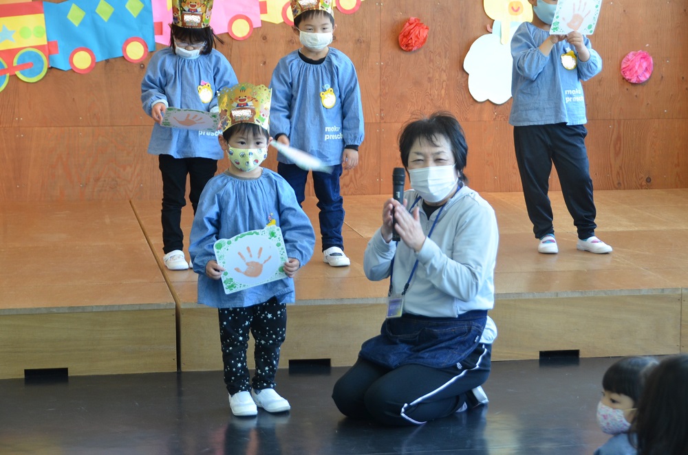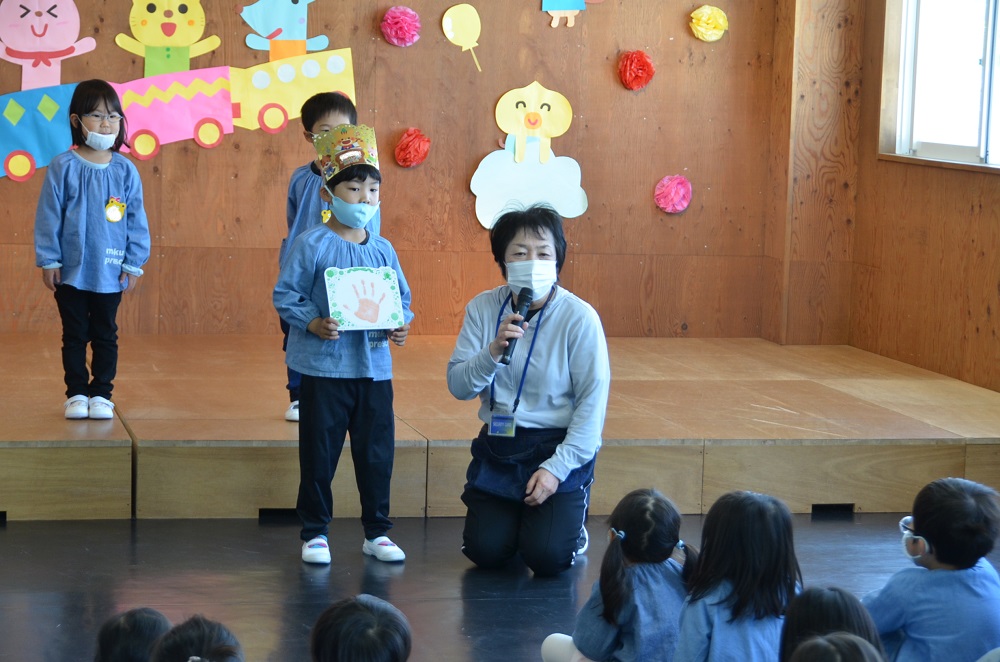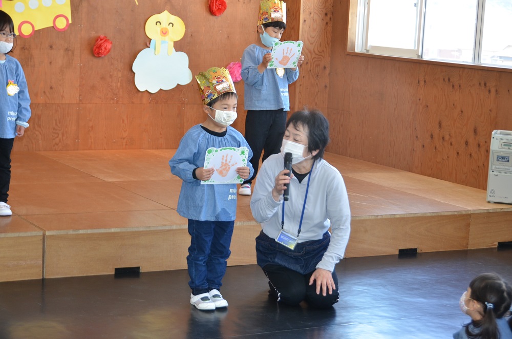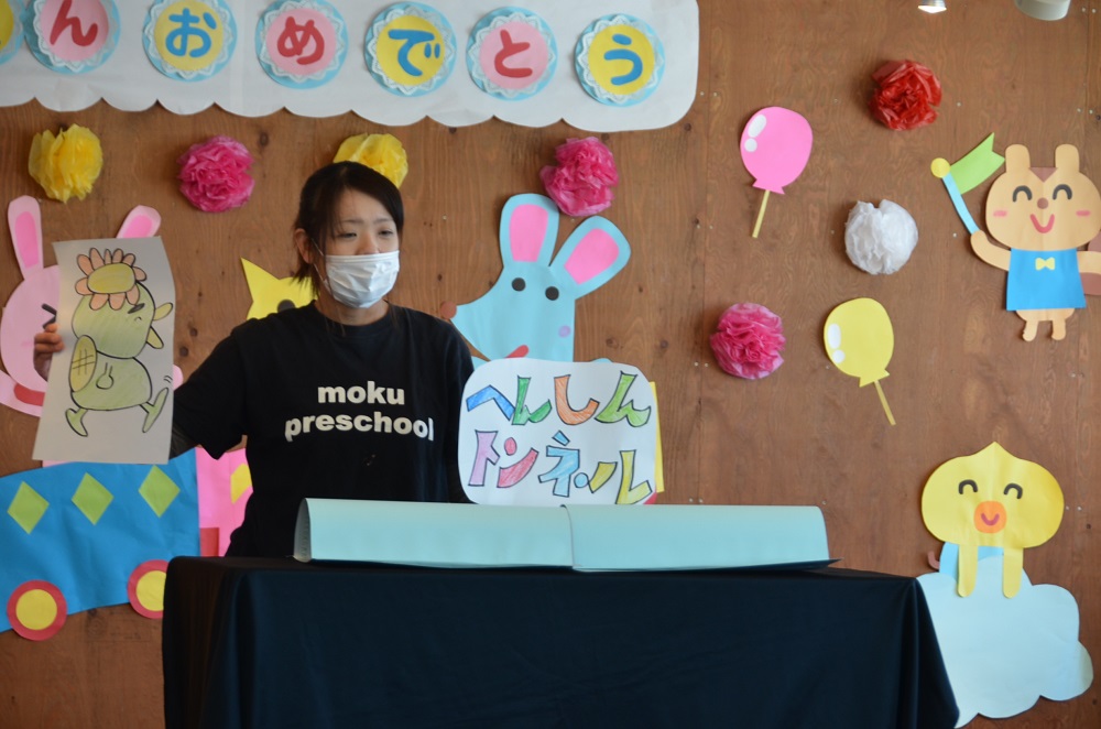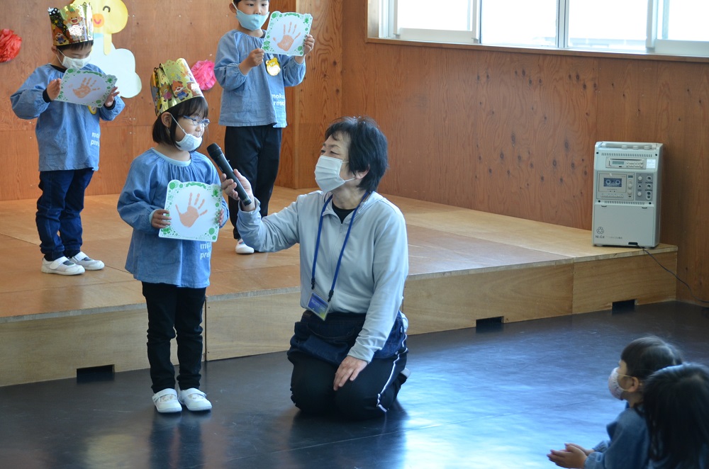 先生からのプレゼントは「へんしんトンネル」の言葉遊びでした👧