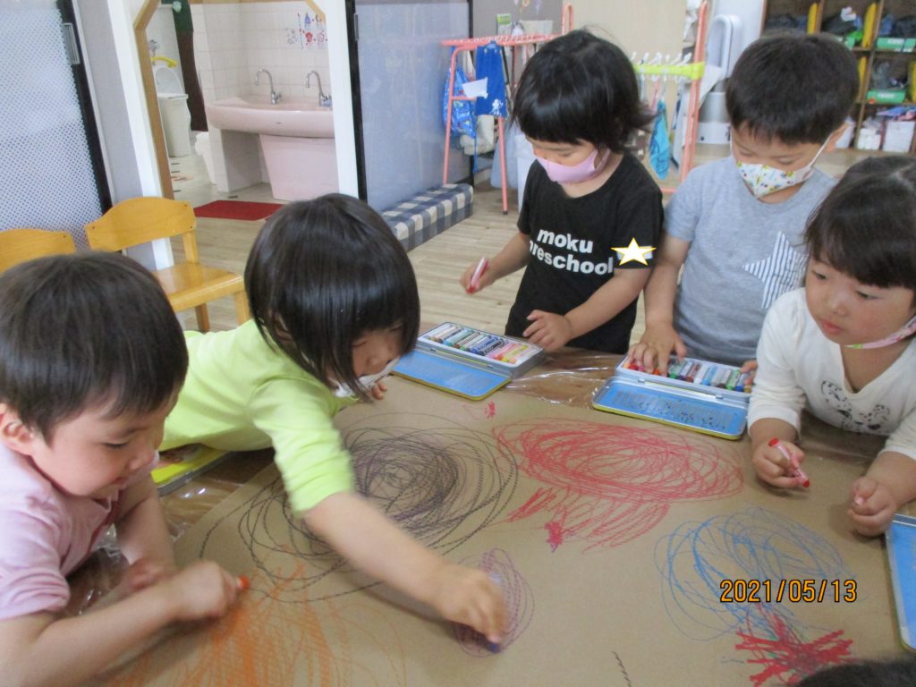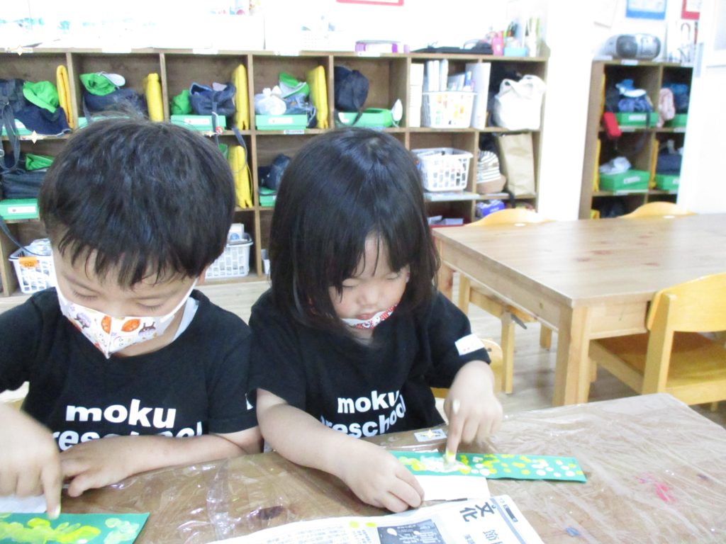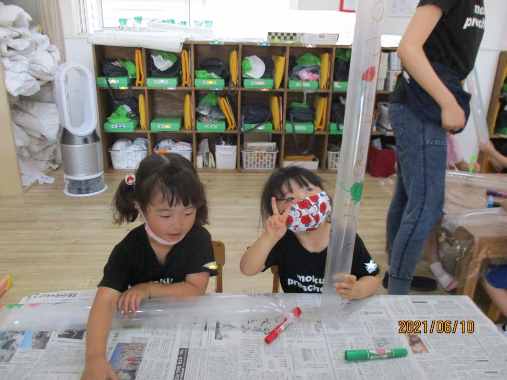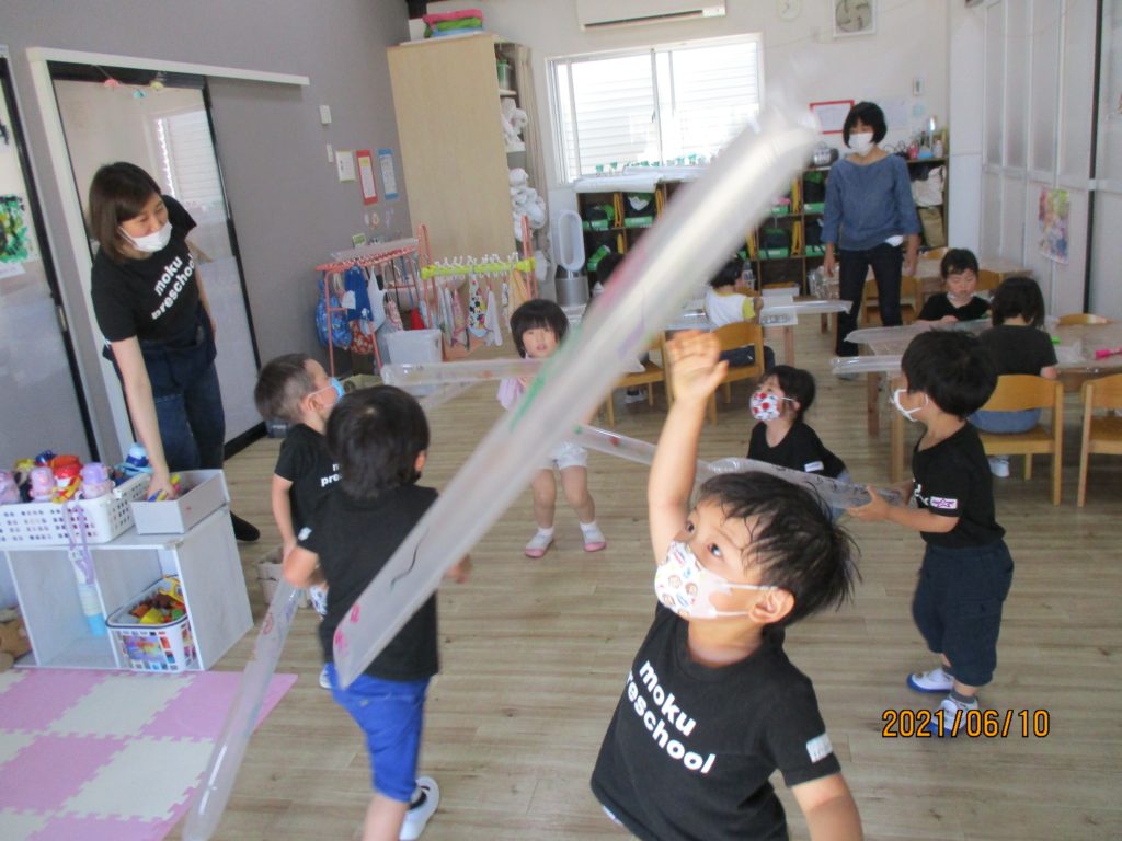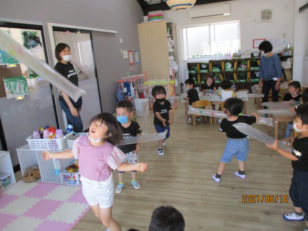ジメジメした雨降り☔だってお部屋で楽しく過ごしています。子ども達の興味はどこへだって向いていきますよ👀💡✨