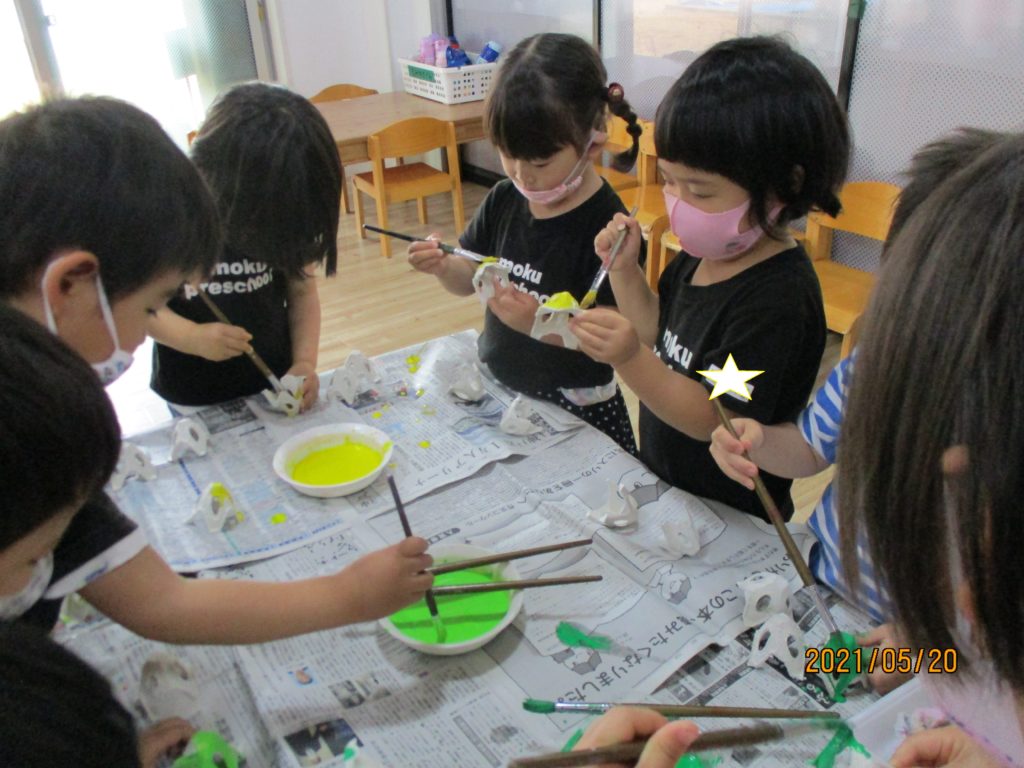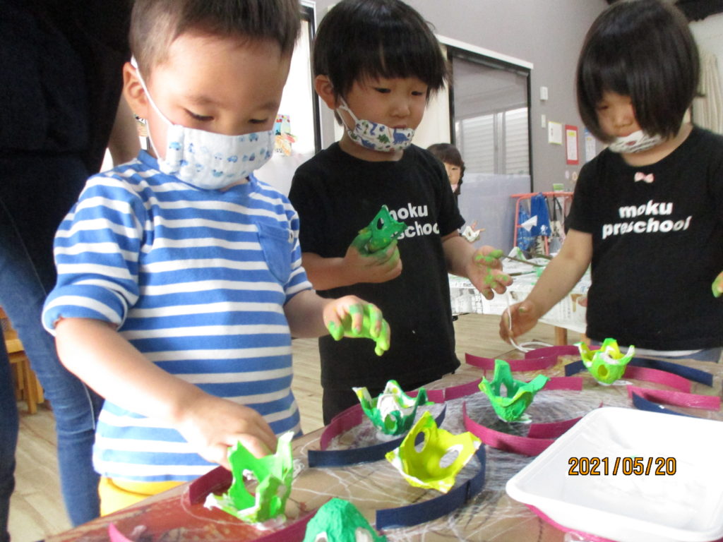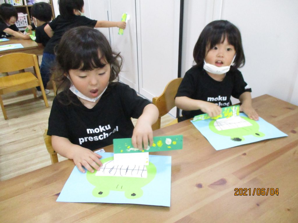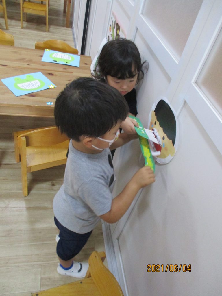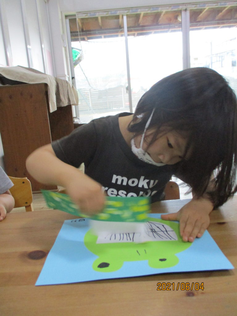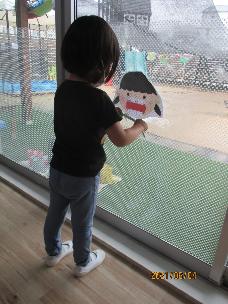 【6月4日は虫歯予防デー🦷。歯ブラシを作りカエル🐸さんの歯をみがいてあげました。歯を大切にしようね。】