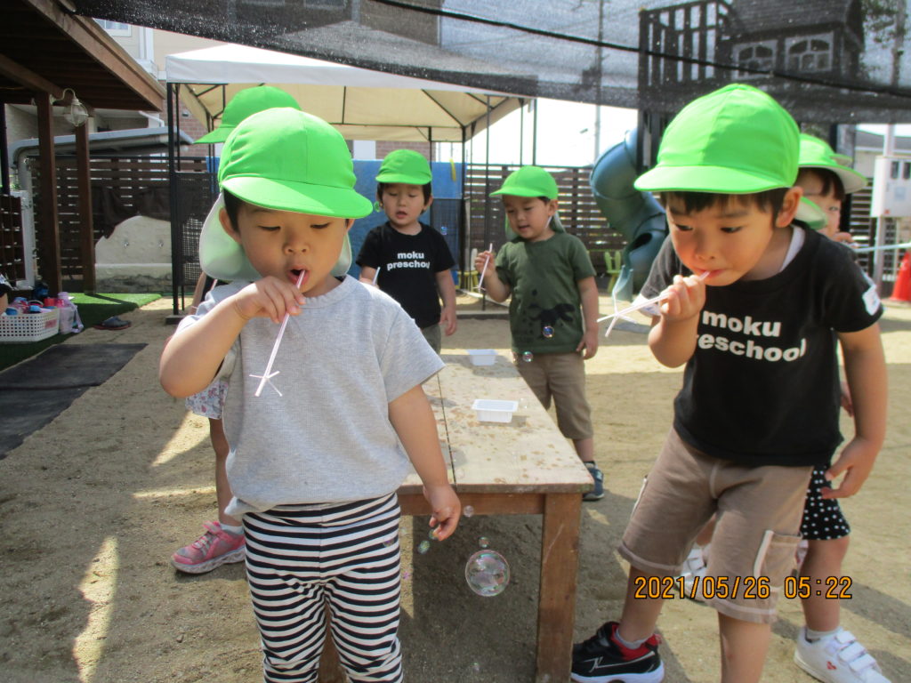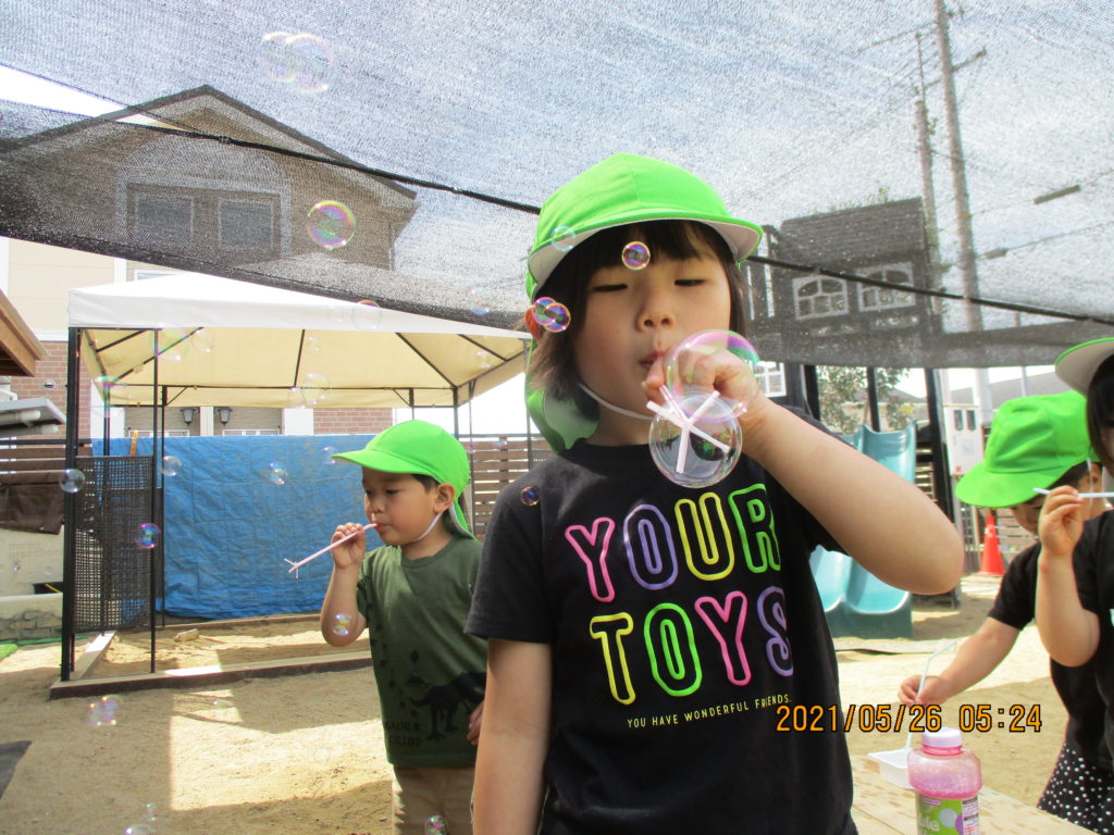 ふきをしたよ🎨しゃぼん玉が弾けていく様子がおもしろかったね】