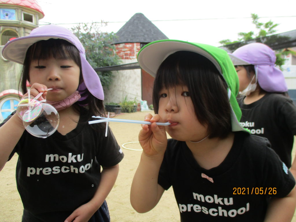しゃぼん玉をしたよ.。o○そお~とふくと大きなシャボン玉ができたよ!】