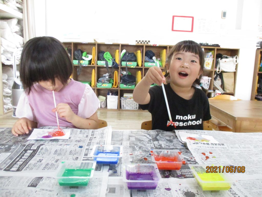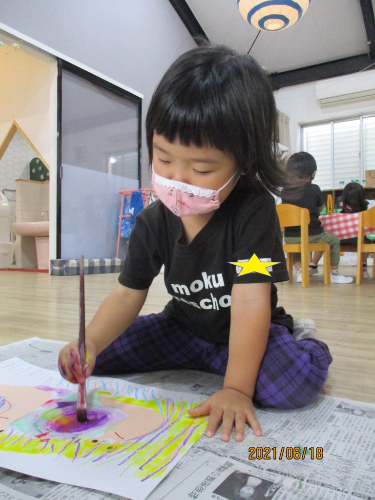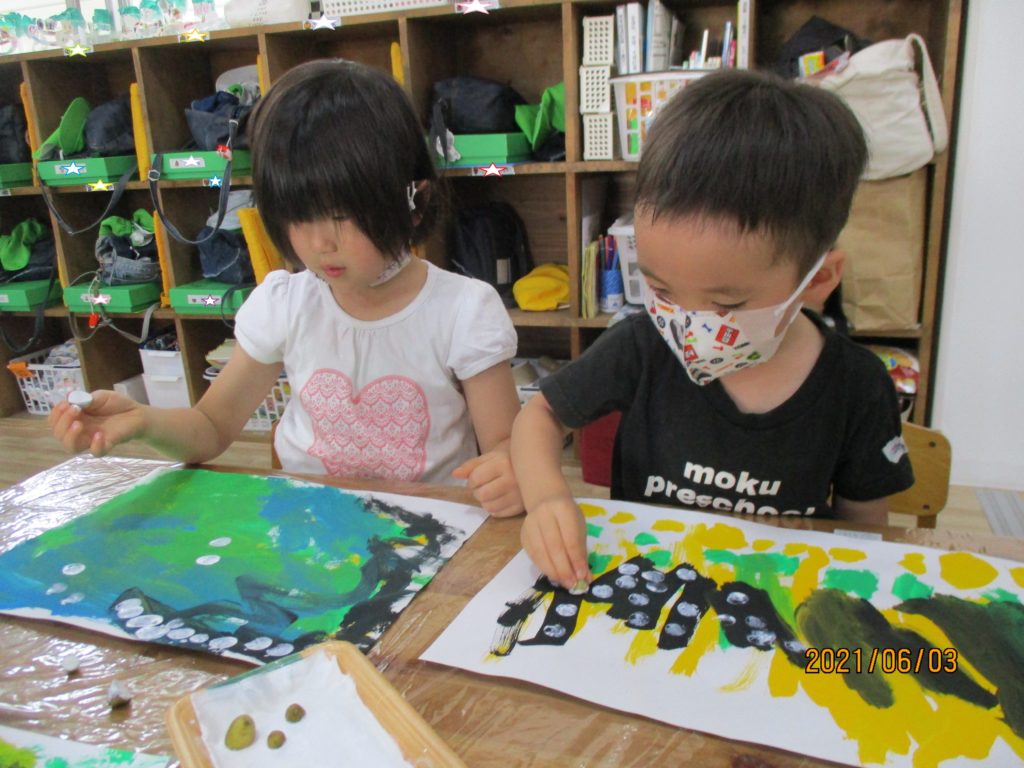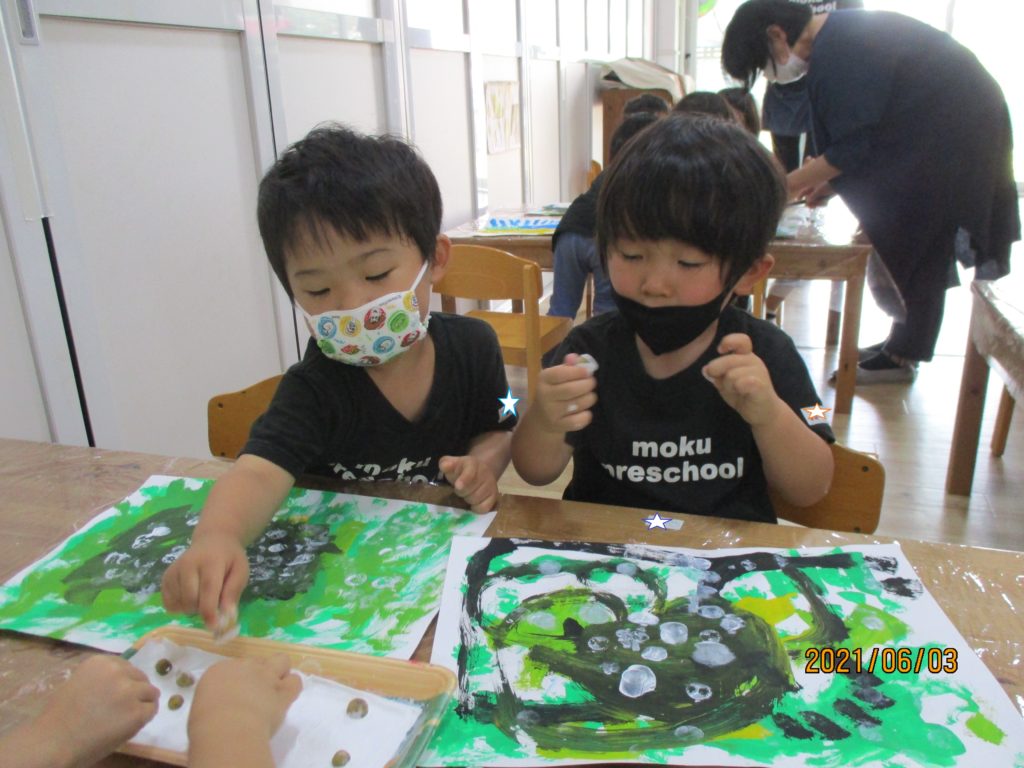 「雨」「しゃぼん玉」をのびのびと表現してみました】
