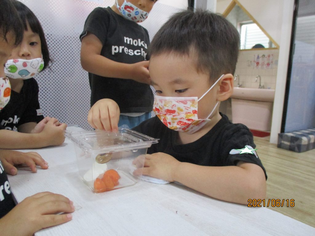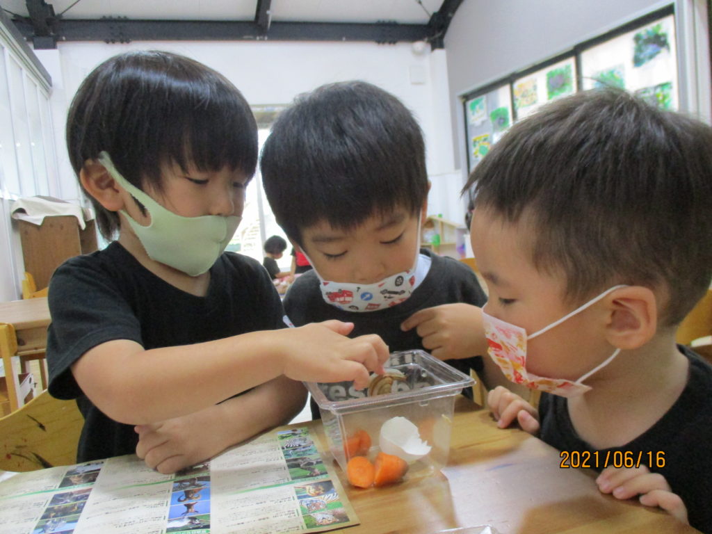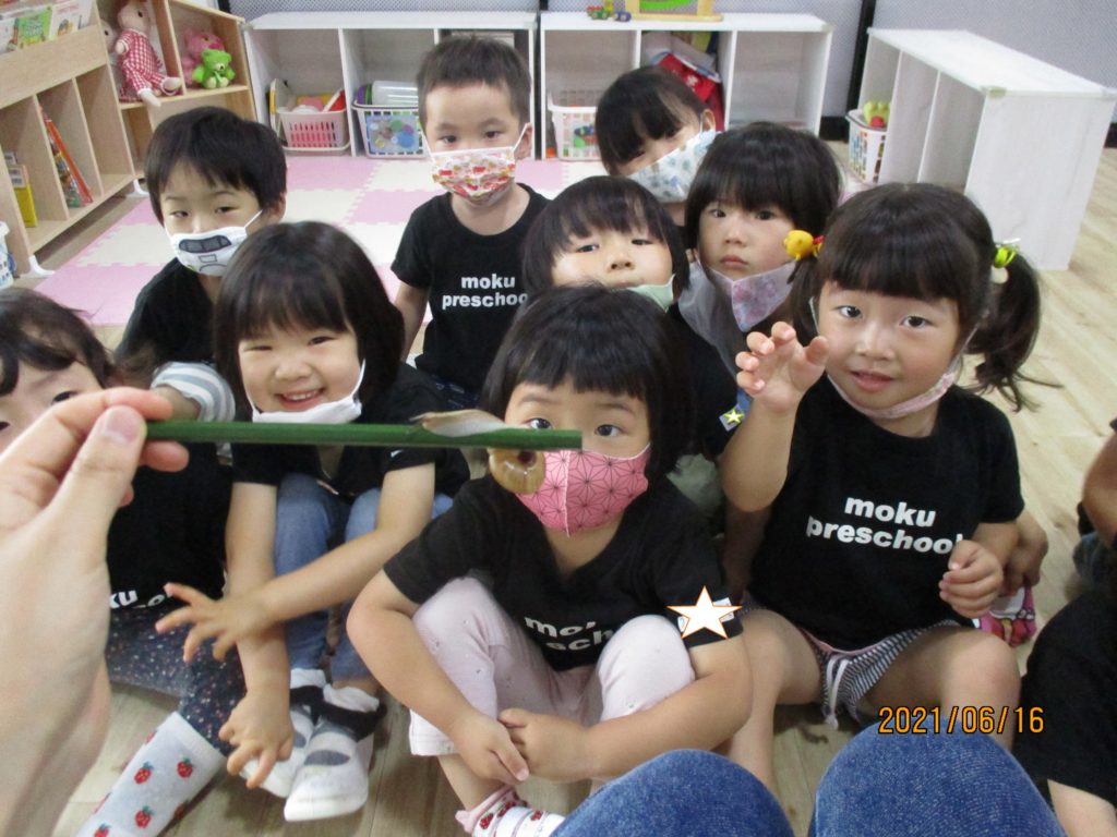 【先生がカタツムリ🐌を持ってきてくれました。カタツムリの動きをよ~~~く観察しました。カタツムリってのんびり屋さんですね。】