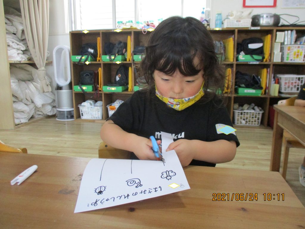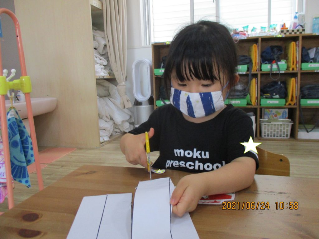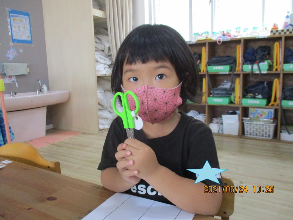 はさみ✂📄の練習をしたよ。ゆっくりゆっくりまっぐに切っていったよ。】