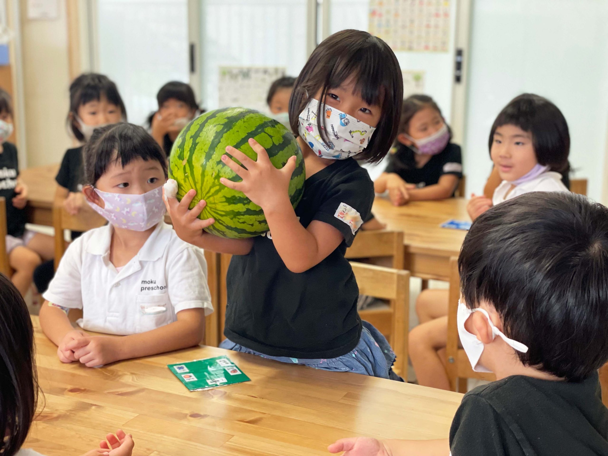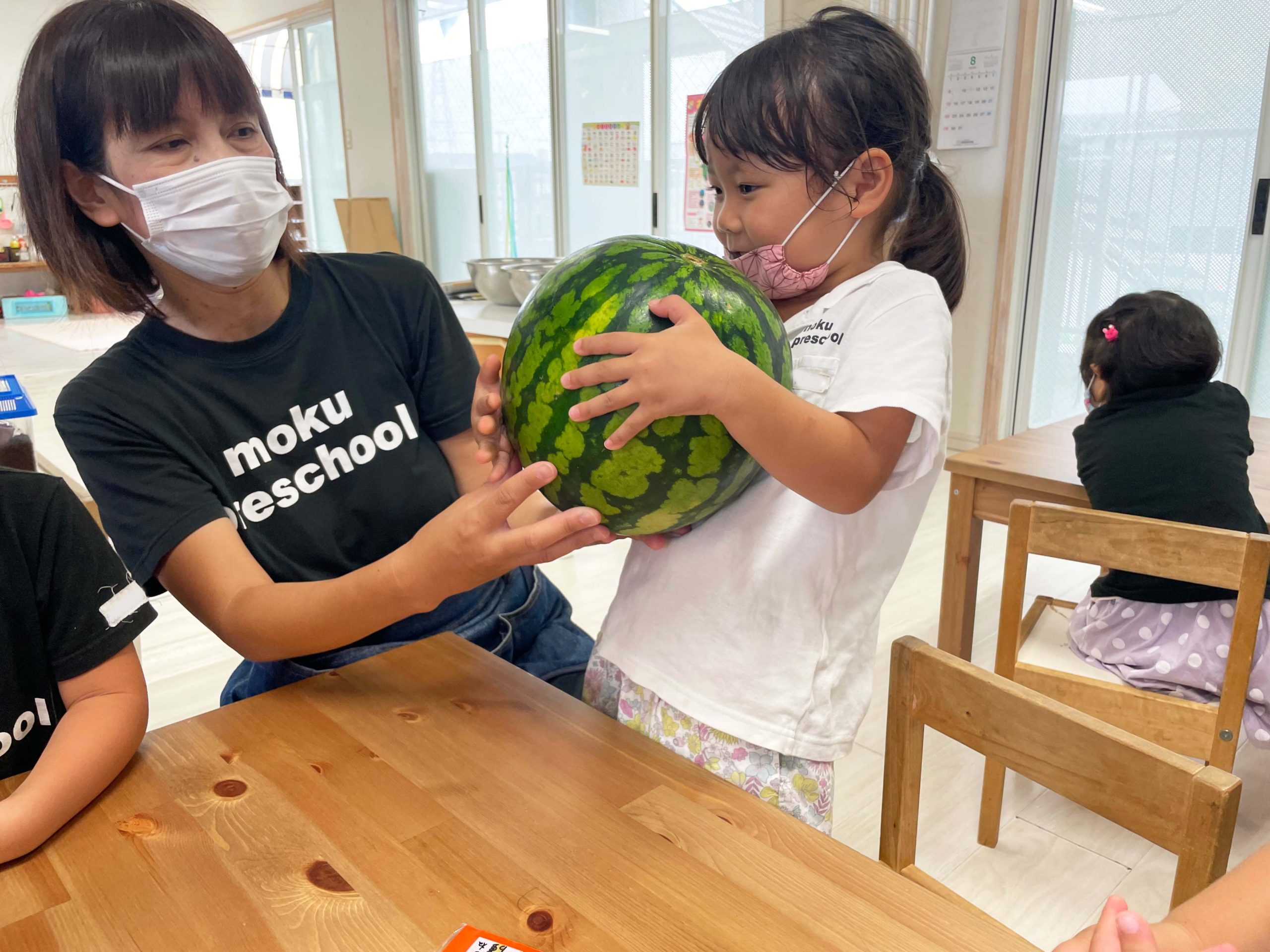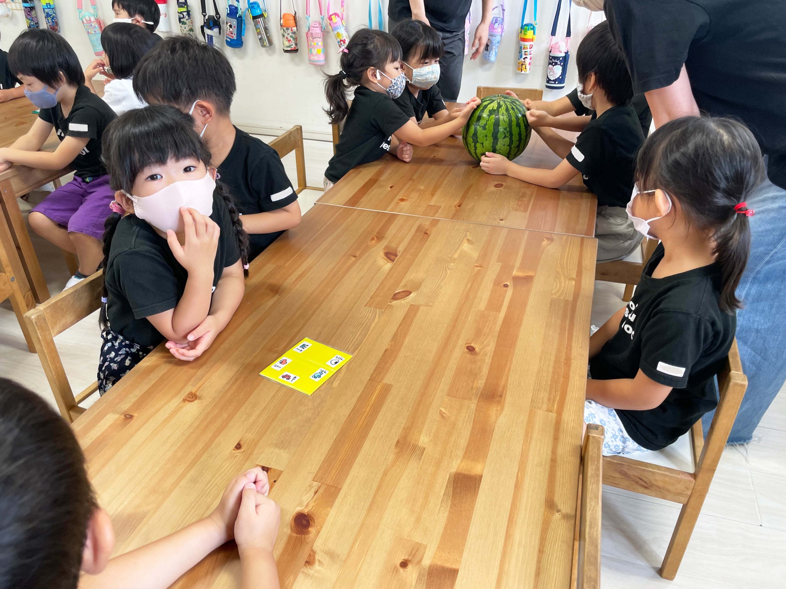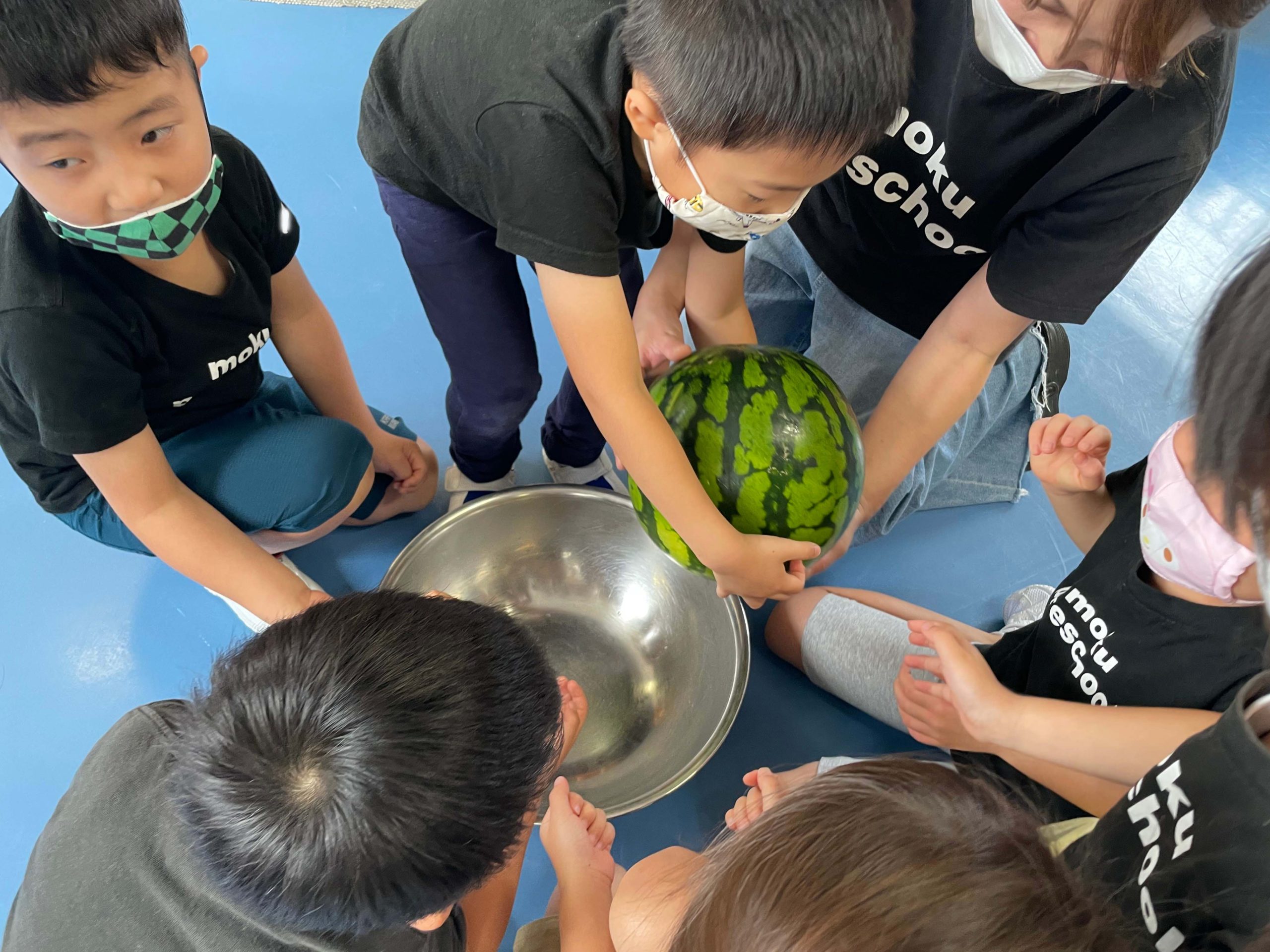 切る前のまんまるなままのスイカを見て、触って、持ってみて、音を聞いて、食べてみていろんな感覚で学ぶことができました💡🍉