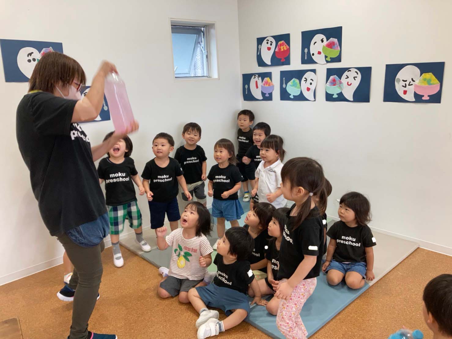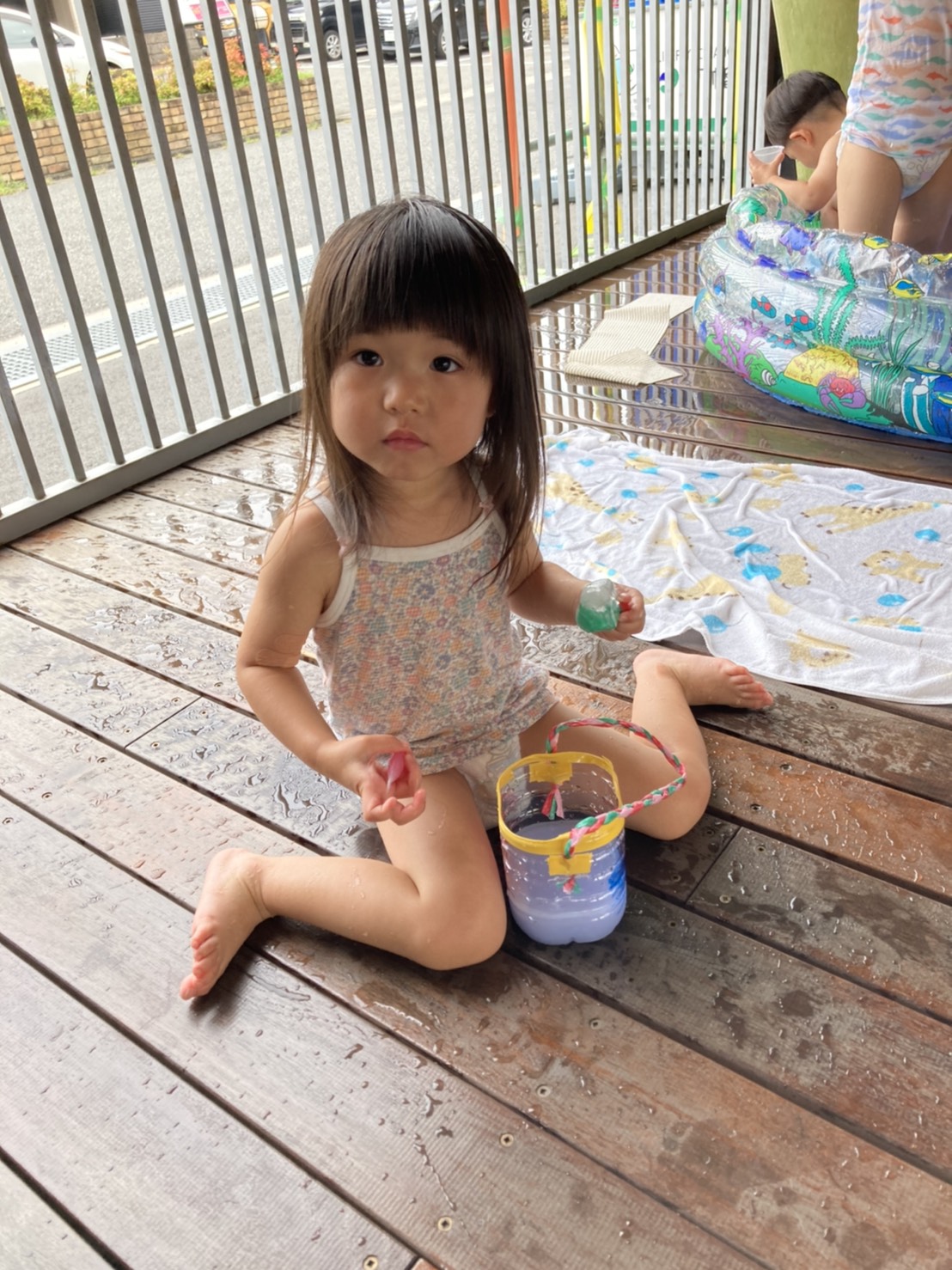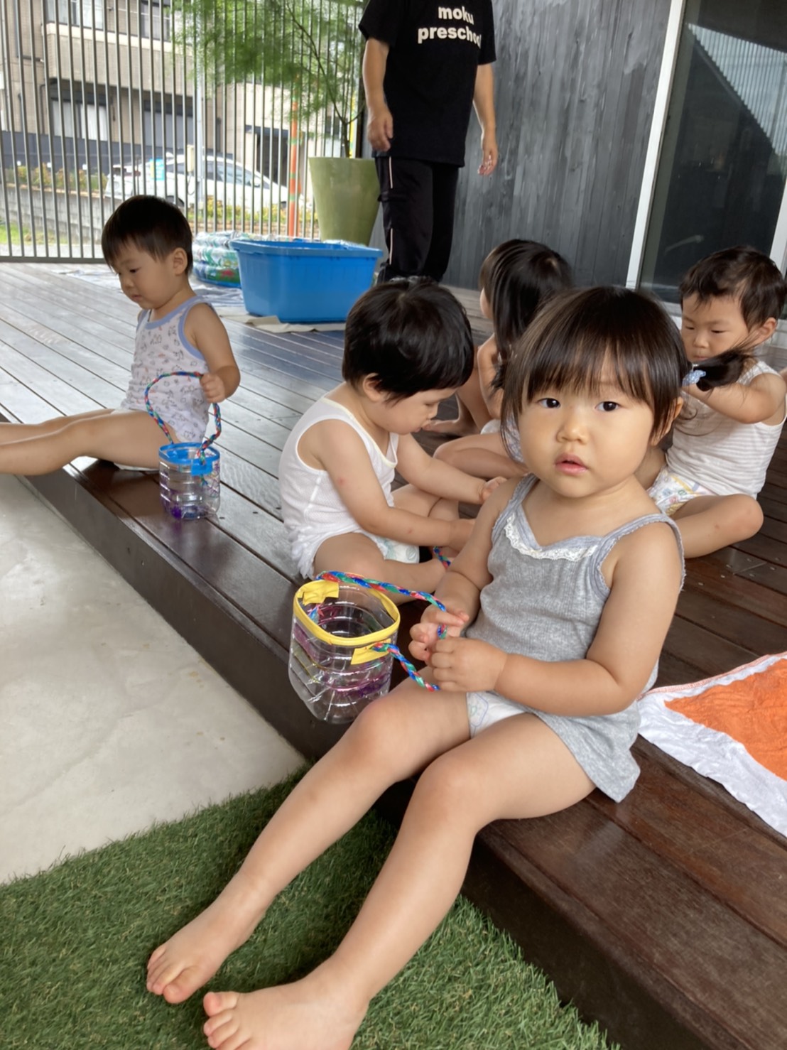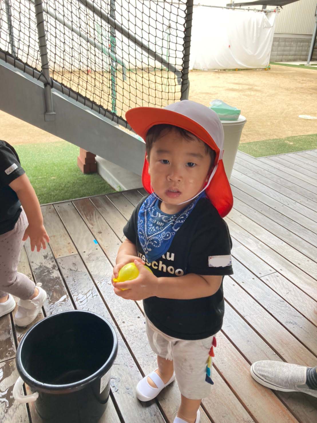 色水を入れた袋を上から触ってみたり、落としてみたり、冷たい触り心地を楽しみました!