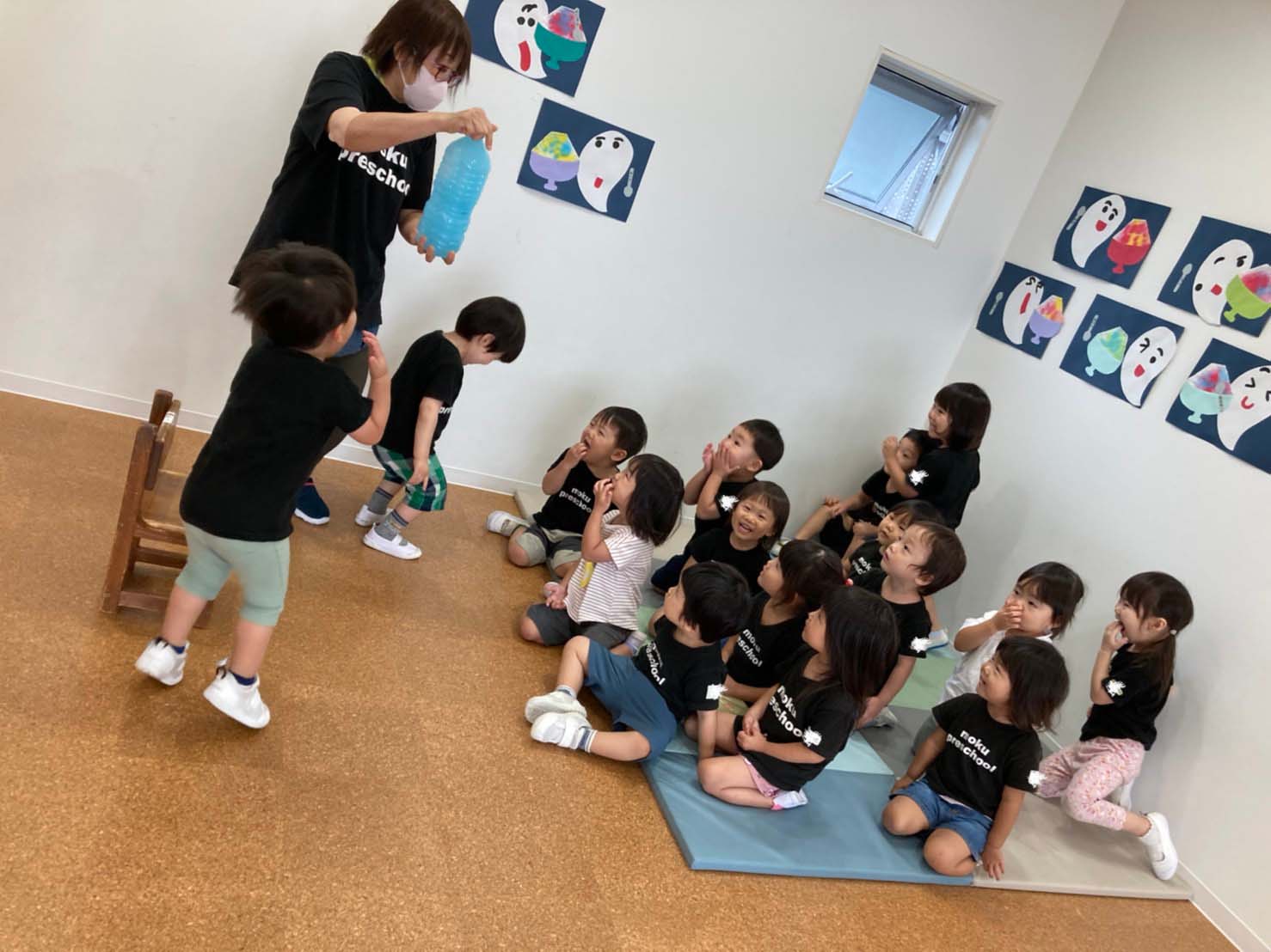 ペットボトルの透明の水に先生が魔法をかけると、、、