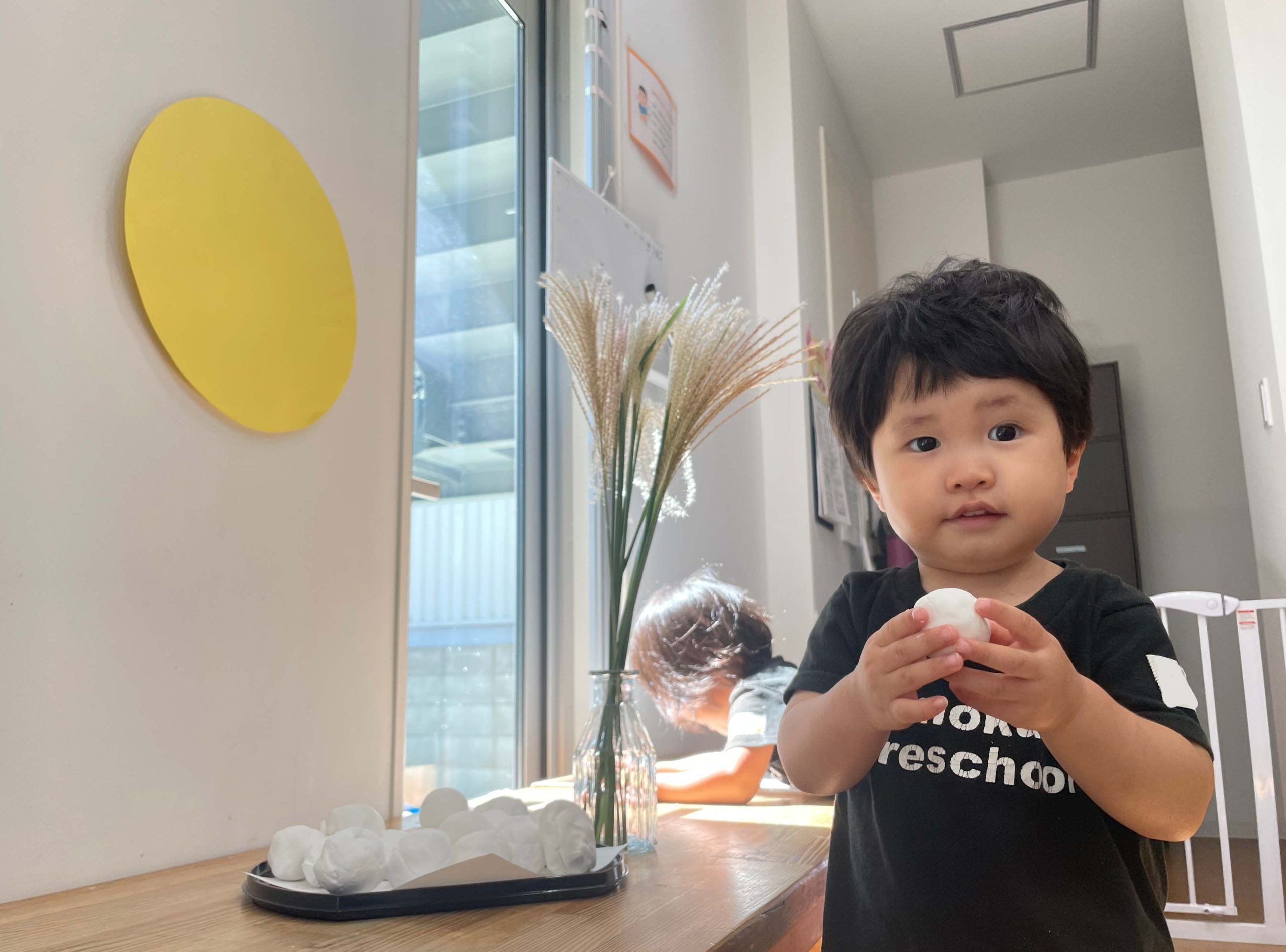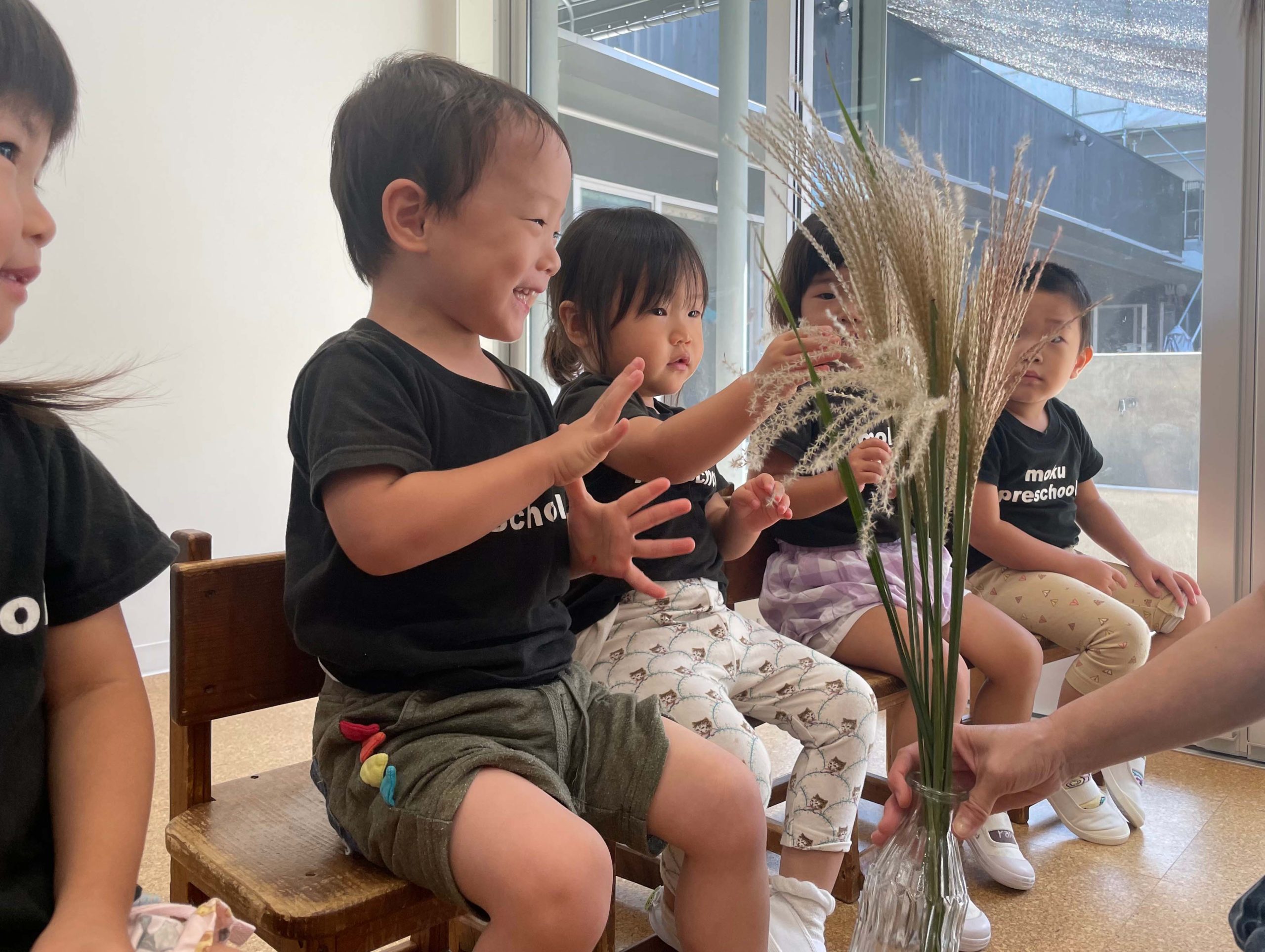 お団子を作る前に先生が取ってきてくれた「ススキ」をみんなで触りました!