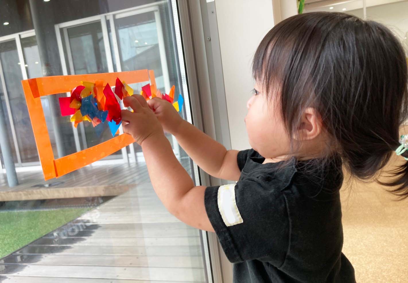 先生が窓にシールを貼ってくれたものを剥がして貼って剥がして貼って