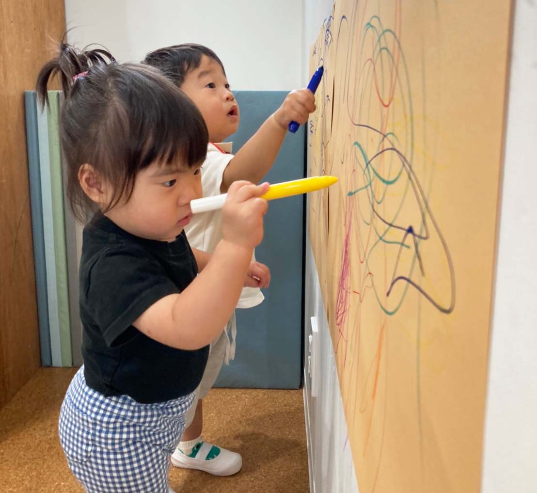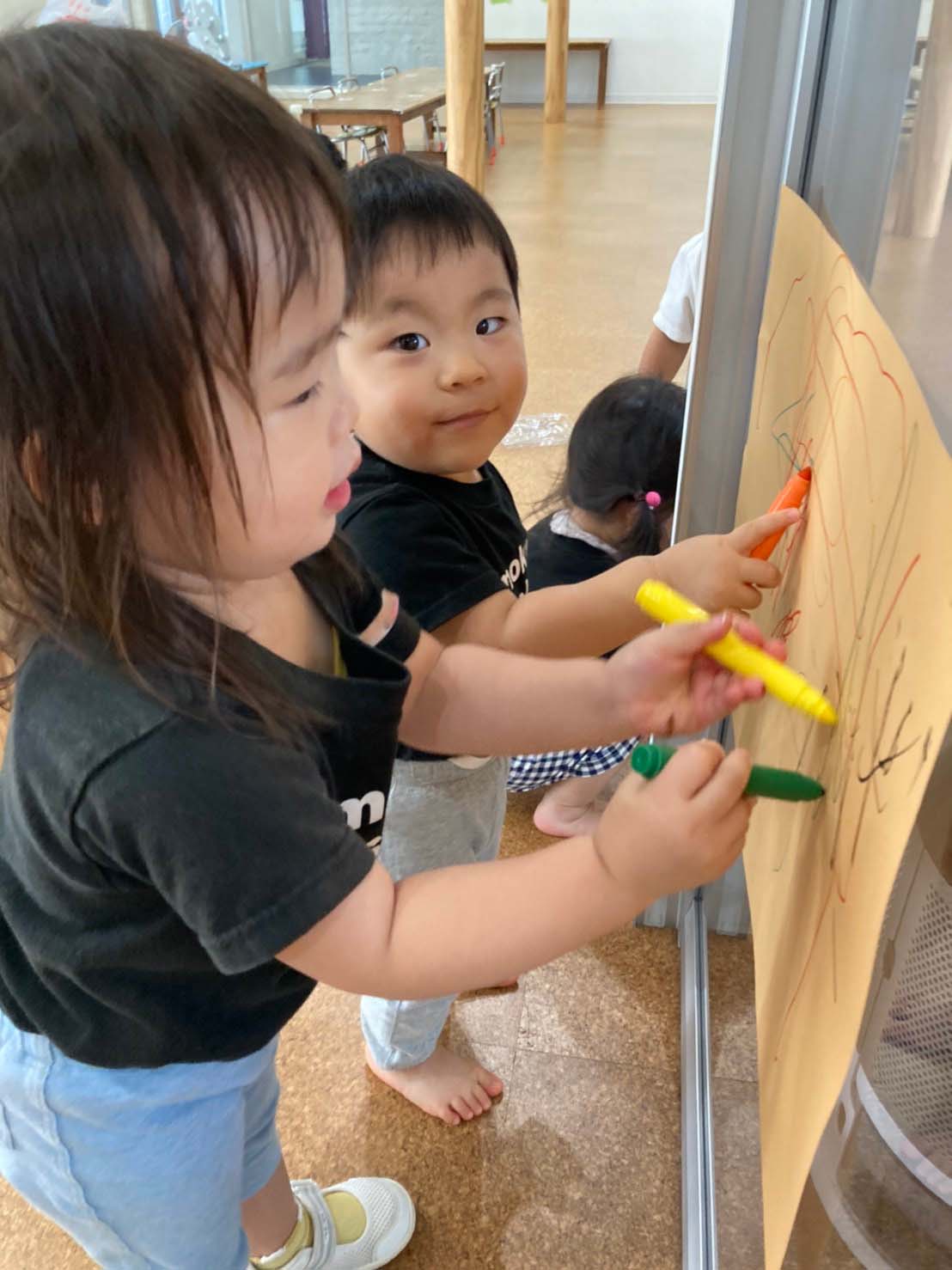 壁に画用紙を貼ってお絵かき🎨