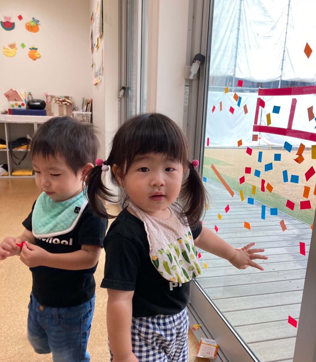 その内側に貼ったり、線上に貼ったり、自由に貼って楽しんだよ👏🏻