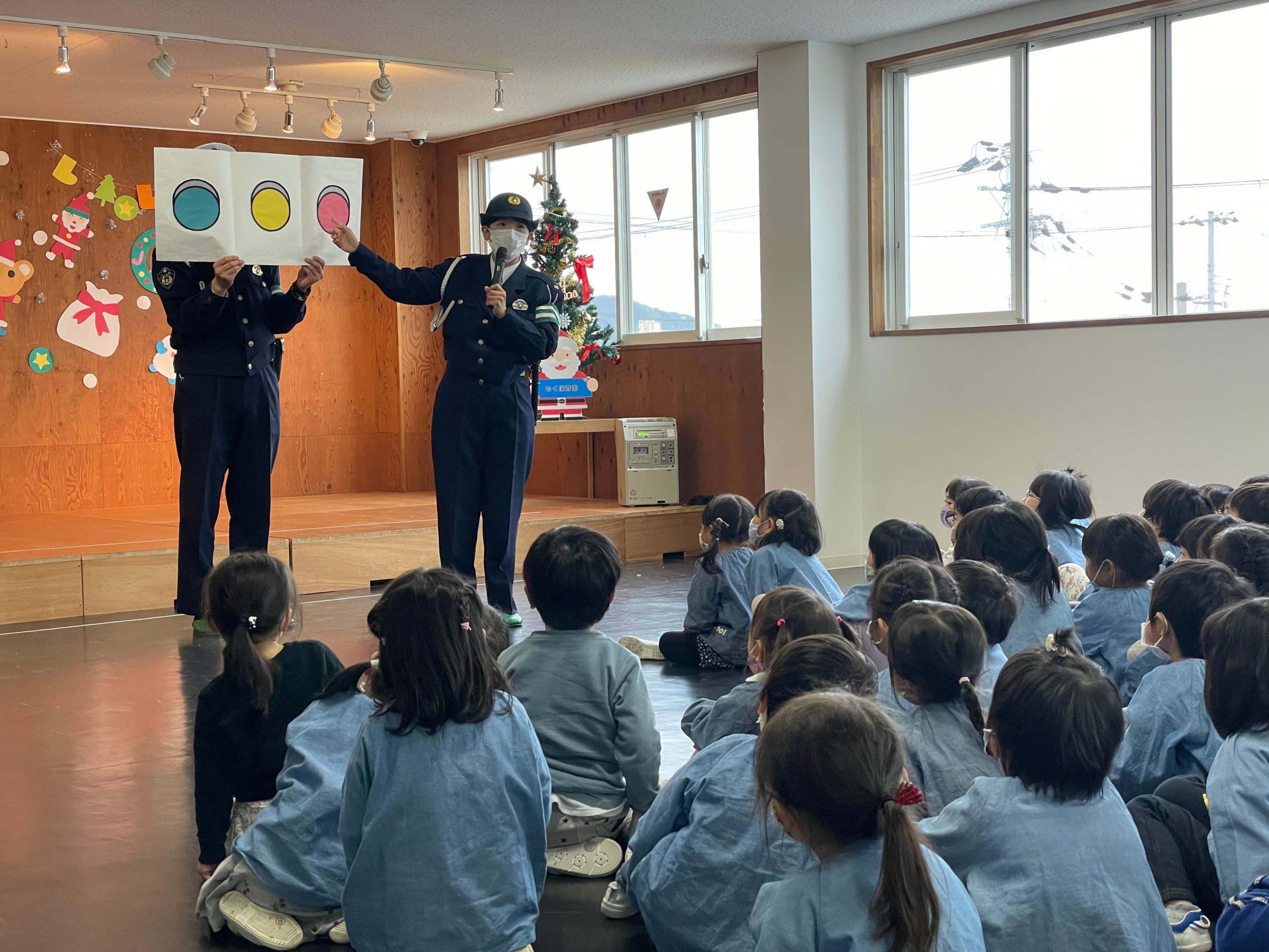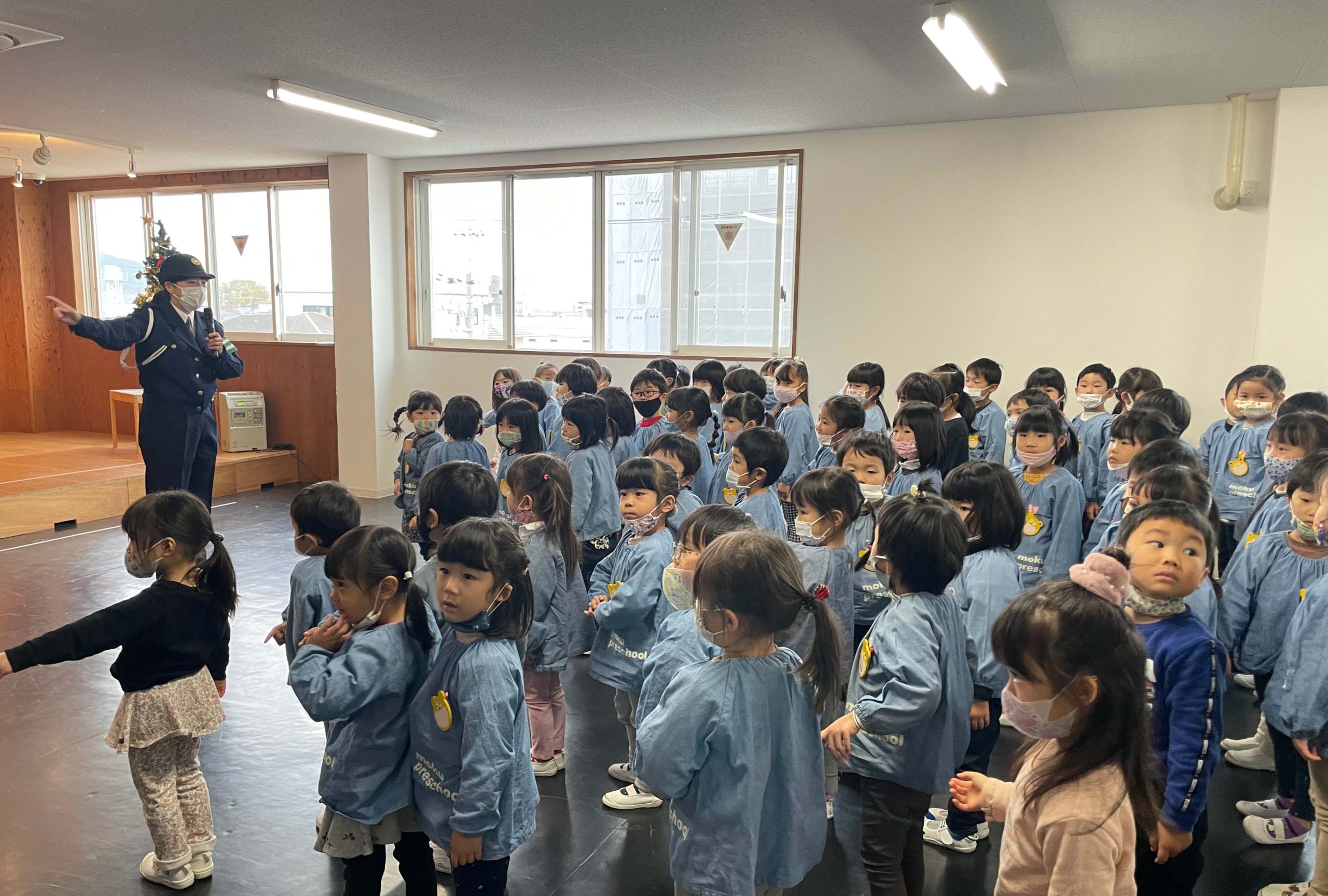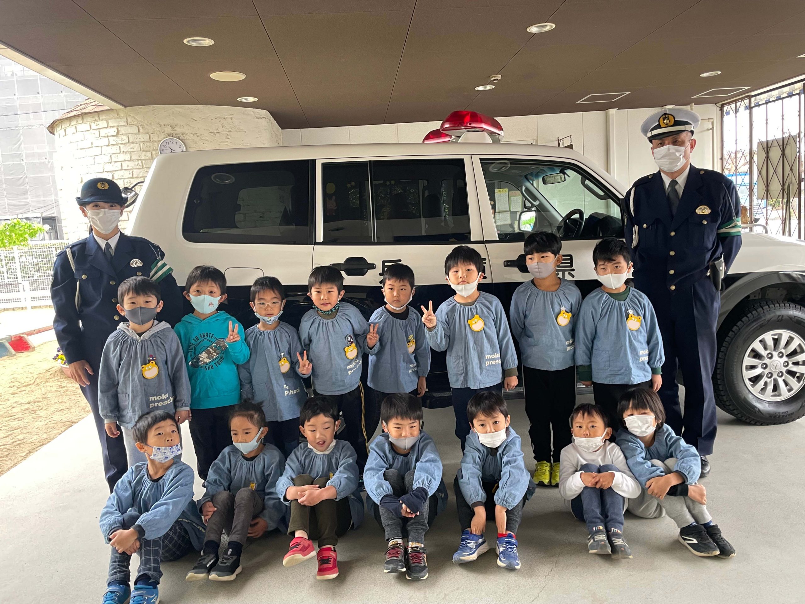 本園ではお巡りさんがパトカーに乗って来てくれて全教を開きました☺️