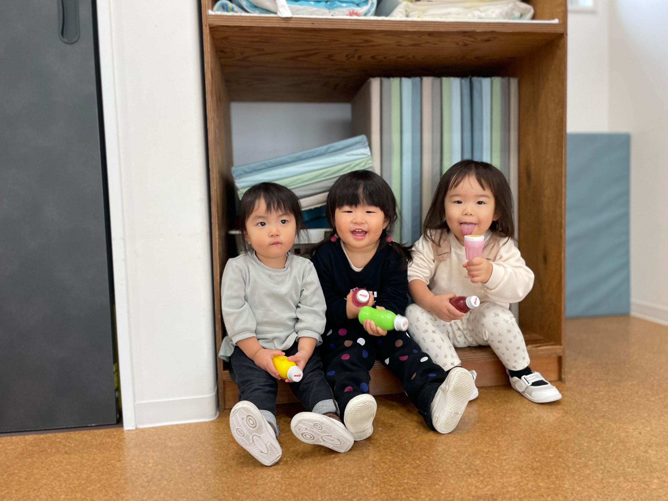 いろんな色のジュースがあるので、「これは何ジュースかな〜?」とお話しています☺️