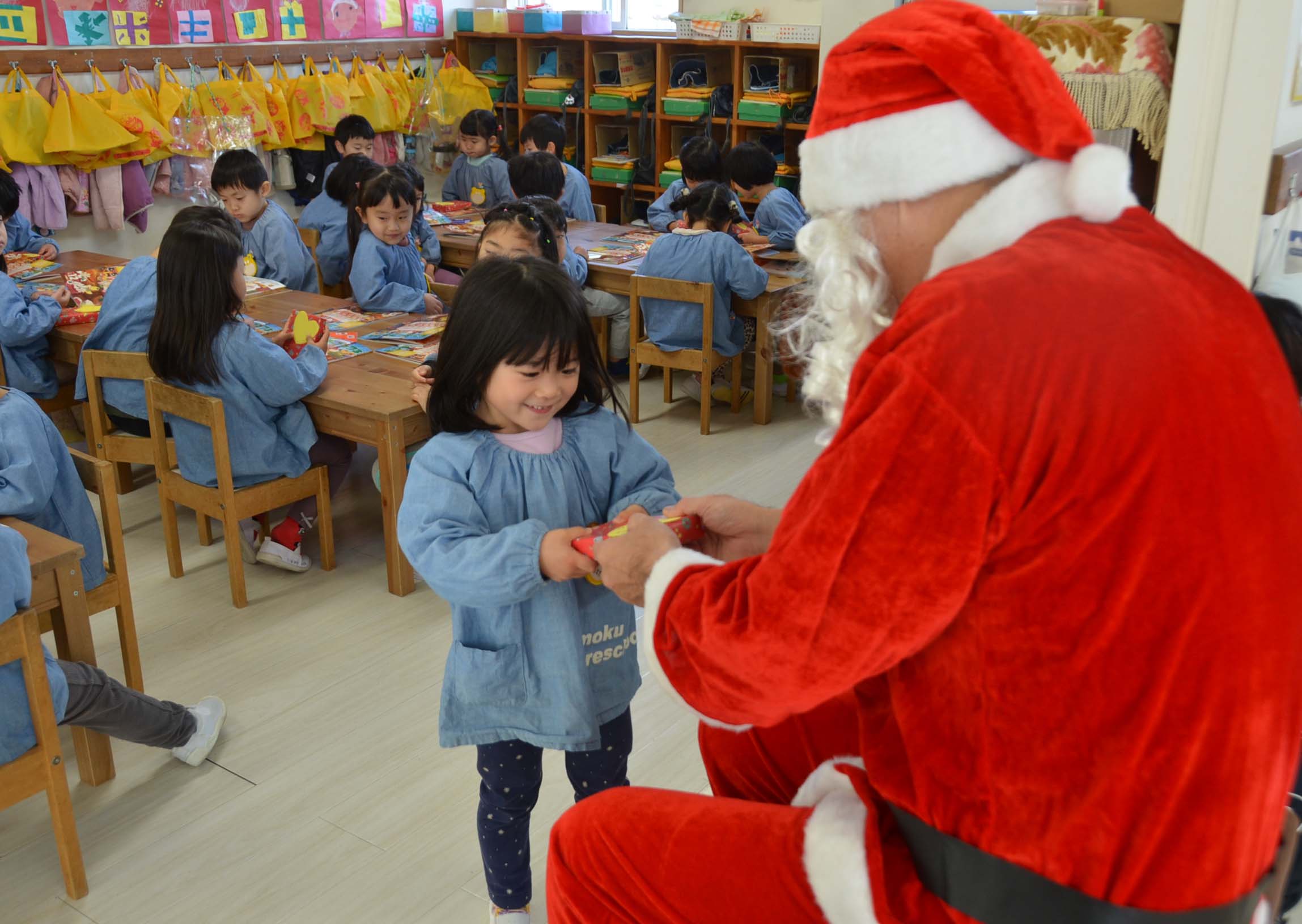 それぞれの組をまわってサンタさんが🎁をくれました♪