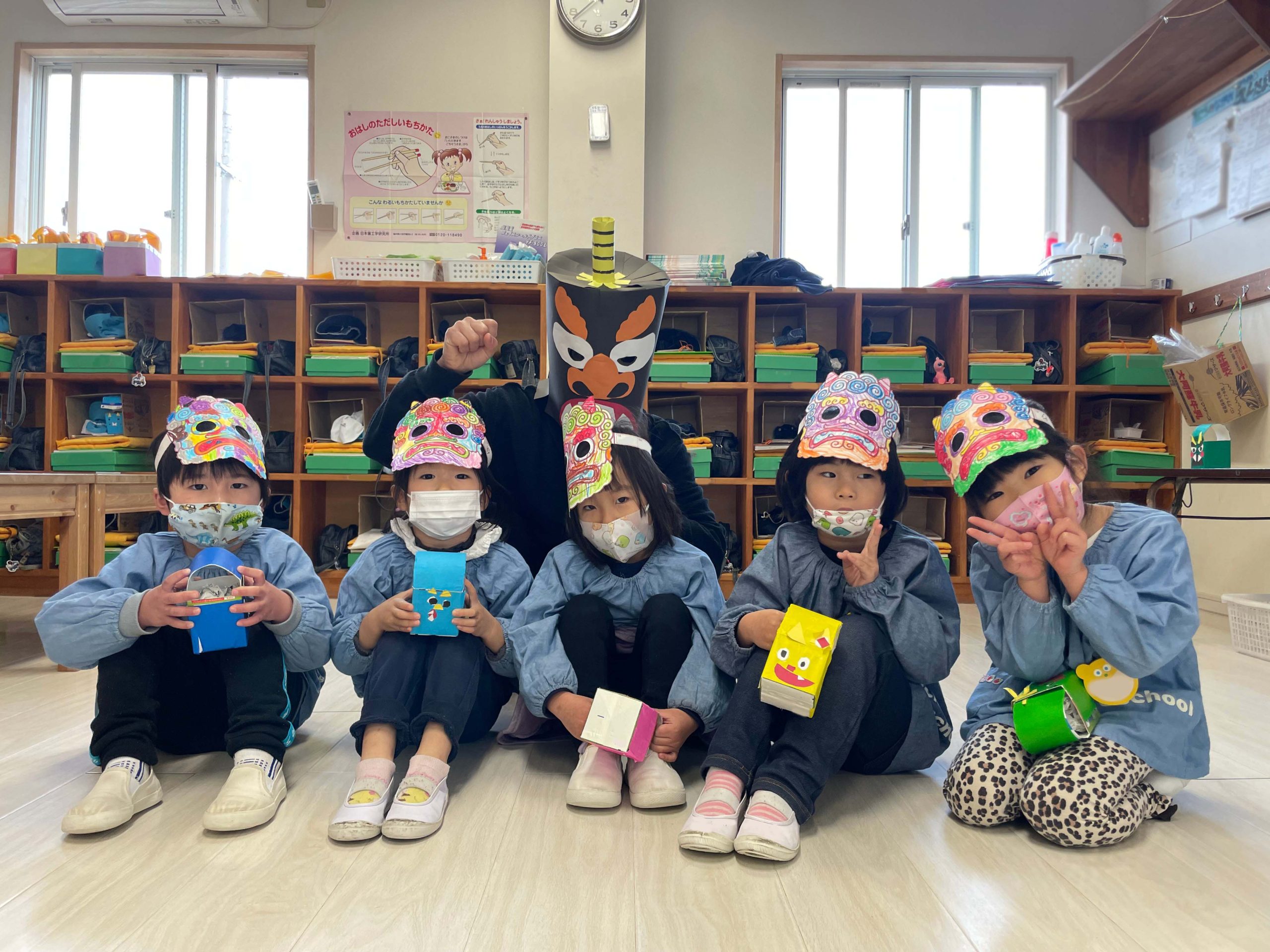 それぞれの鬼のお面を作ったり、豆の入れ物を作ったり豆まきを楽しみました💓