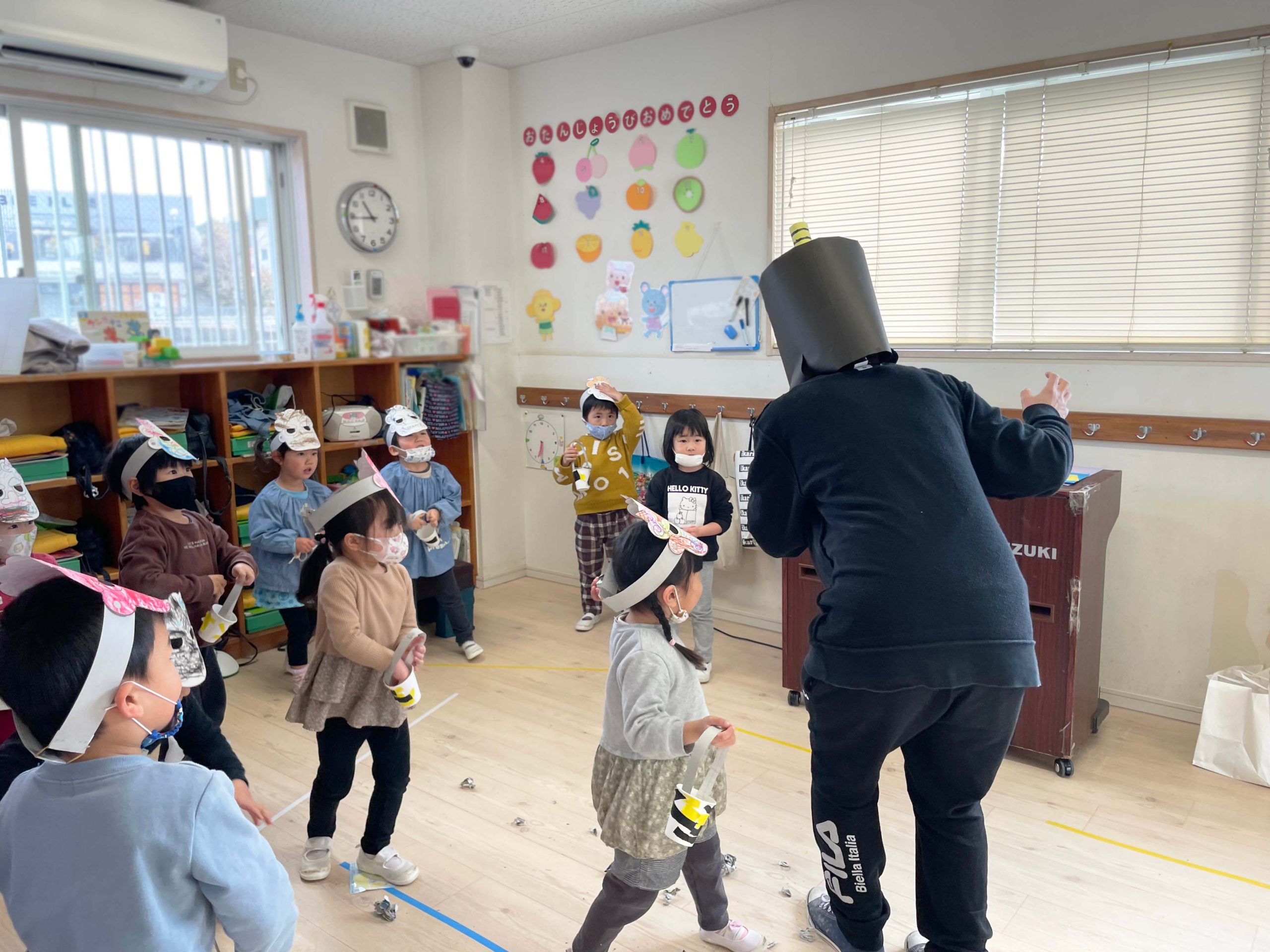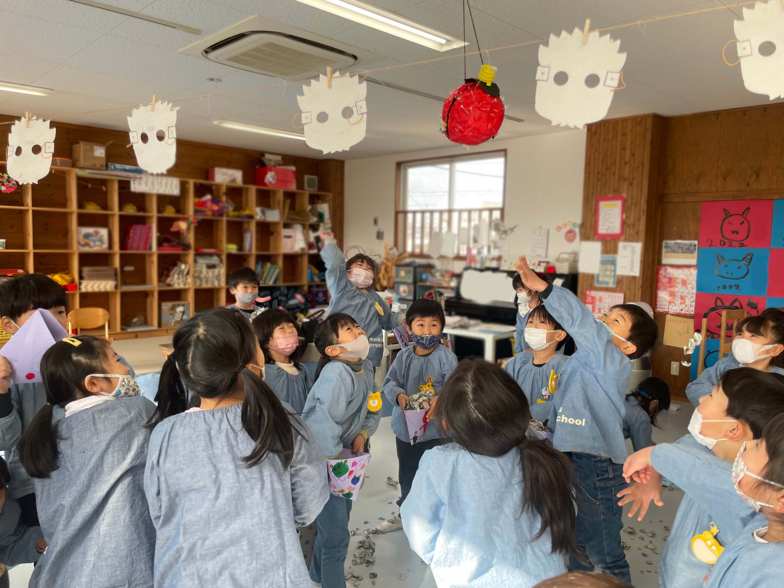 まん延防止等重点措置が発令中のため各組に分かれて豆まきをしました!!😆✨