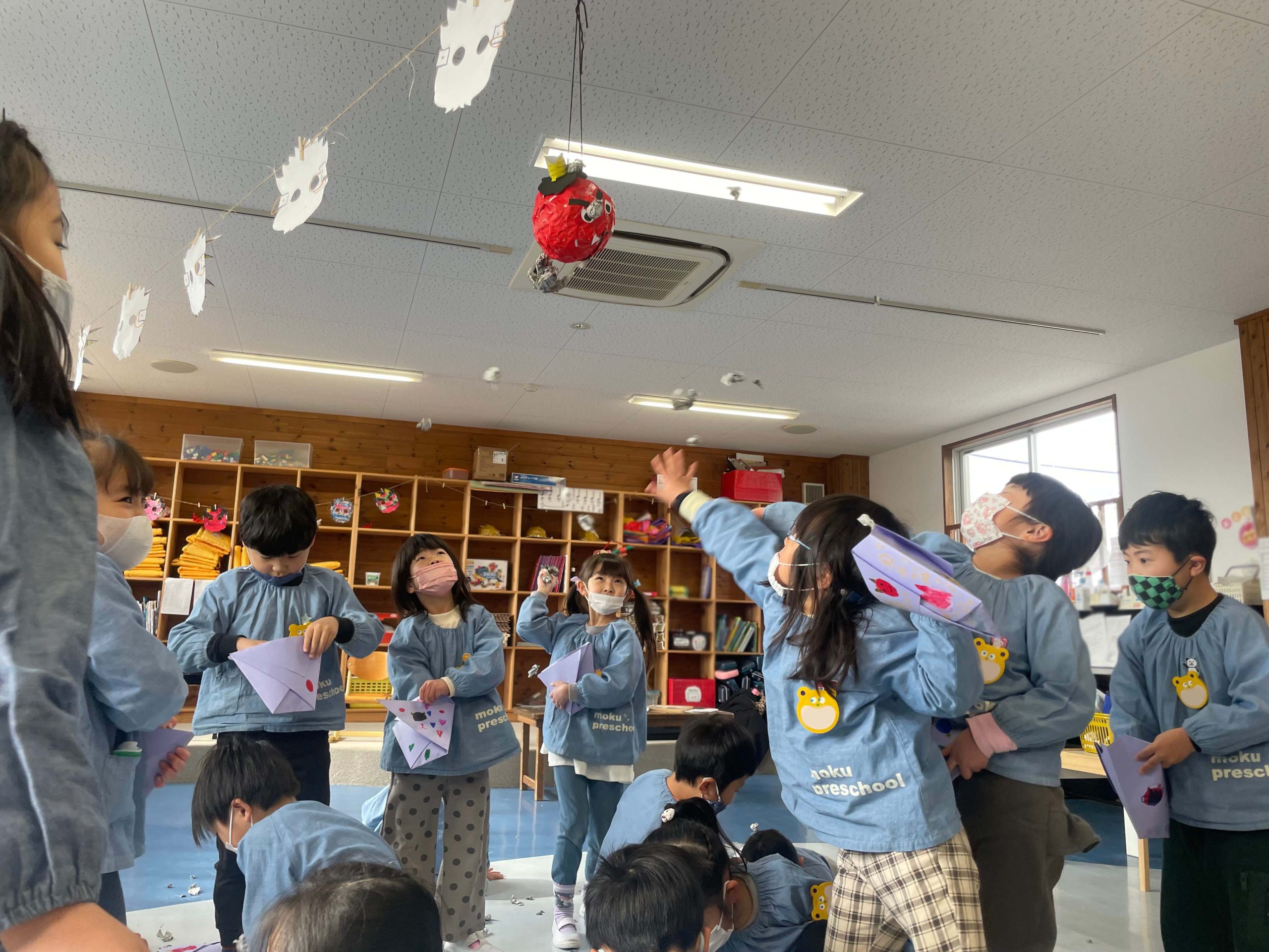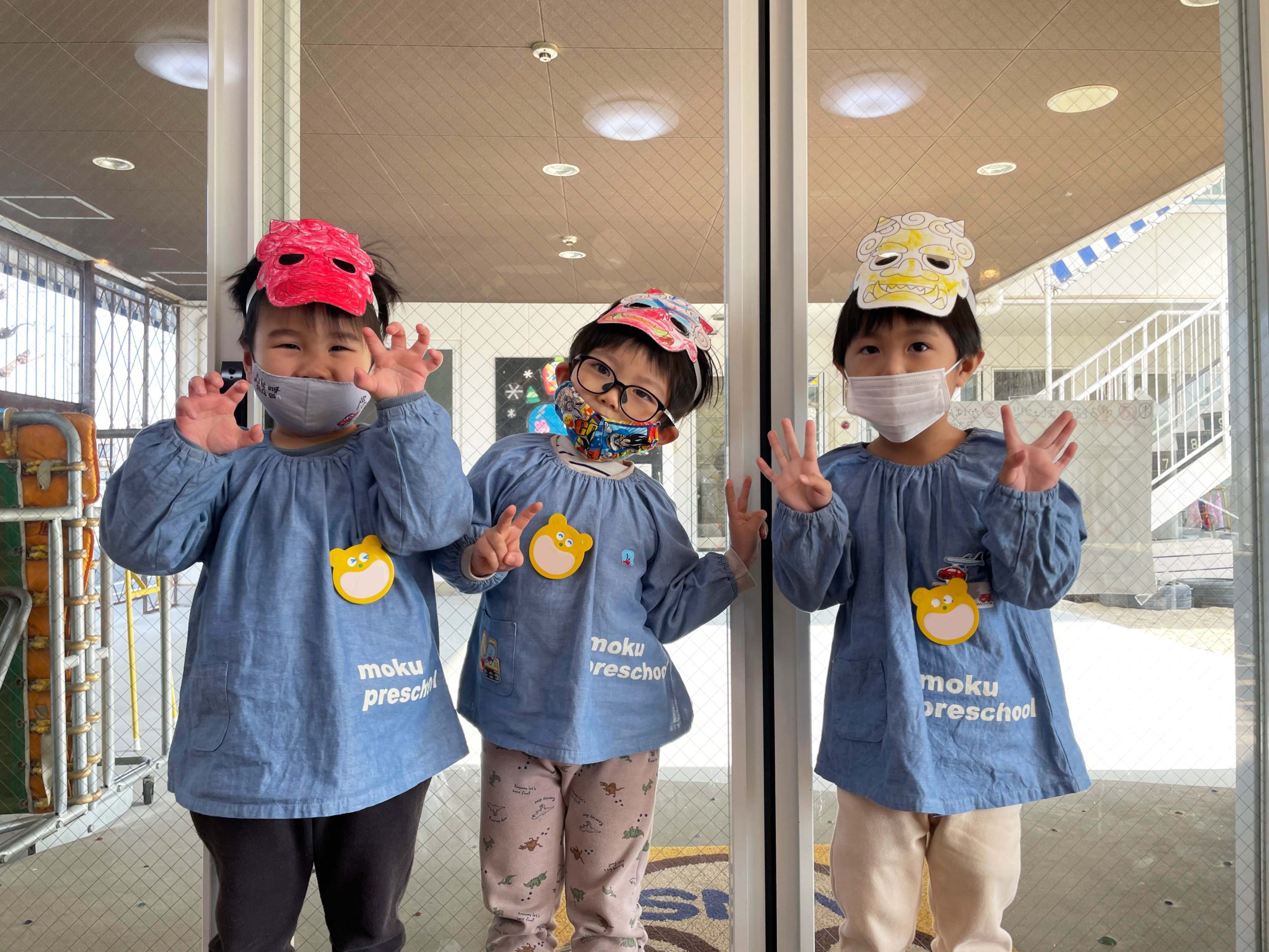 まん延防止等重点措置が発令中のため各組に分かれて豆まきをしました!!😆✨