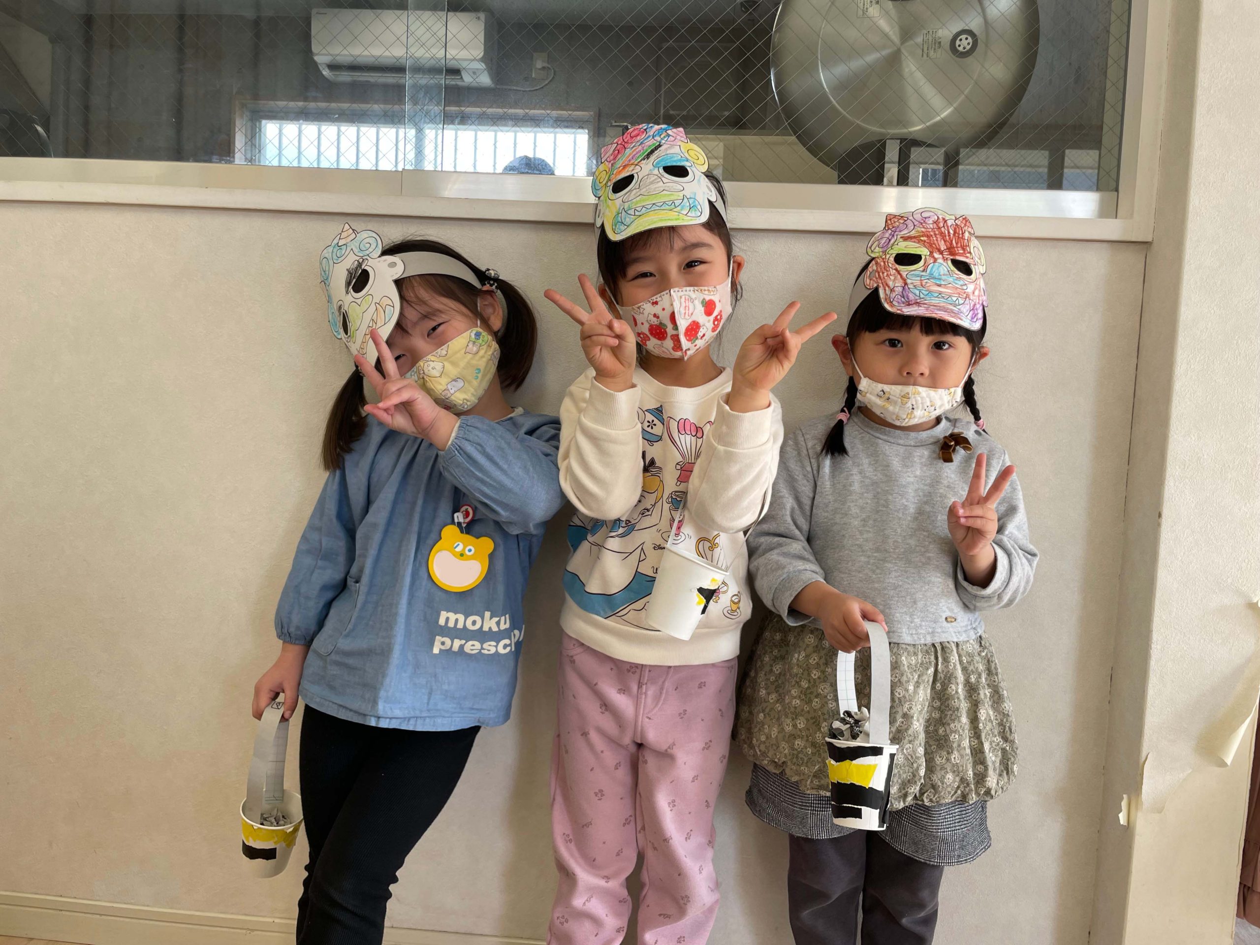 それぞれの鬼のお面を作ったり、豆の入れ物を作ったり豆まきを楽しみました💓