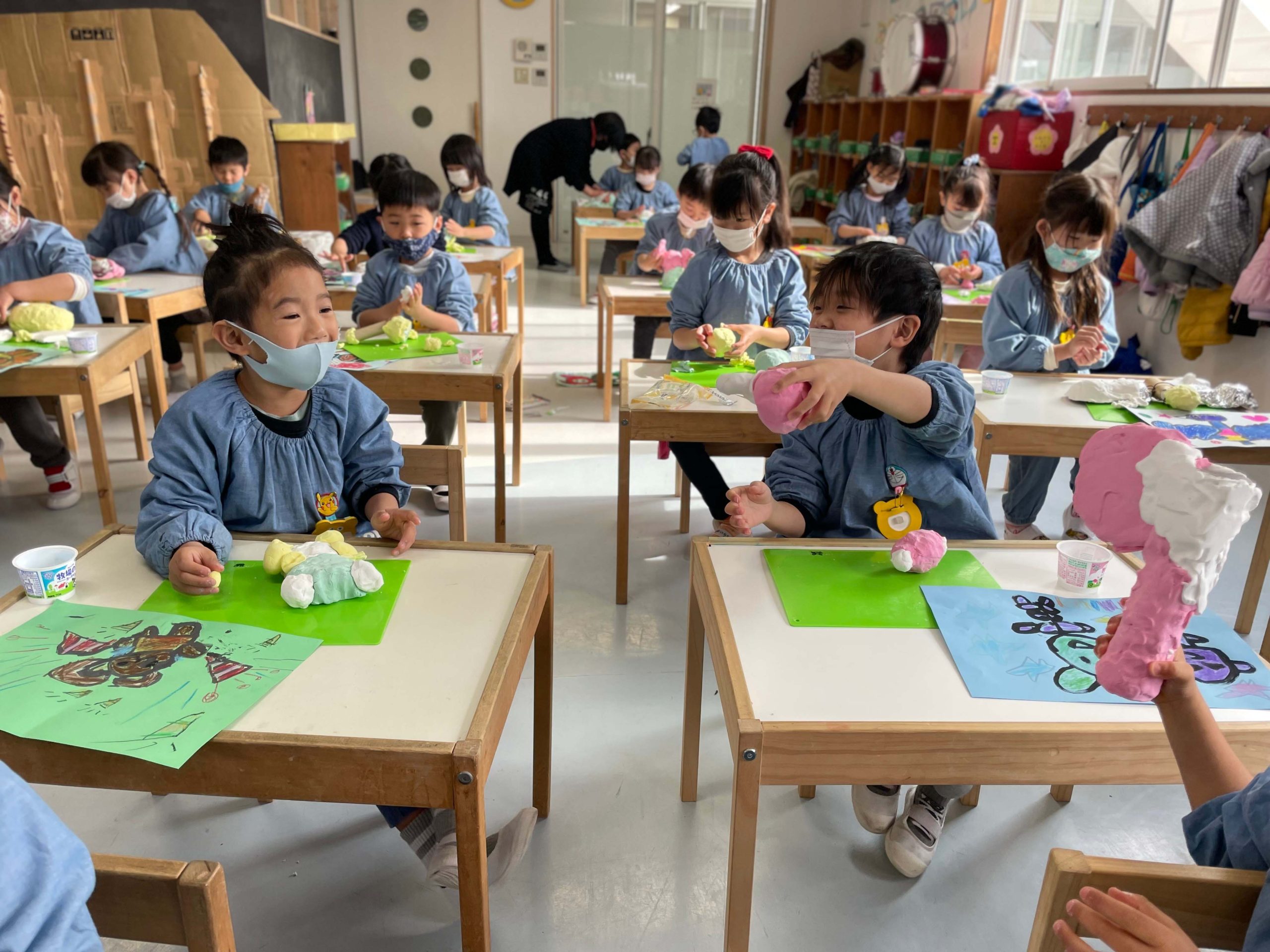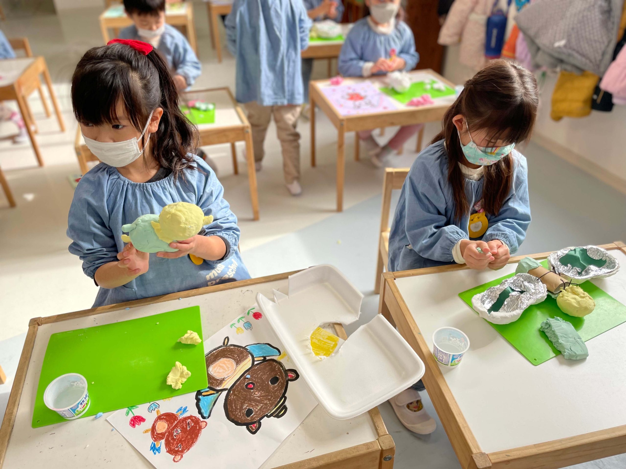 紙ねんどが乾いたら、絵の具で色塗ろうね!😆