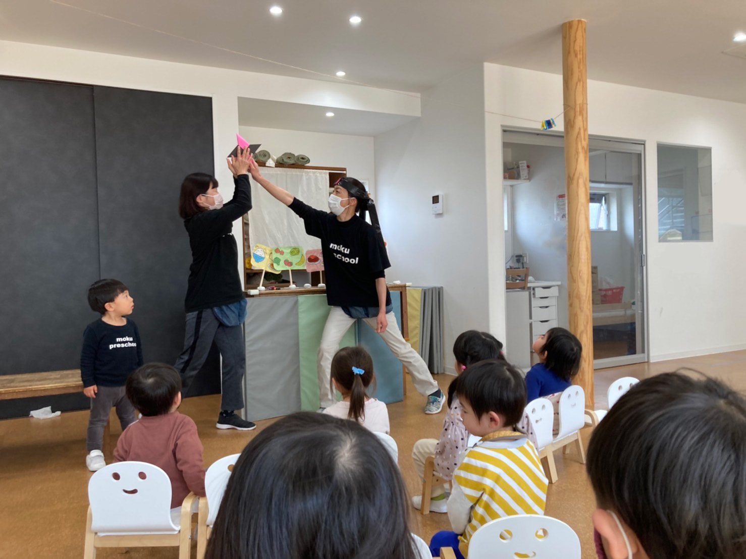 みんなで一緒に「にんにん」としたり、先生が手裏剣を飛ばす真似をしたりして楽しみました☺️