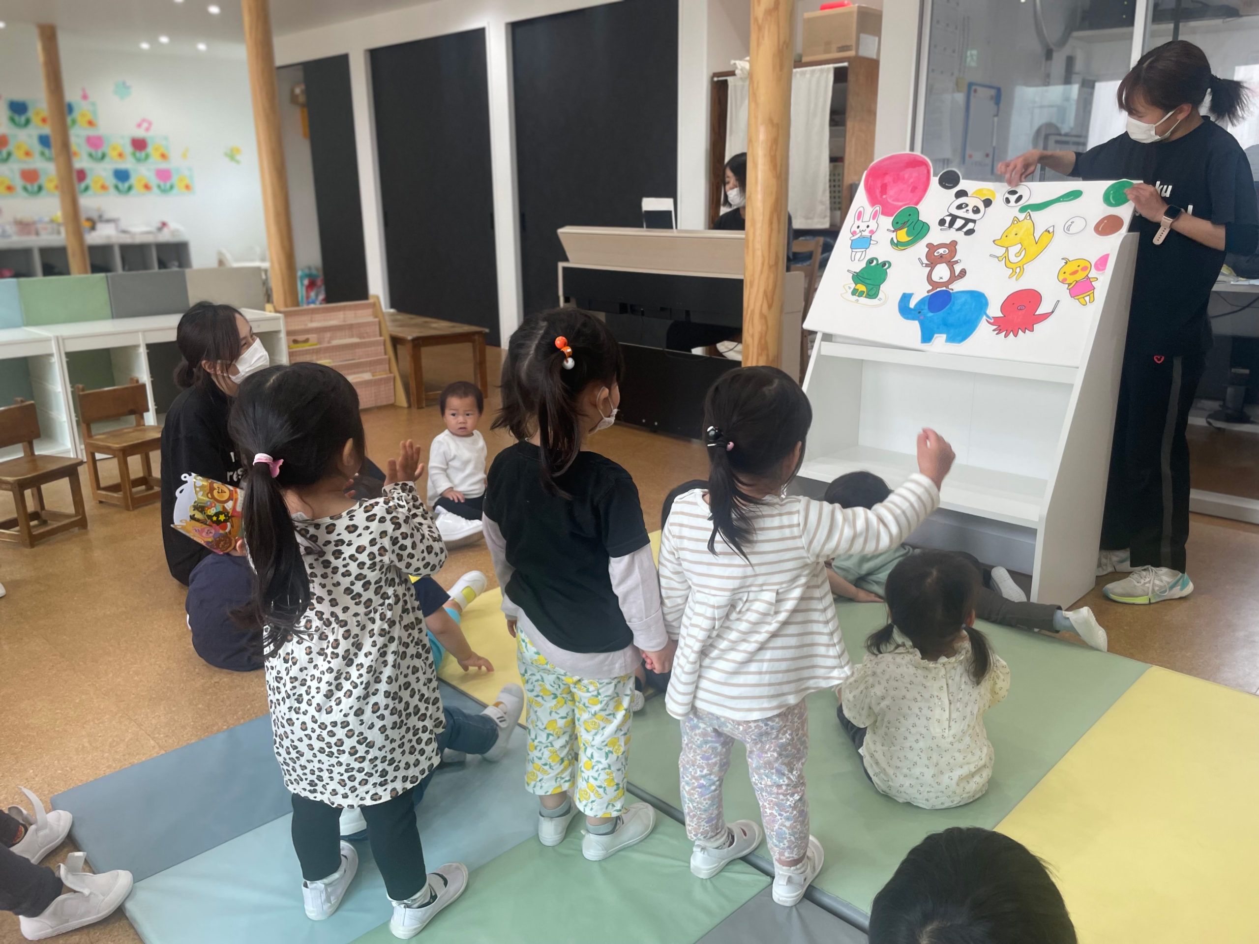 先生のピアノに合わせてみんなが大好きなシャボン玉をいろんな動物たちがとばすお話でした🥰