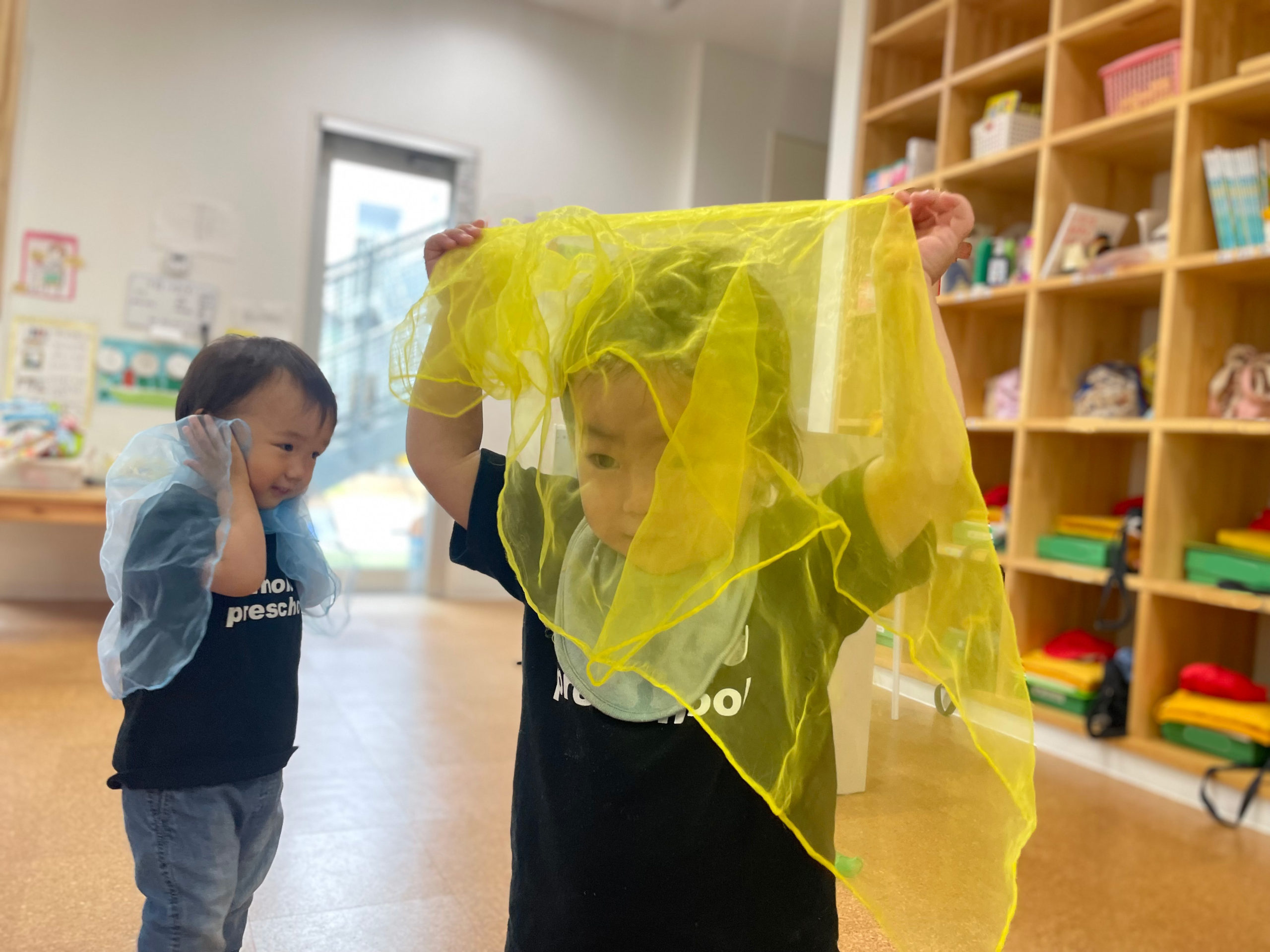 被ったり寝転んでお布団みたいにしたり、ピアノの音に合わせて楽しみました☺️