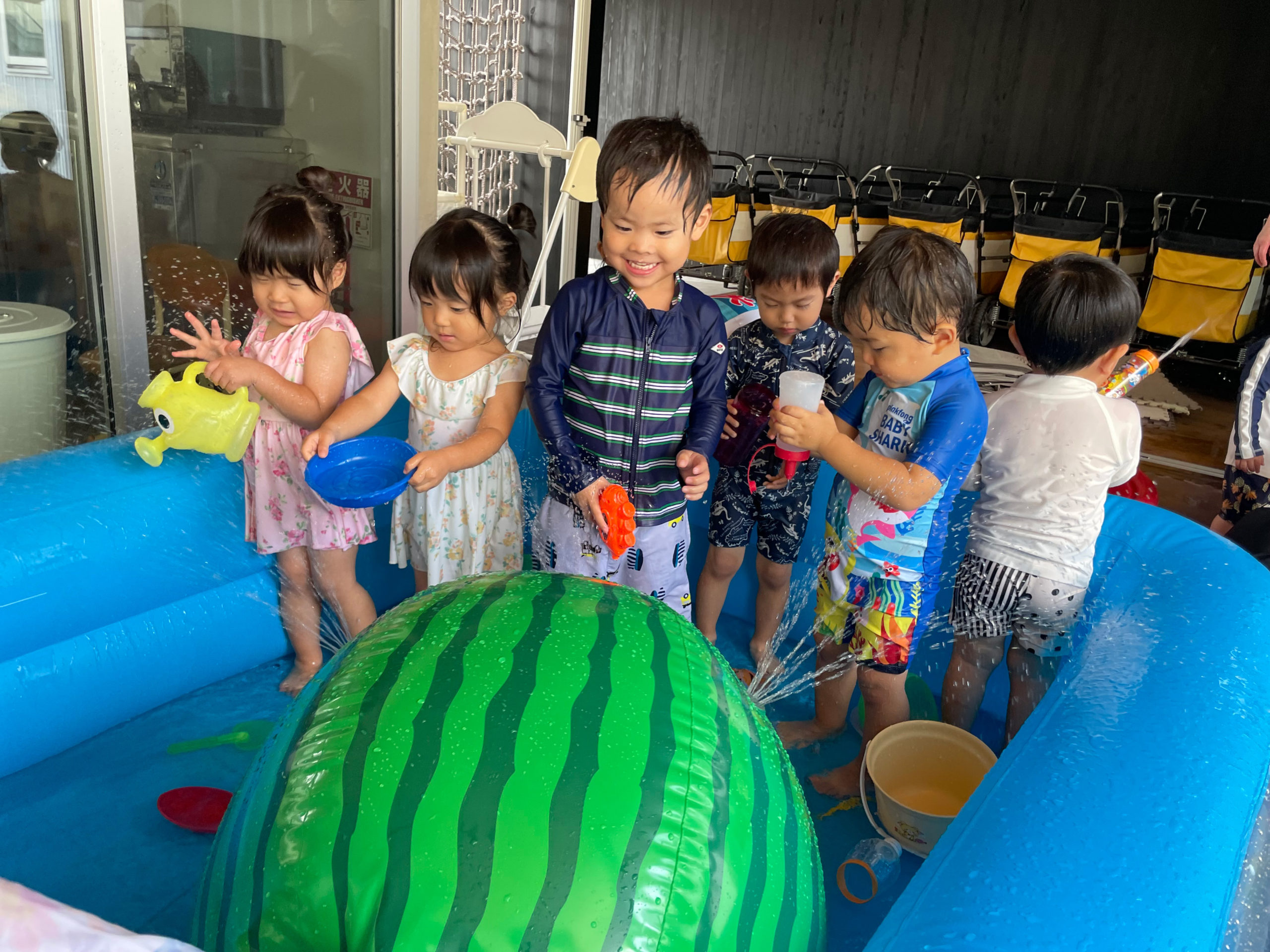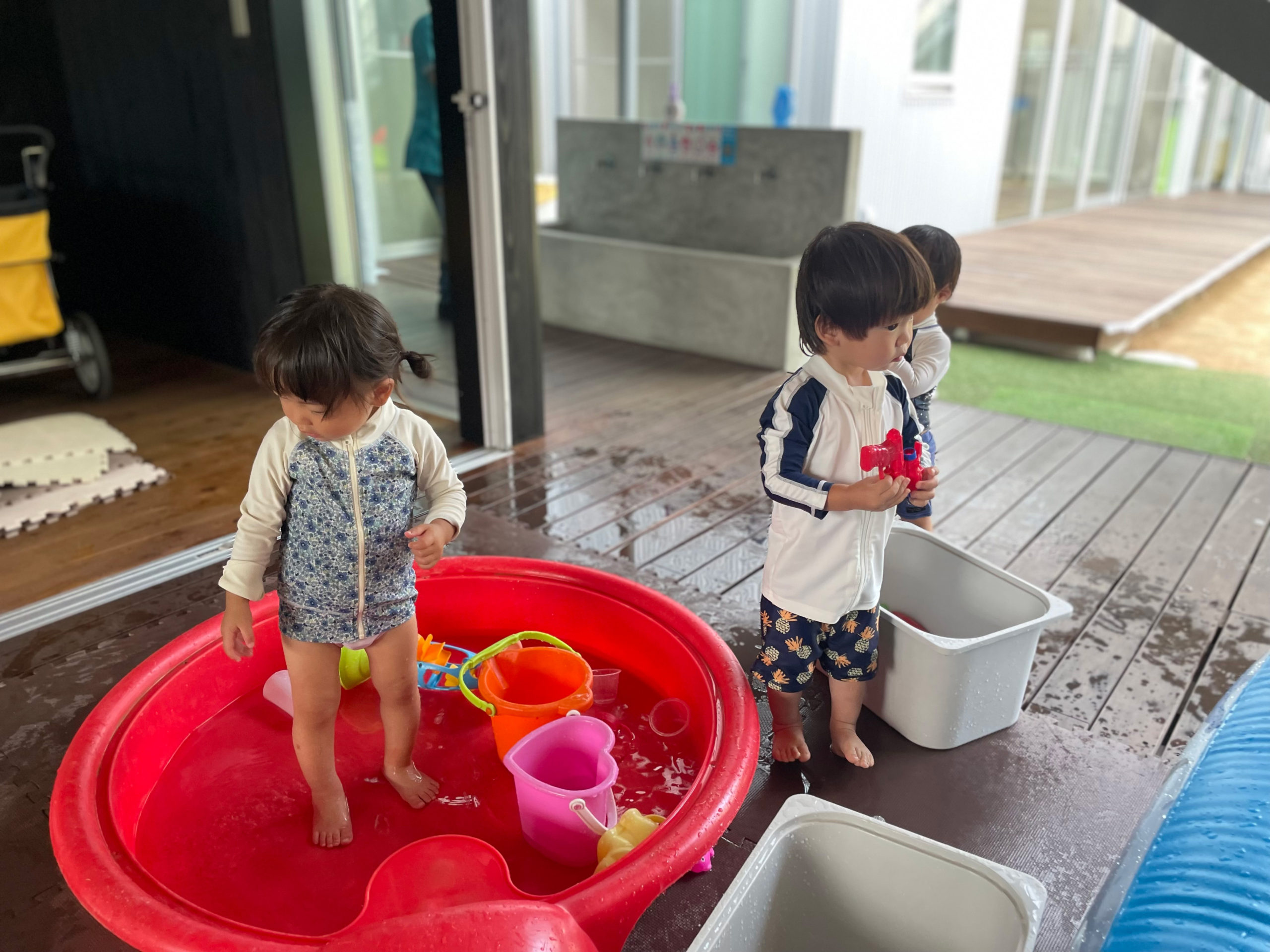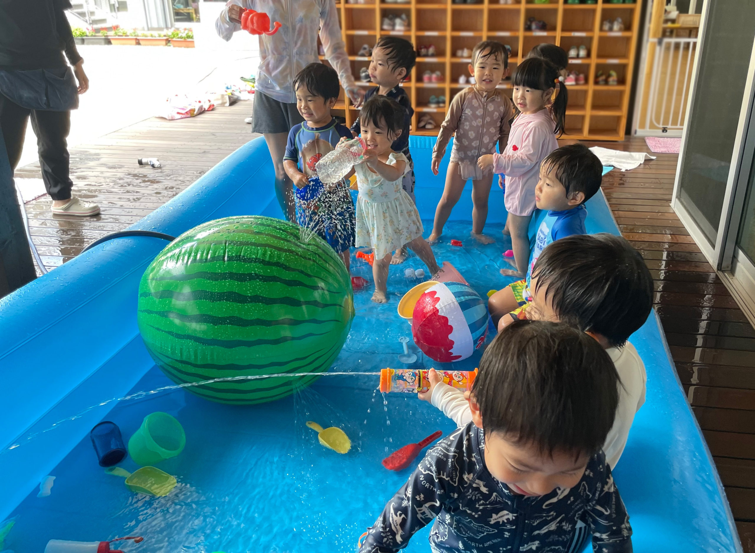 分園では大きいプール小さいプールを用意して水遊びを楽しんでいます🐬☀️