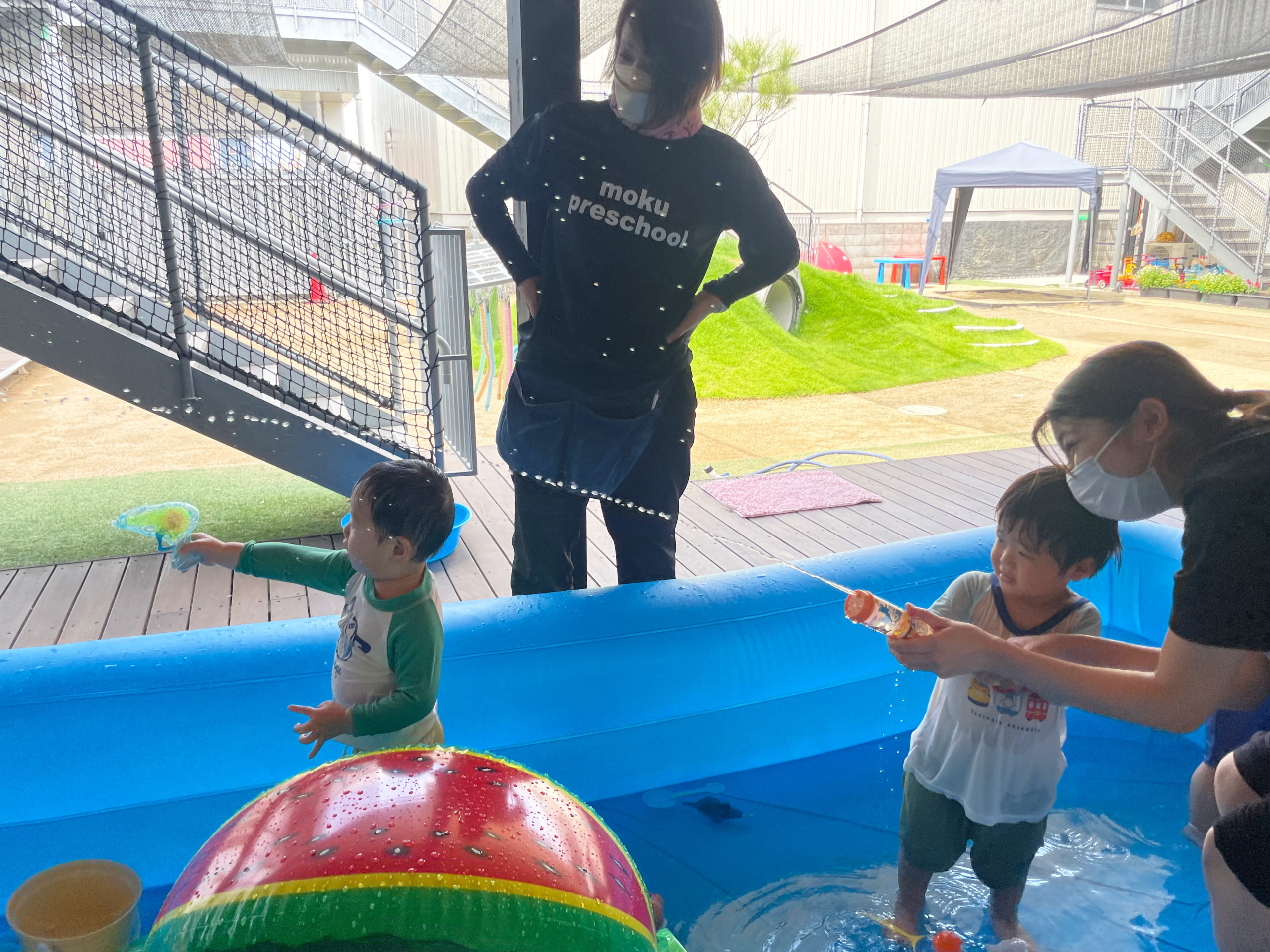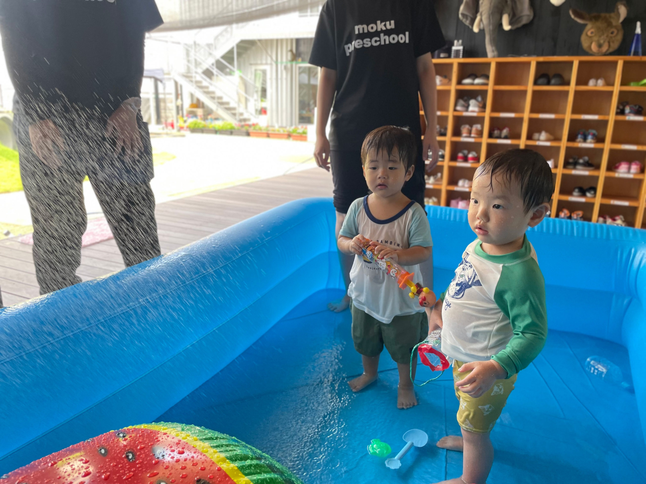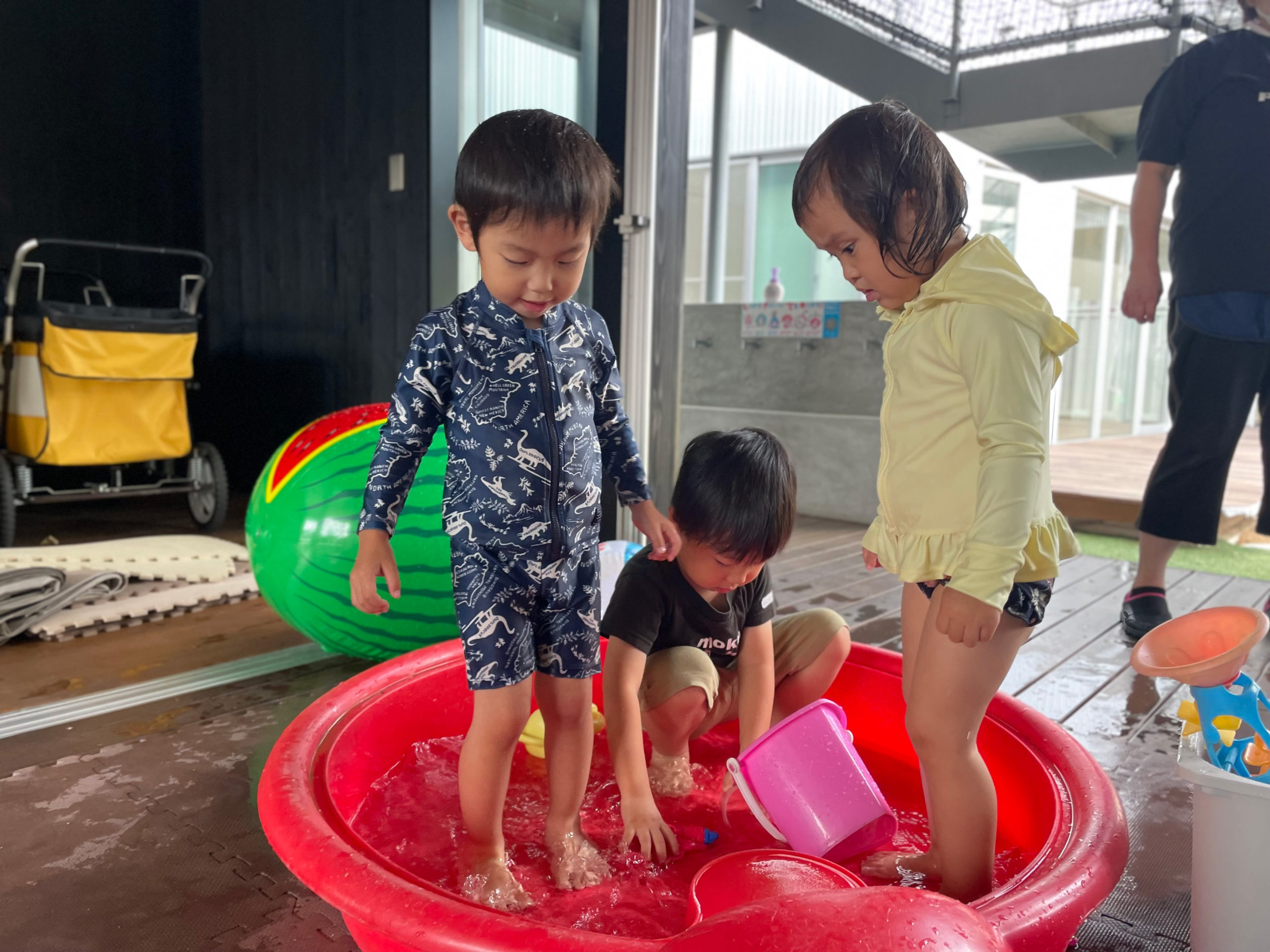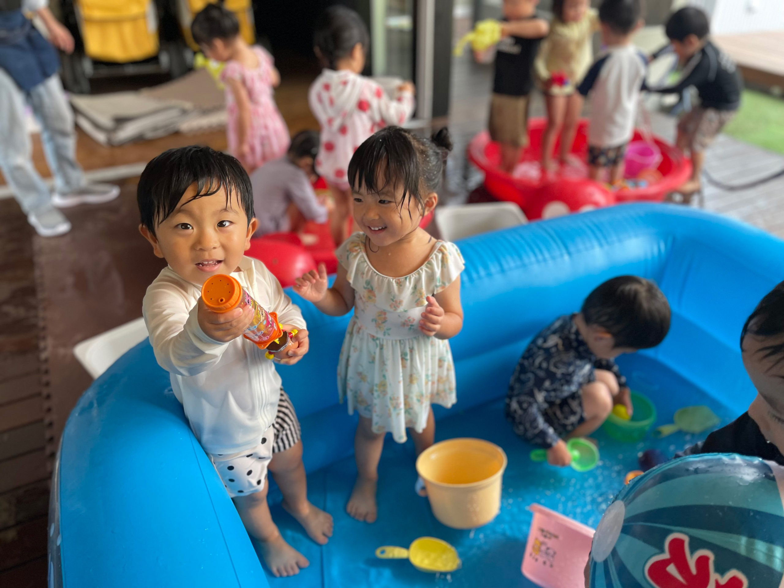 分園では大きいプール小さいプールを用意して水遊びを楽しんでいます🐬☀️