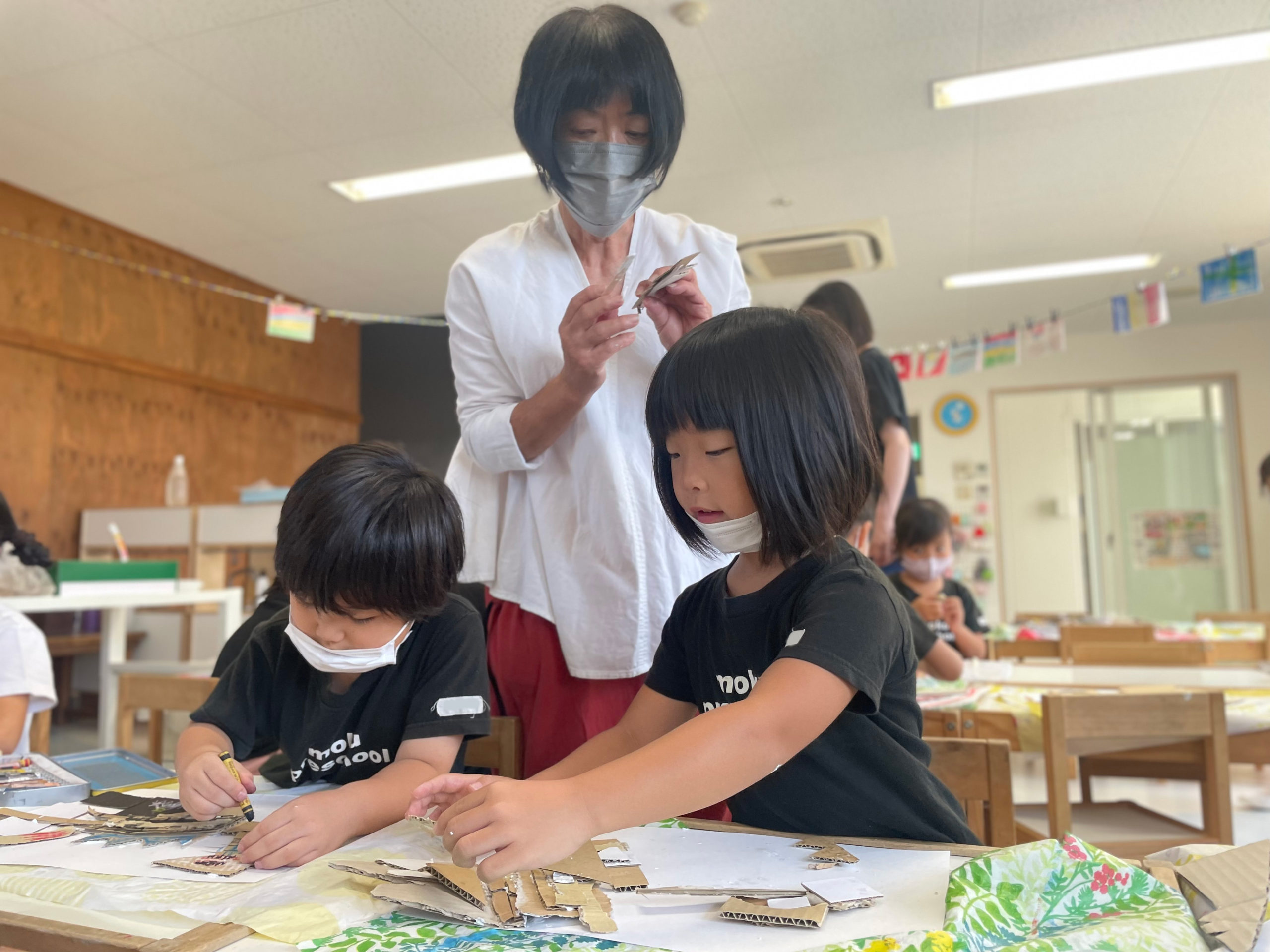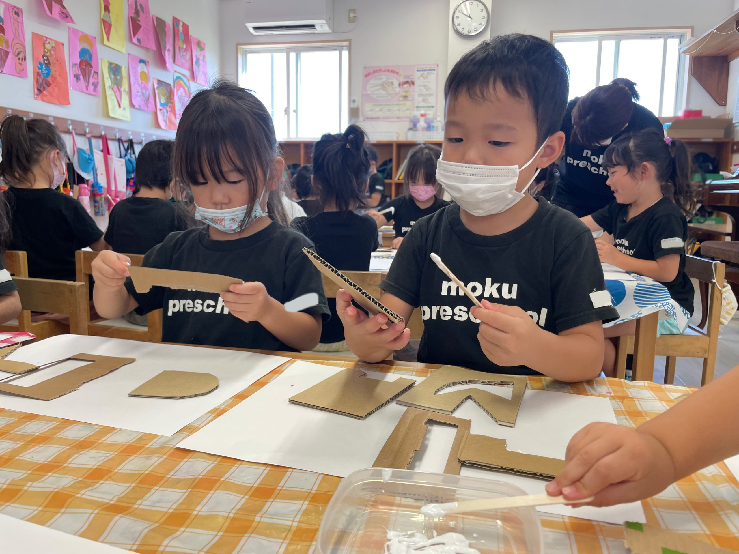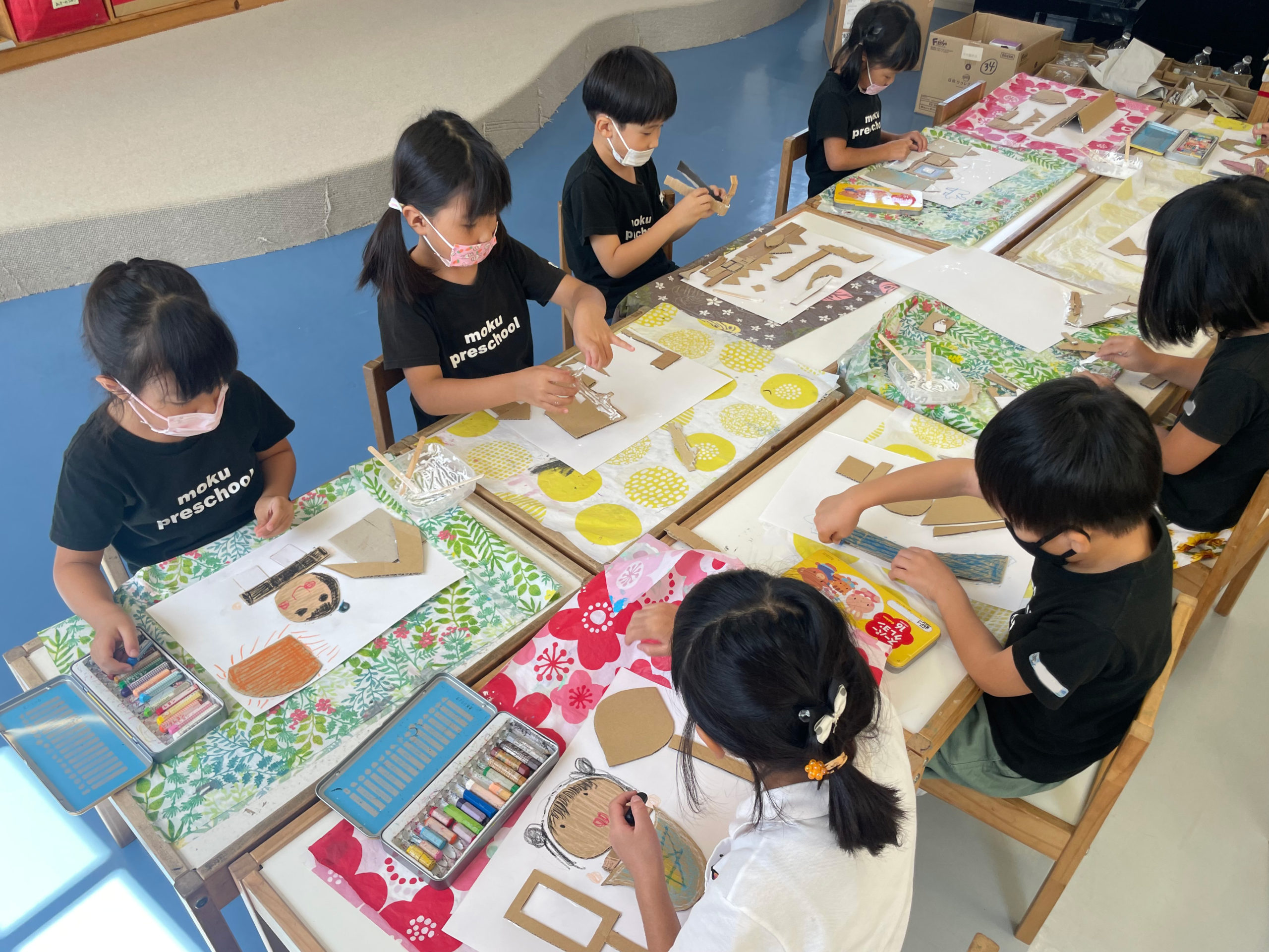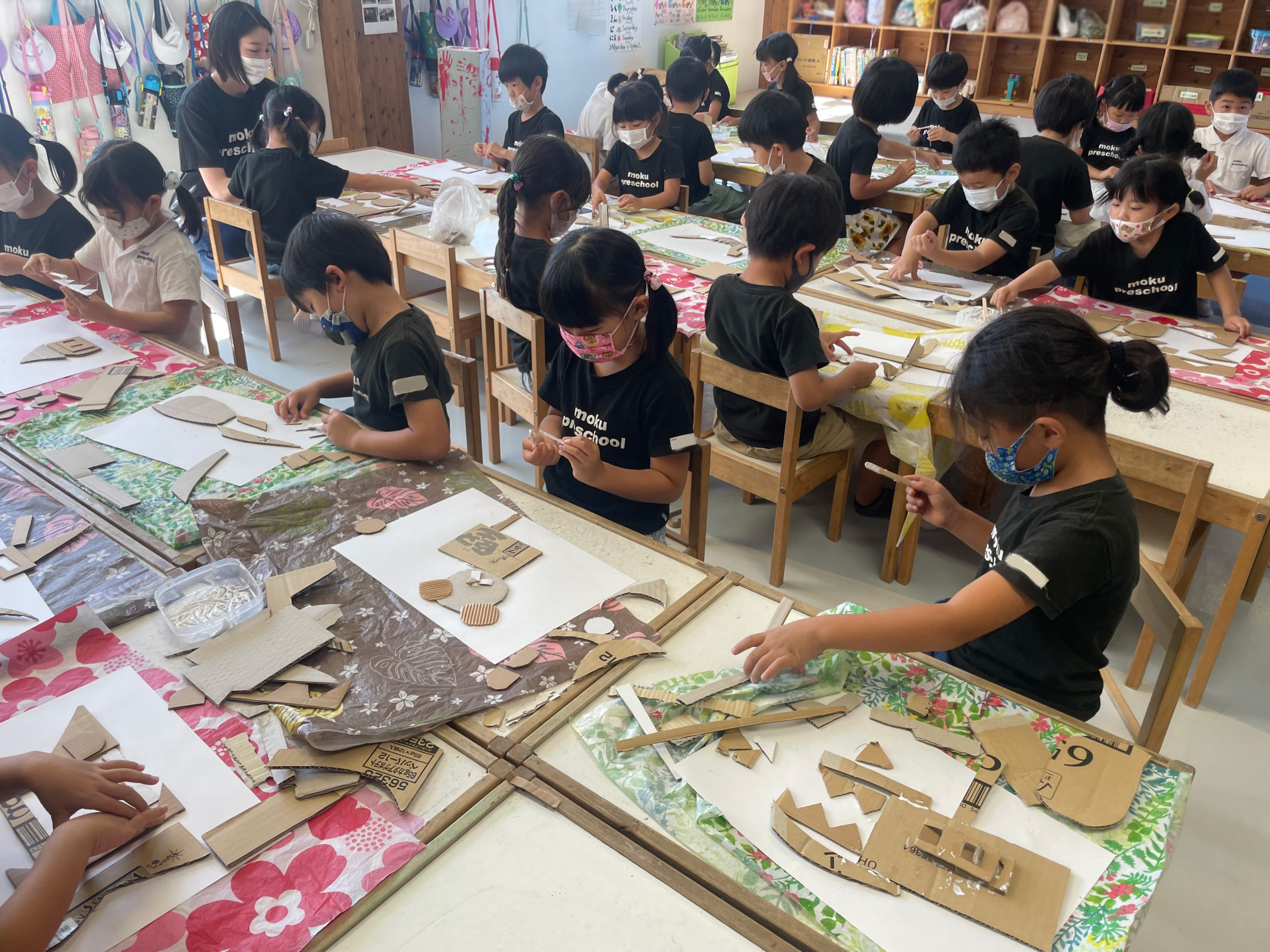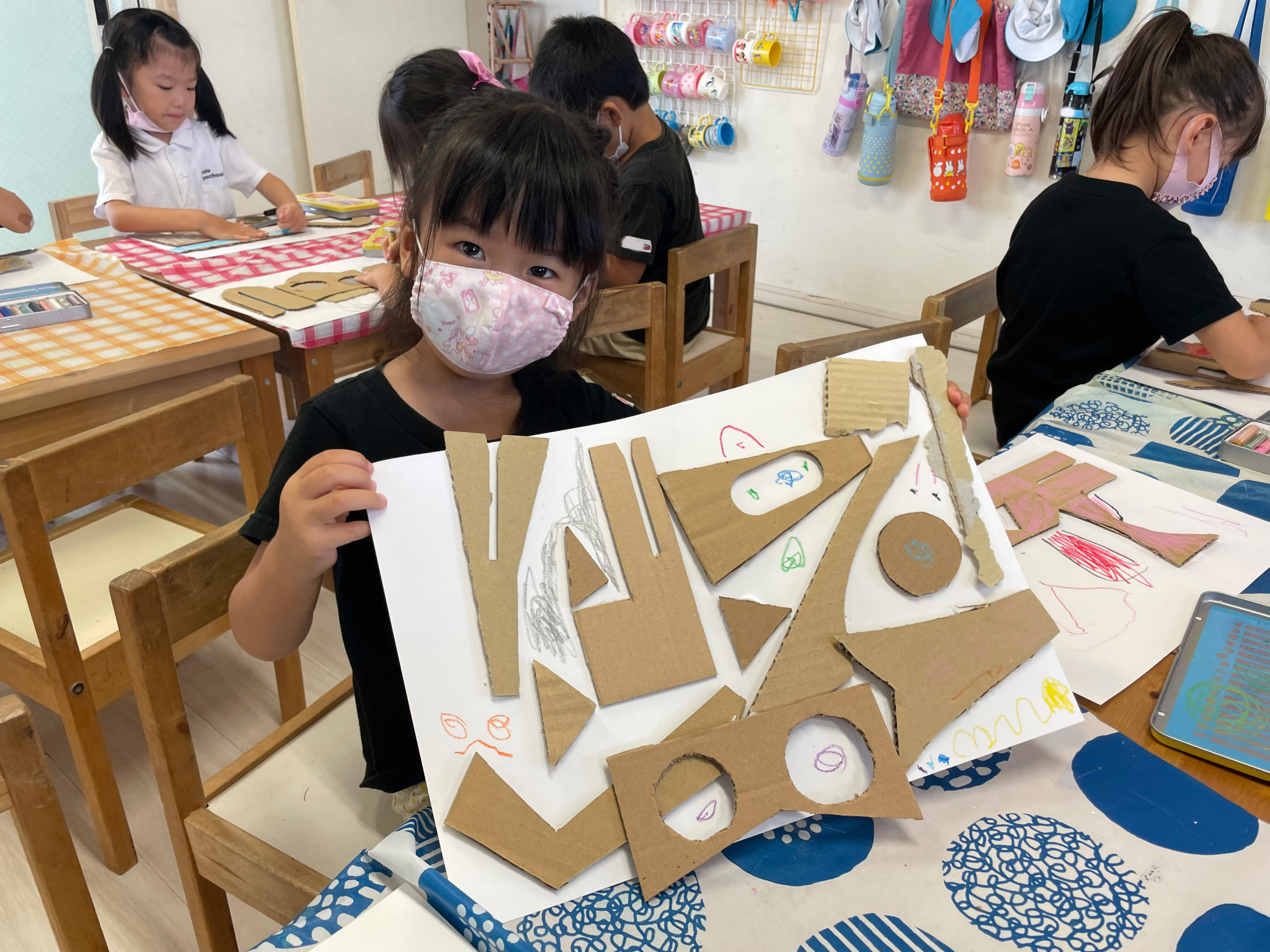 先月の絵画教室では、段ボールを使って作品を作りました🥰