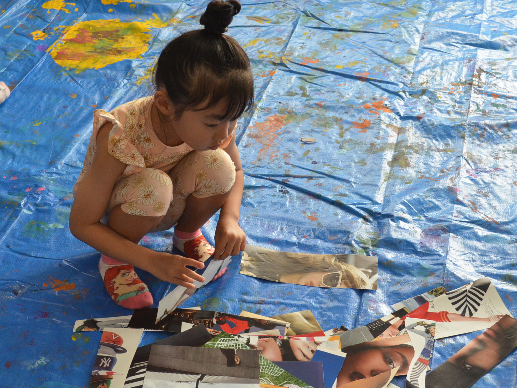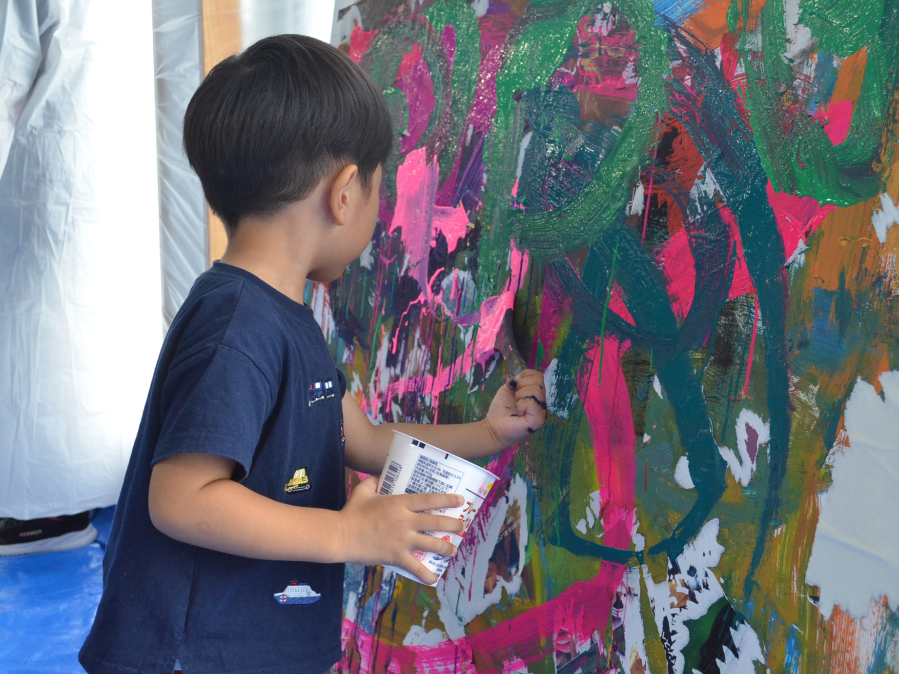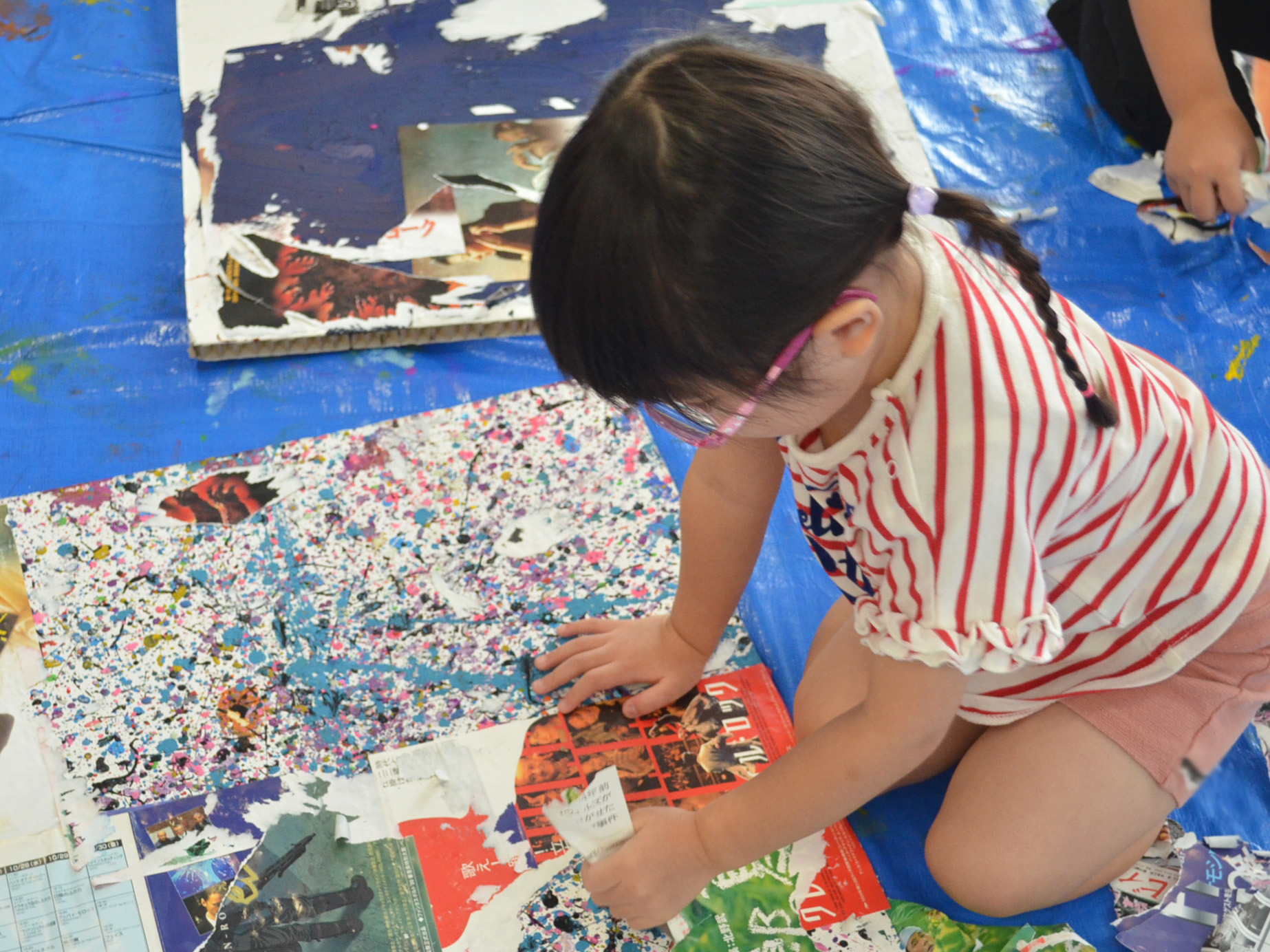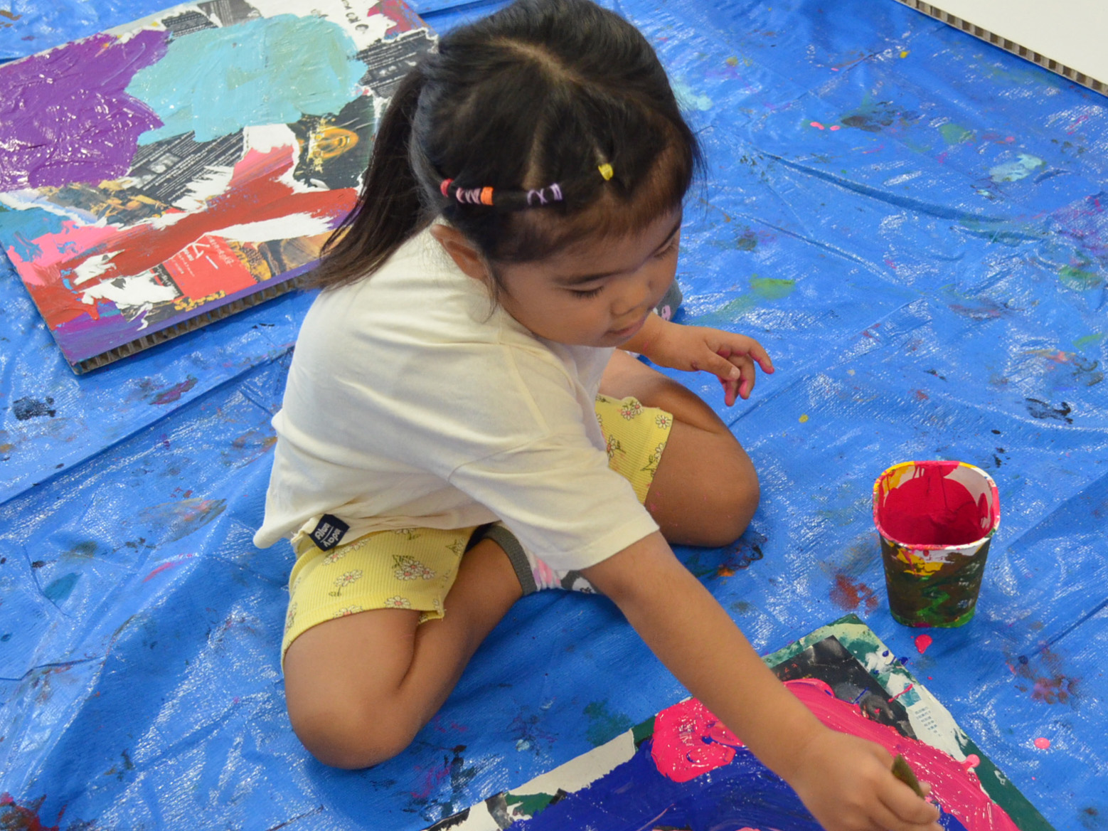 いつもは汚れないように描いている分、初めは手などが汚れることに少し抵抗がある子もいましたが、