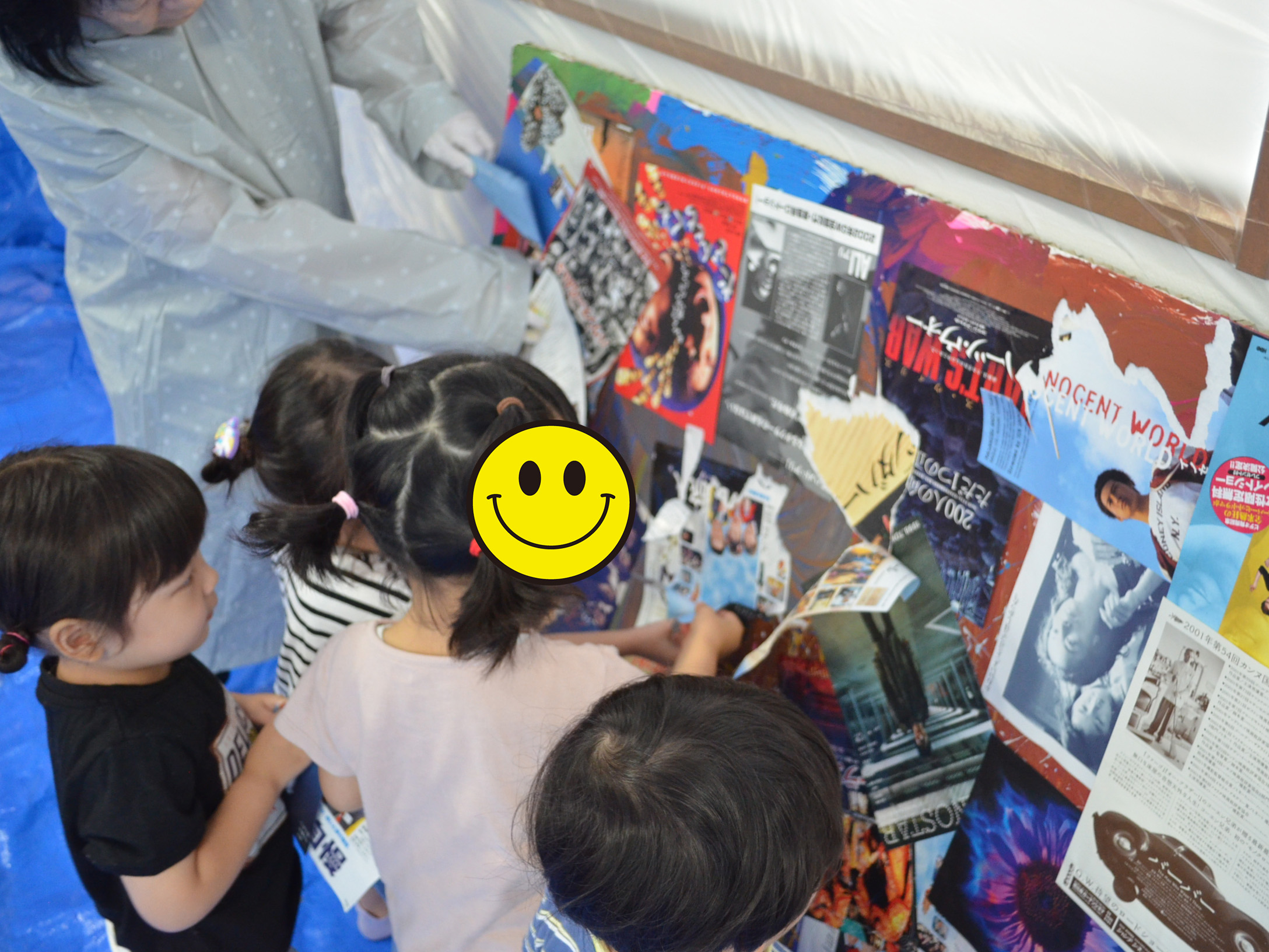 いつもは汚れないように描いている分、初めは手などが汚れることに少し抵抗がある子もいましたが、