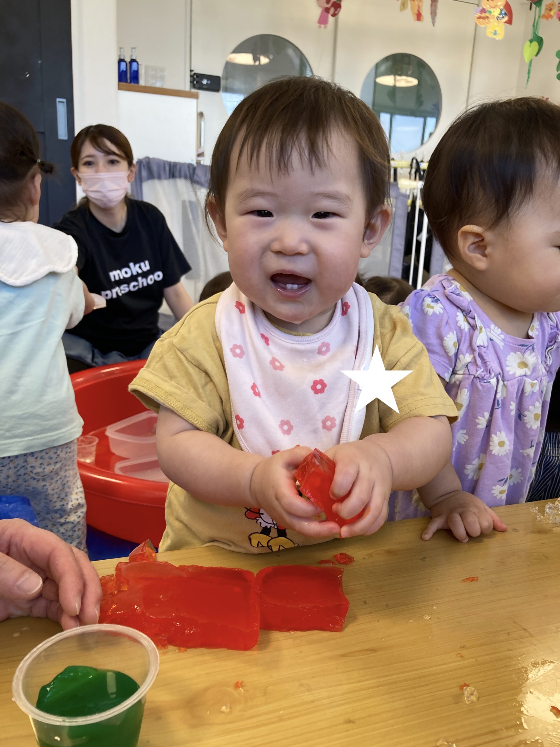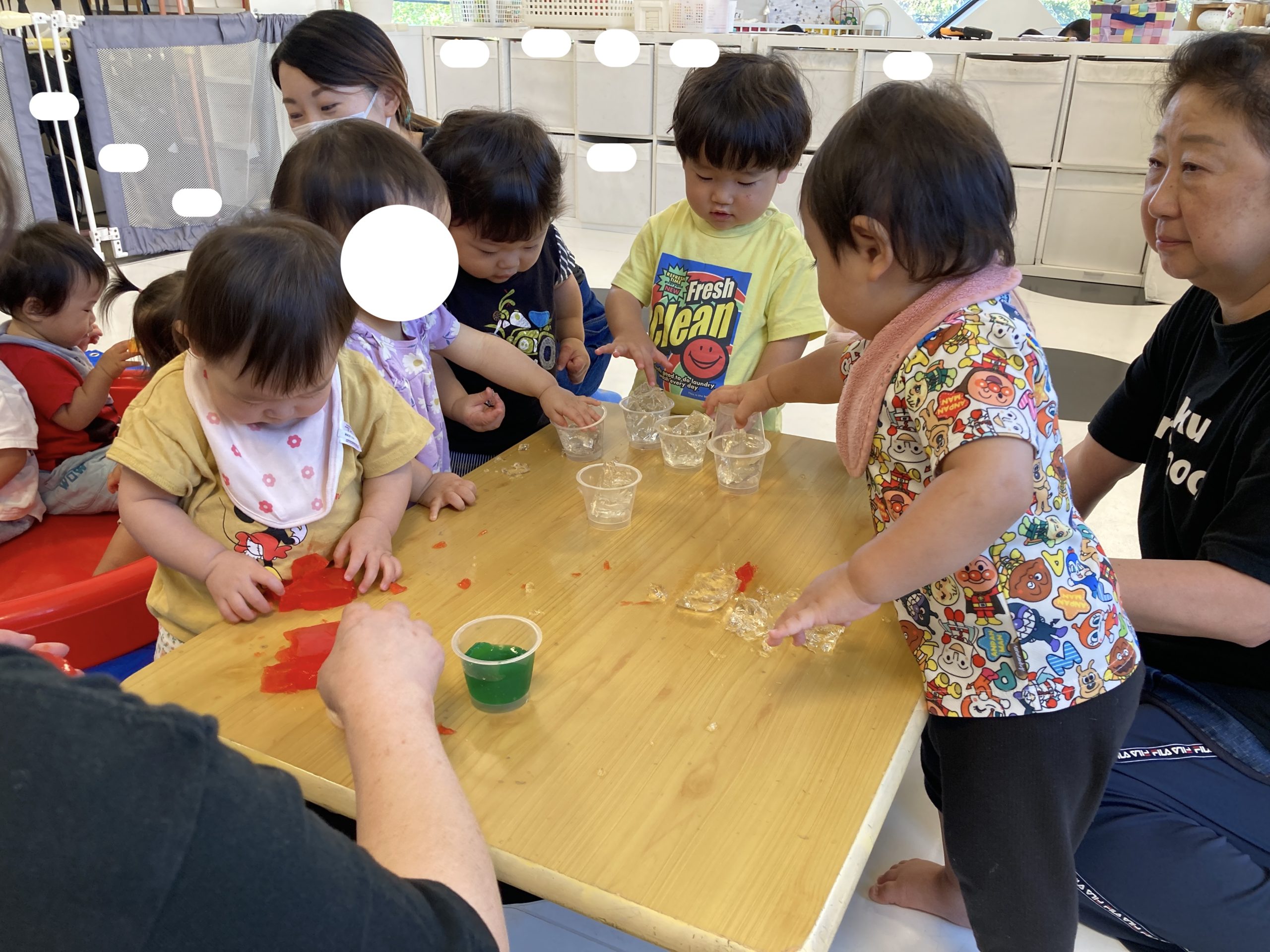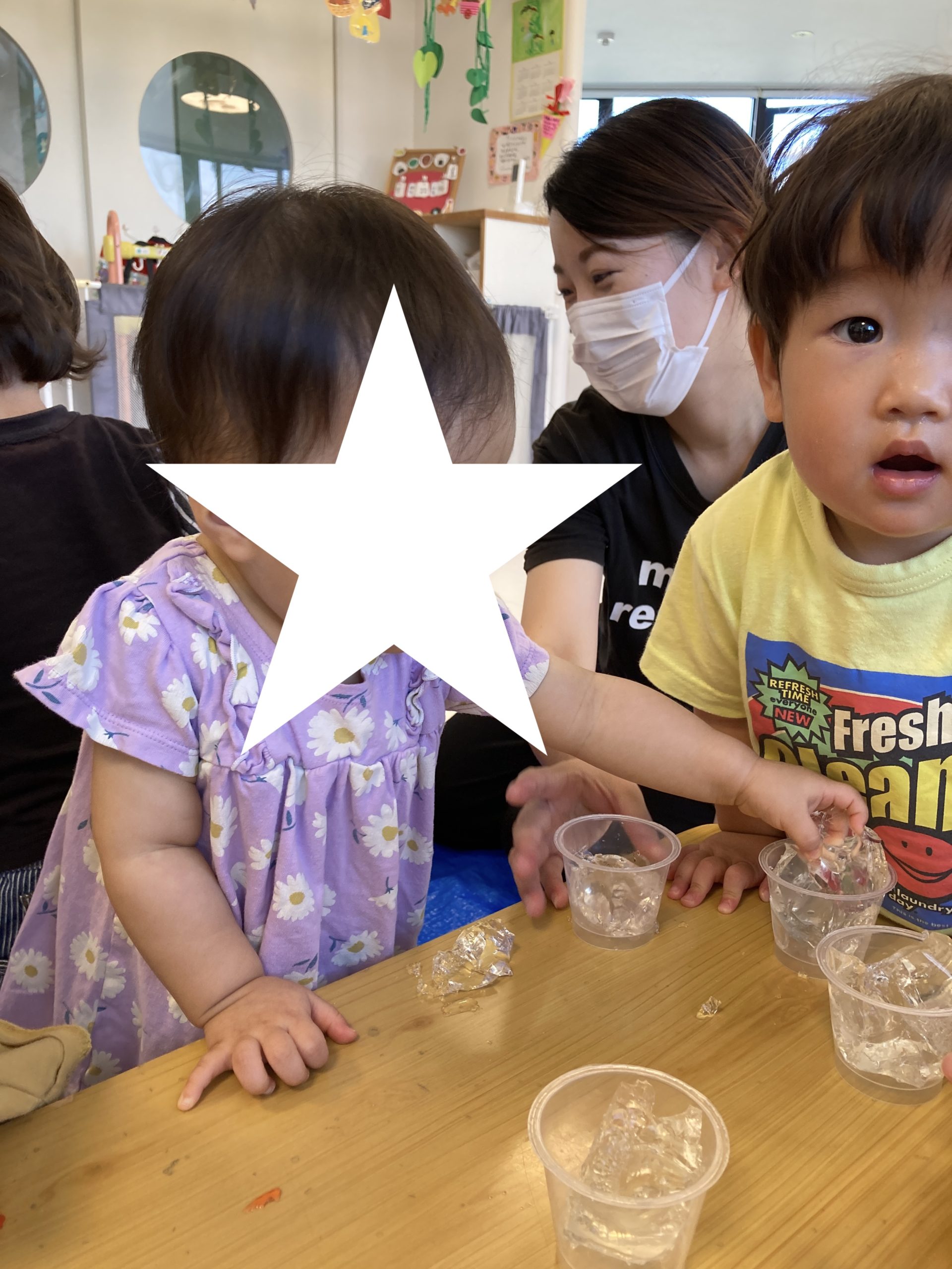 初めてのことに躊躇していた子たちも、キラキラ💖とキレイな寒天を触りたくて、そーっと触って感触を確かめていました✋😊
