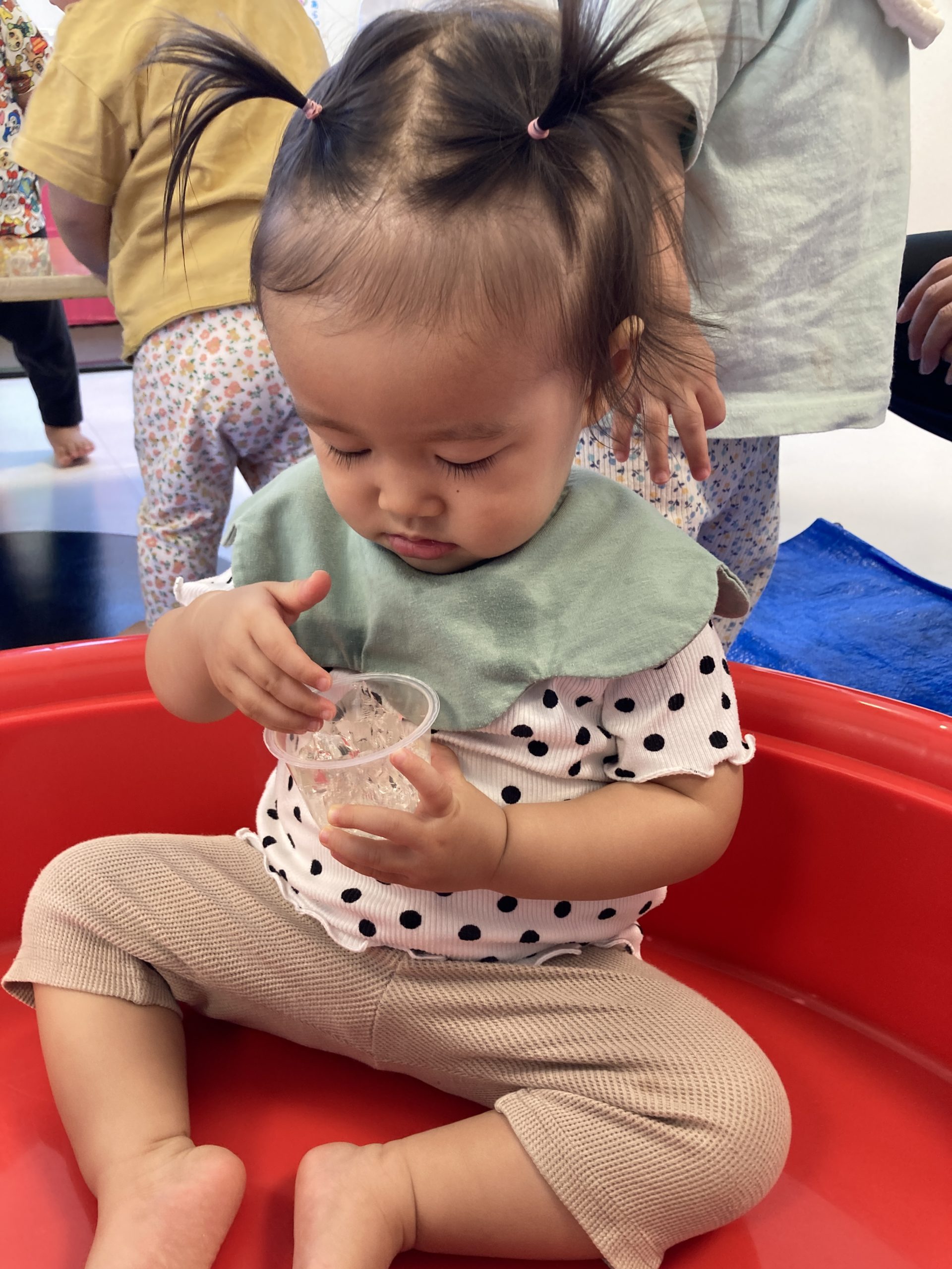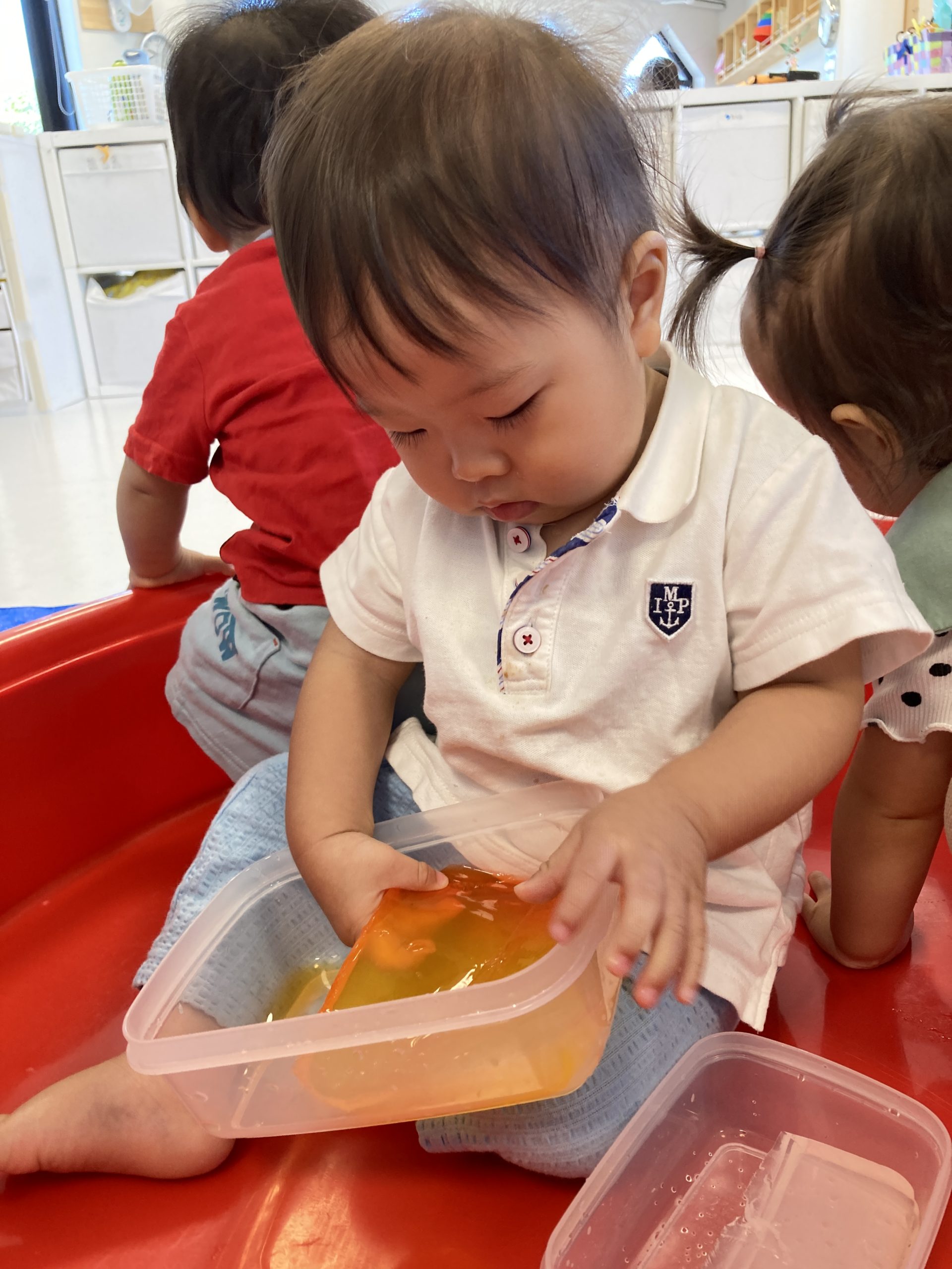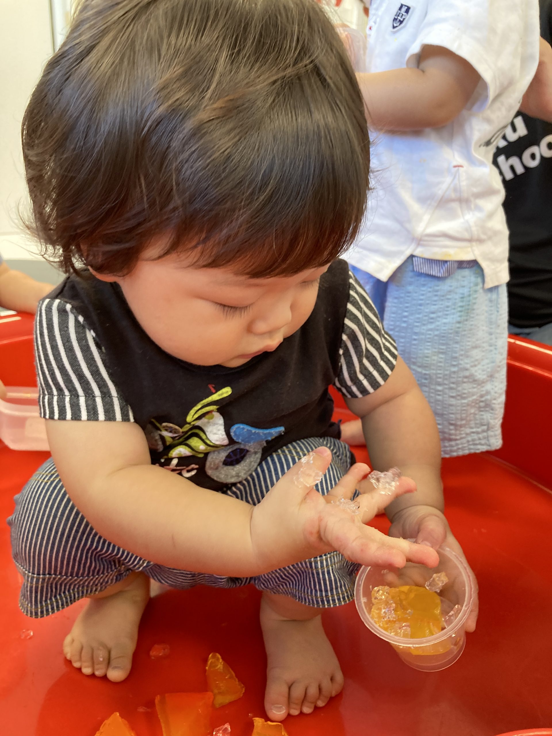 初めてのことに躊躇していた子たちも、キラキラ💖とキレイな寒天を触りたくて、そーっと触って感触を確かめていました✋😊