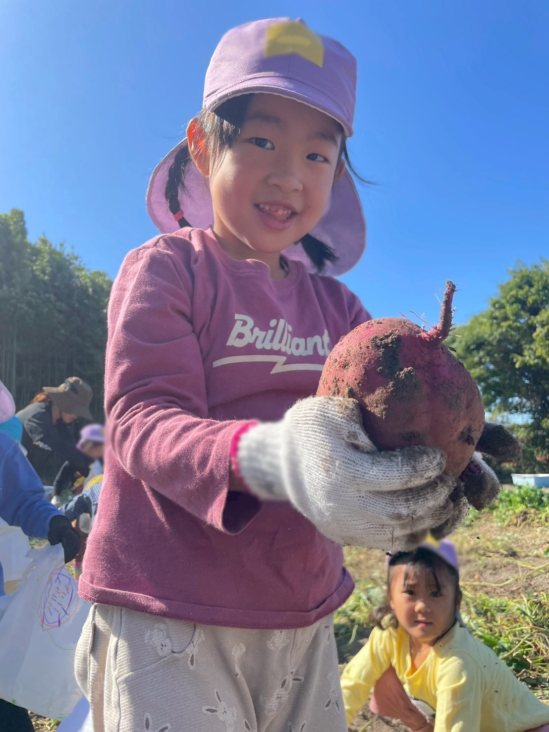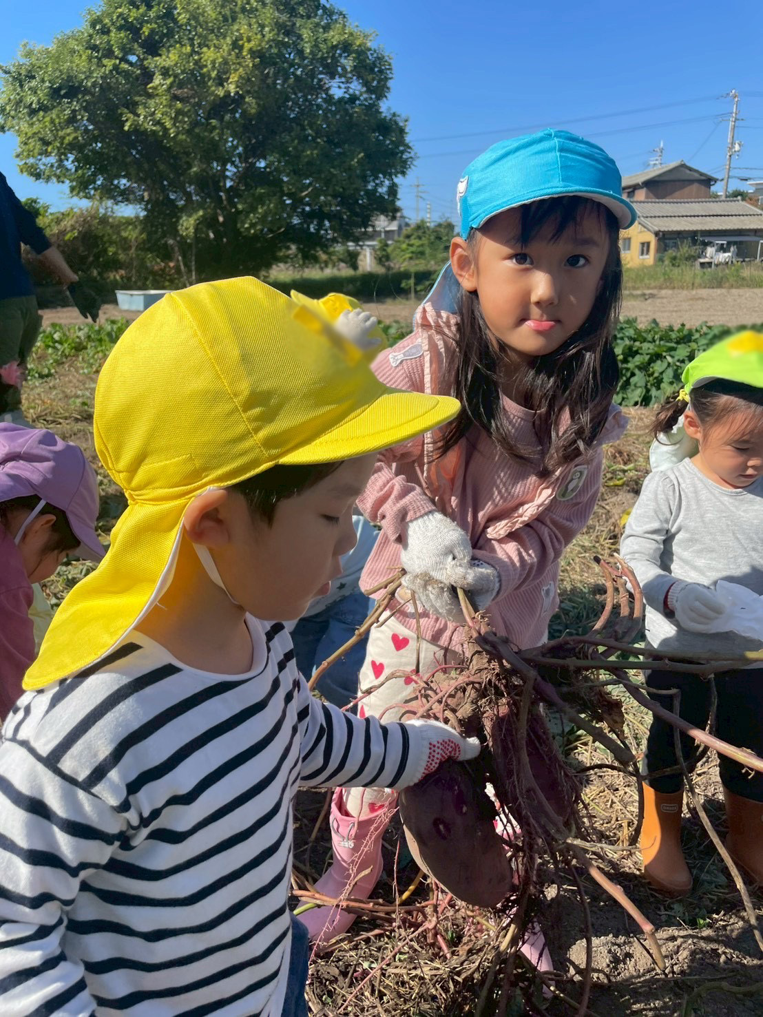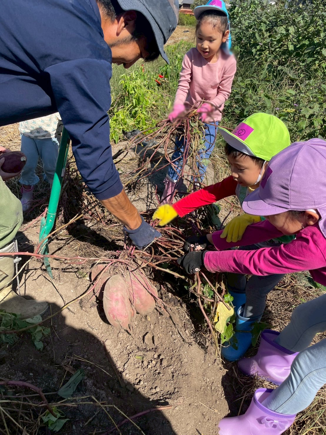 一緒にさつまいもを掘ってあげていました✨