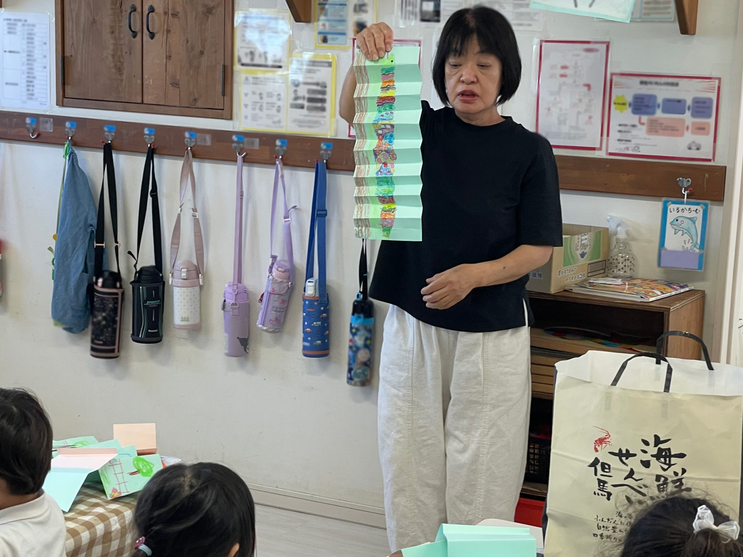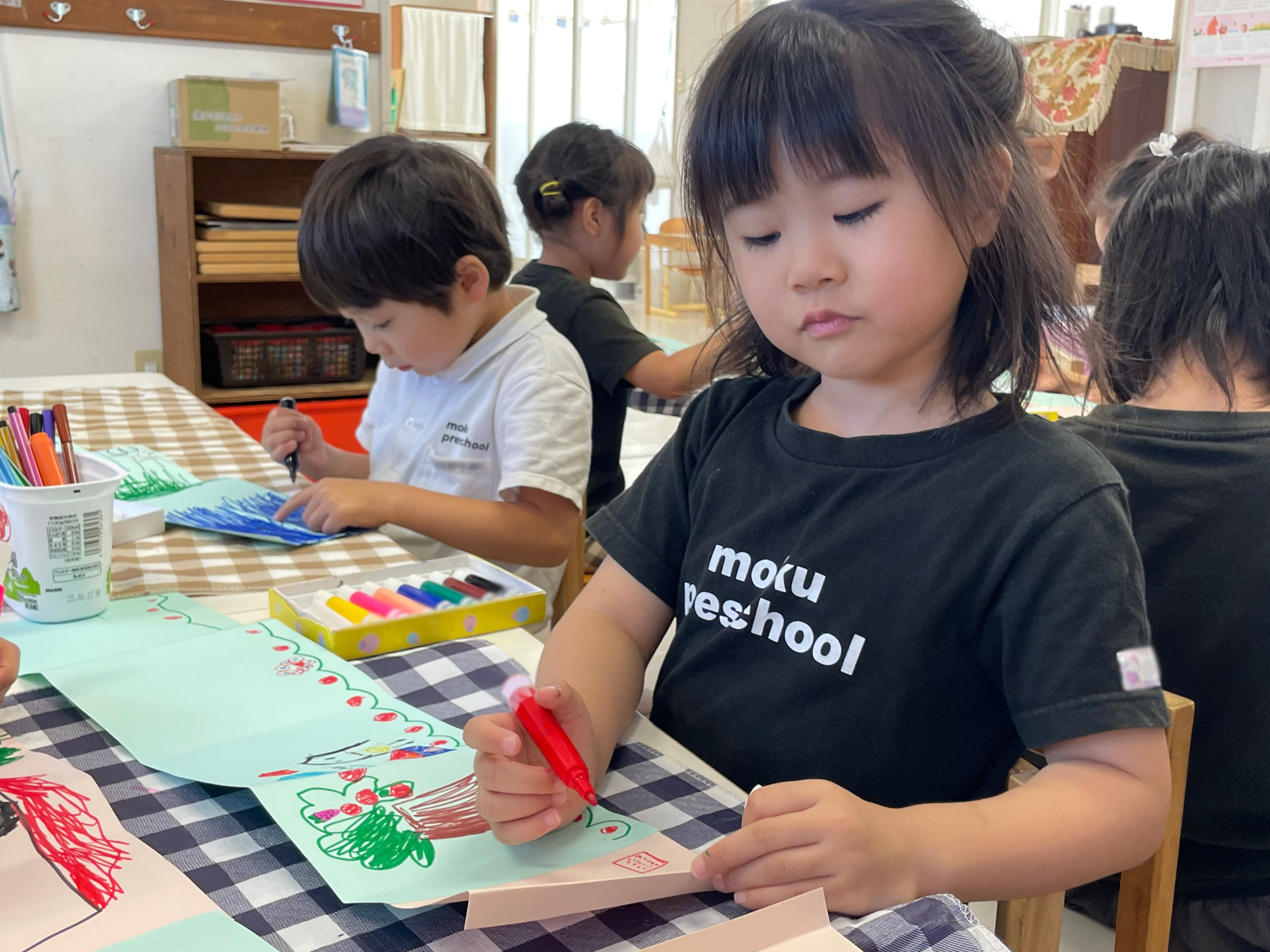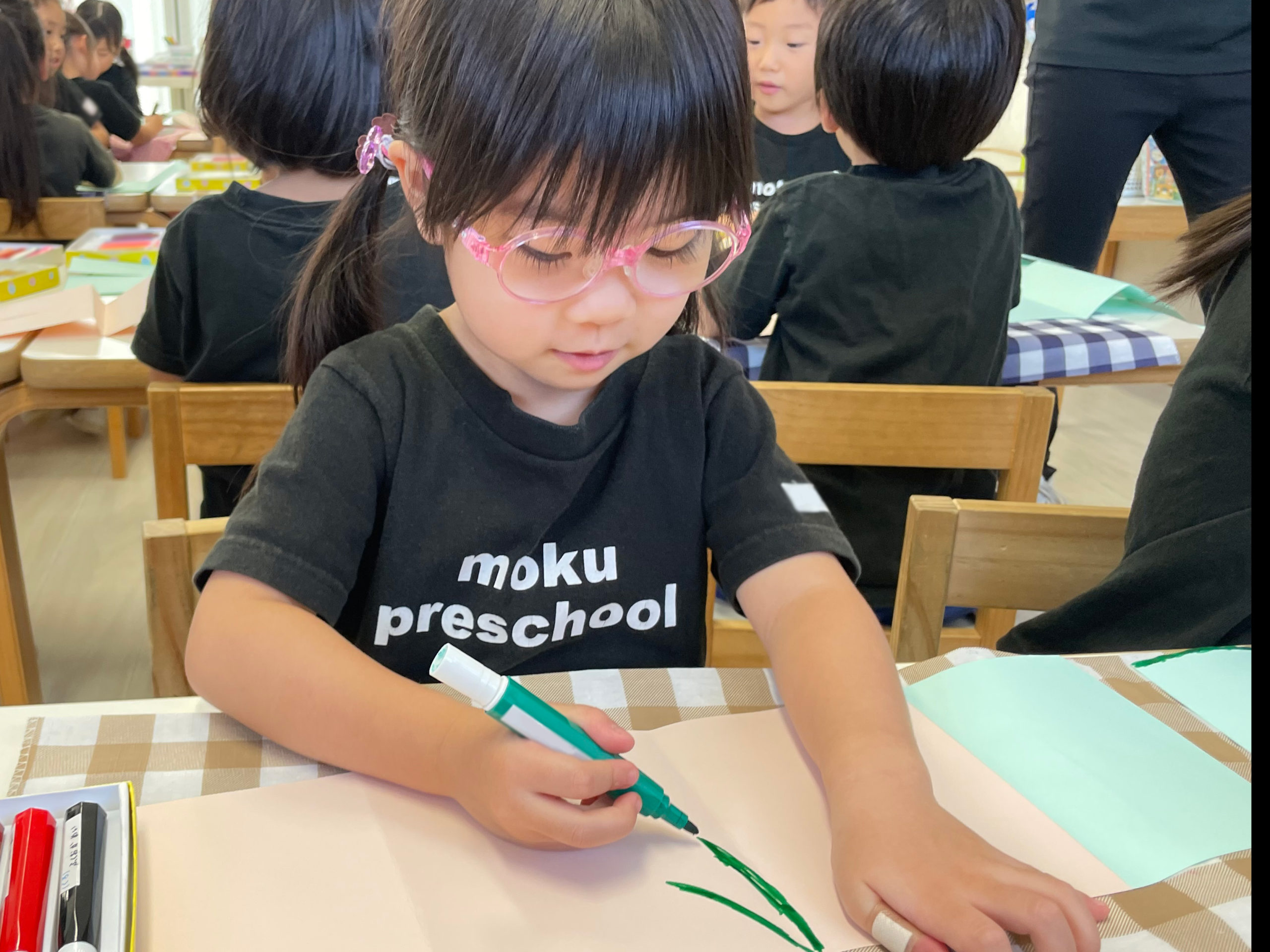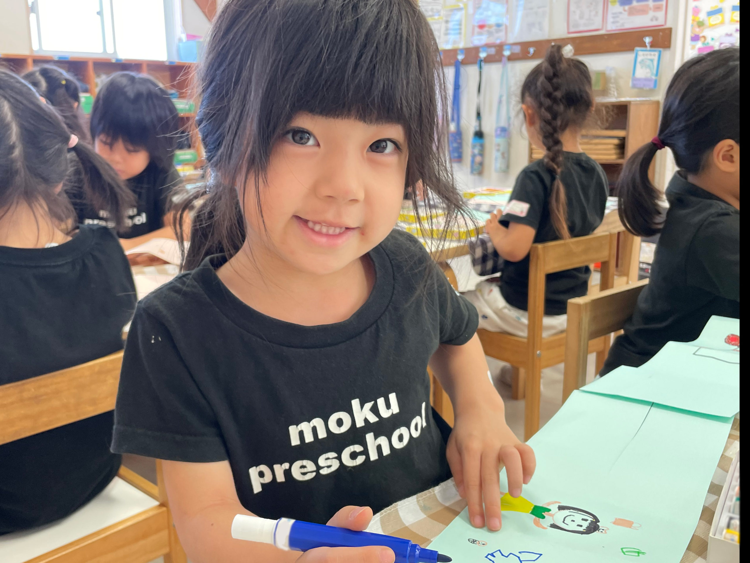 自分の顔や家族の似顔絵・お花畑・電車・へび等