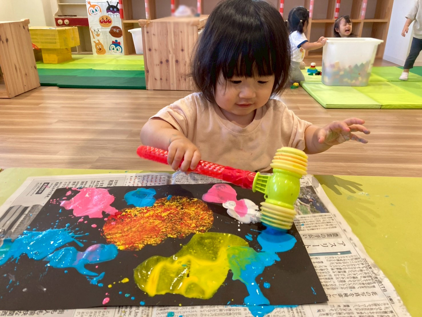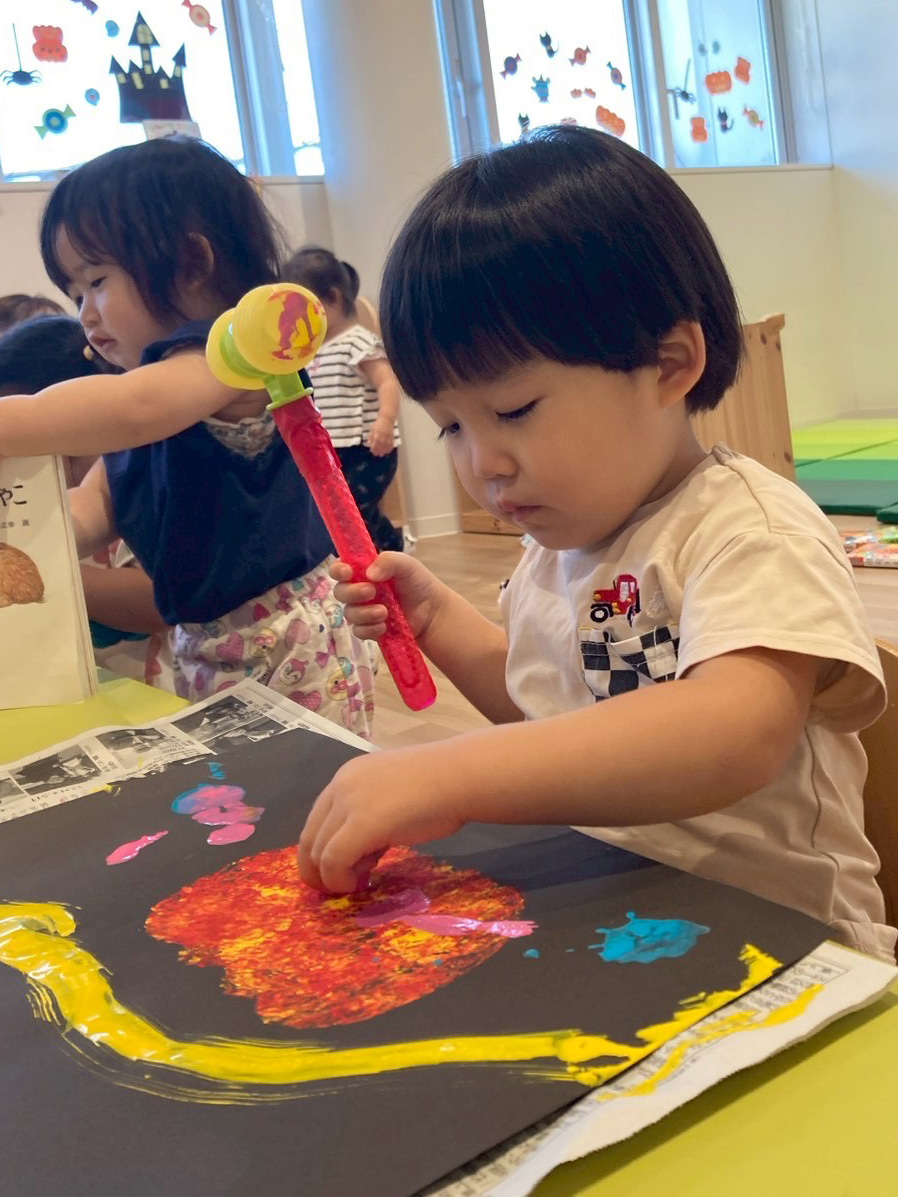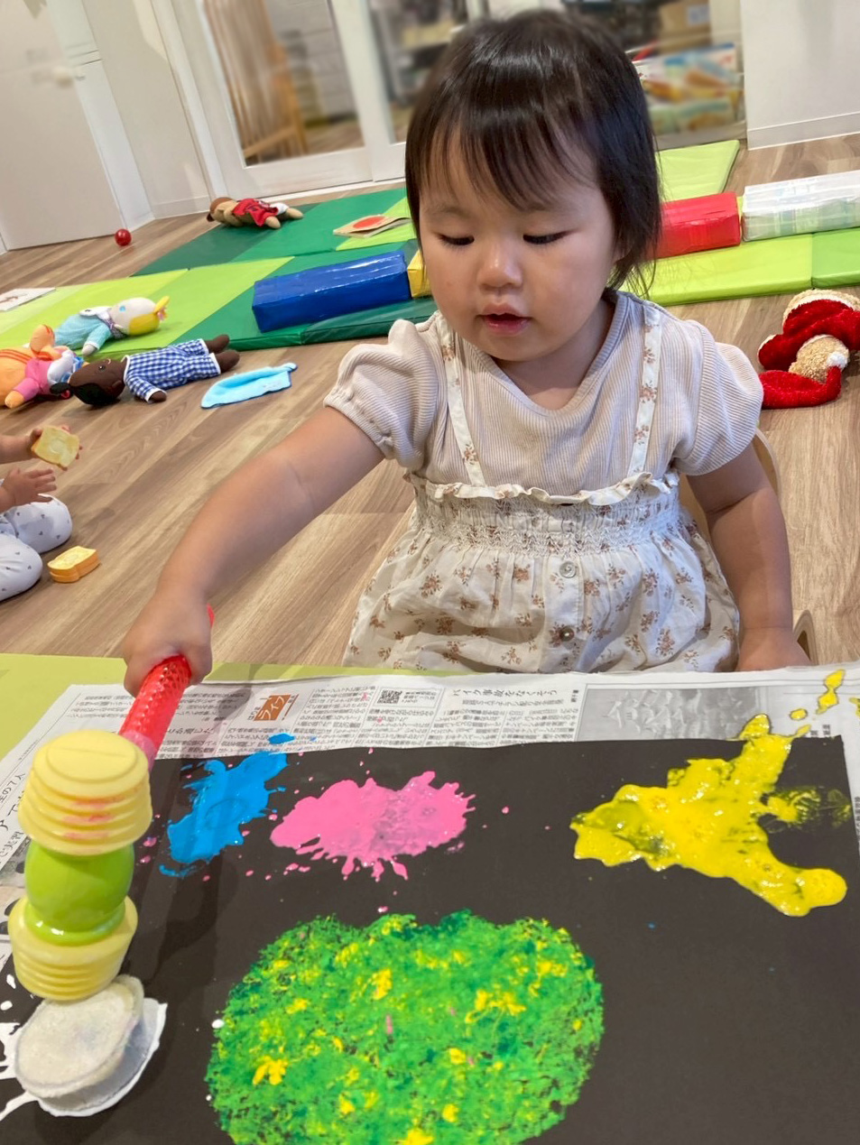 ピコピコハンマーで叩いてスタンプ遊びをしました💚