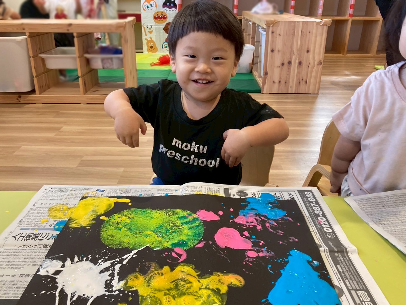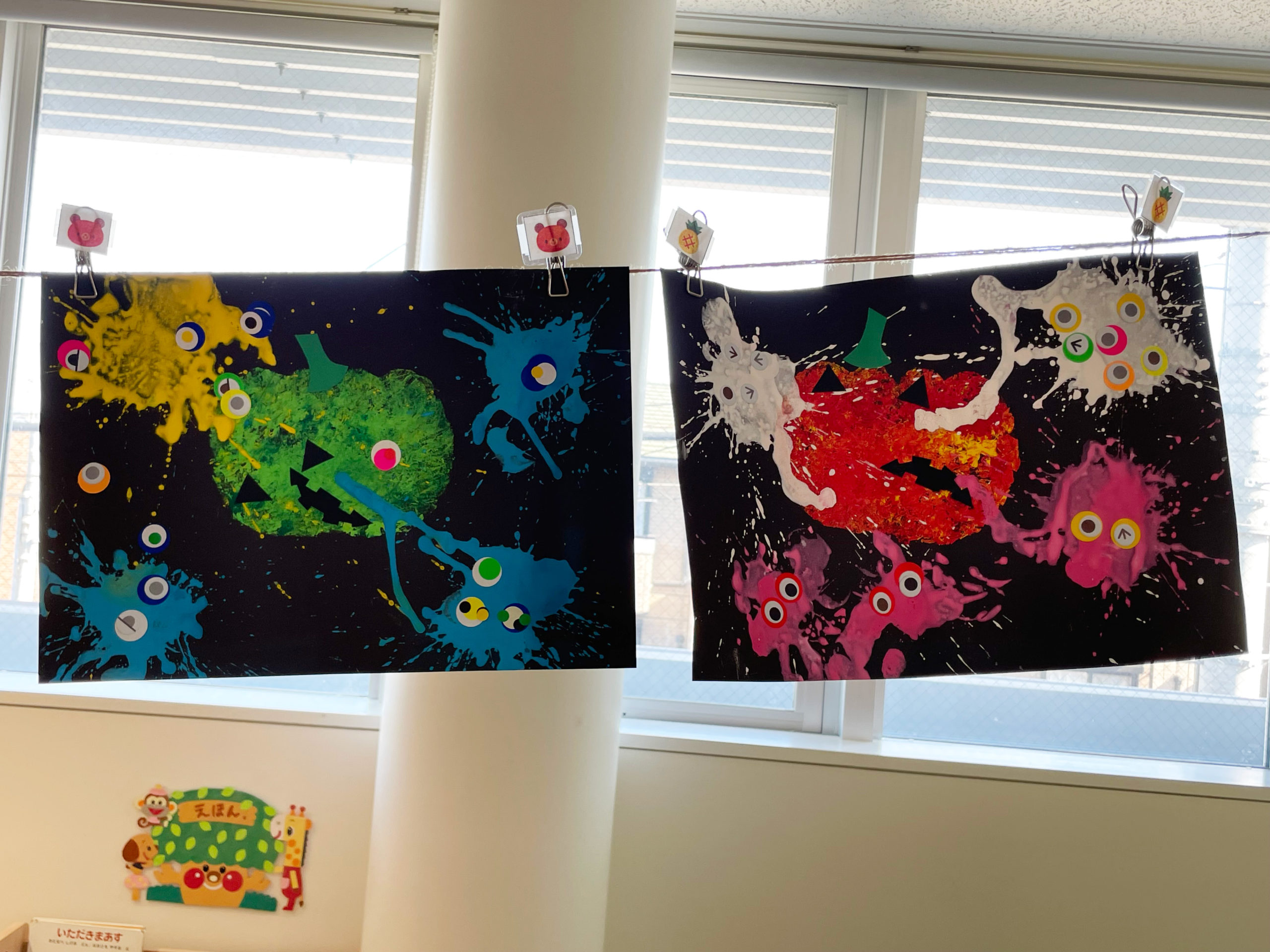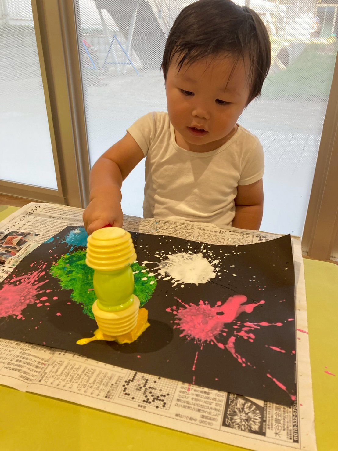 ピコピコハンマーで叩いてスタンプ遊びをしました💚